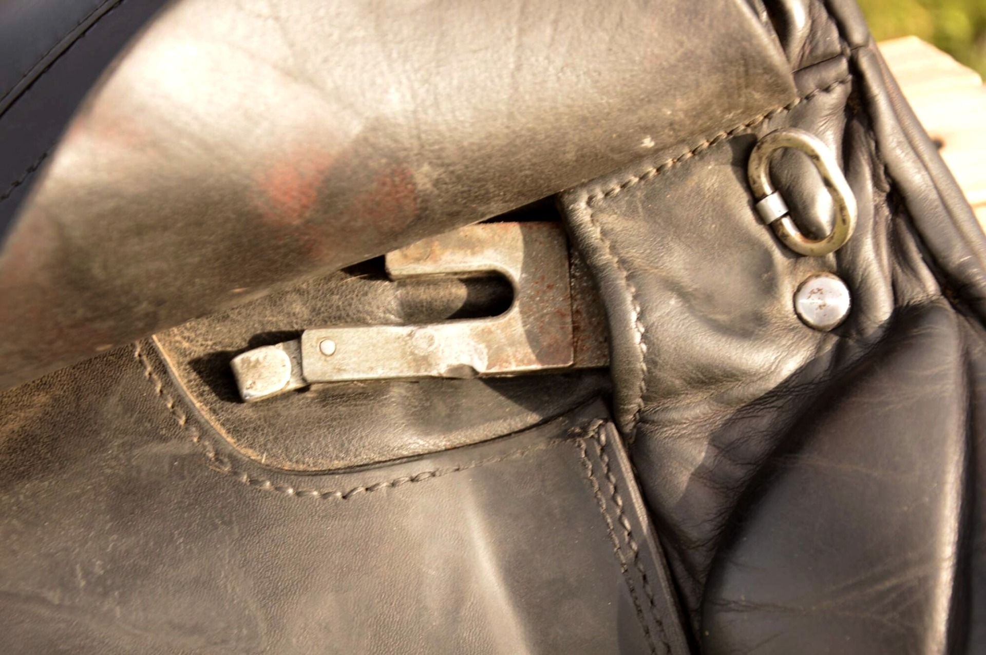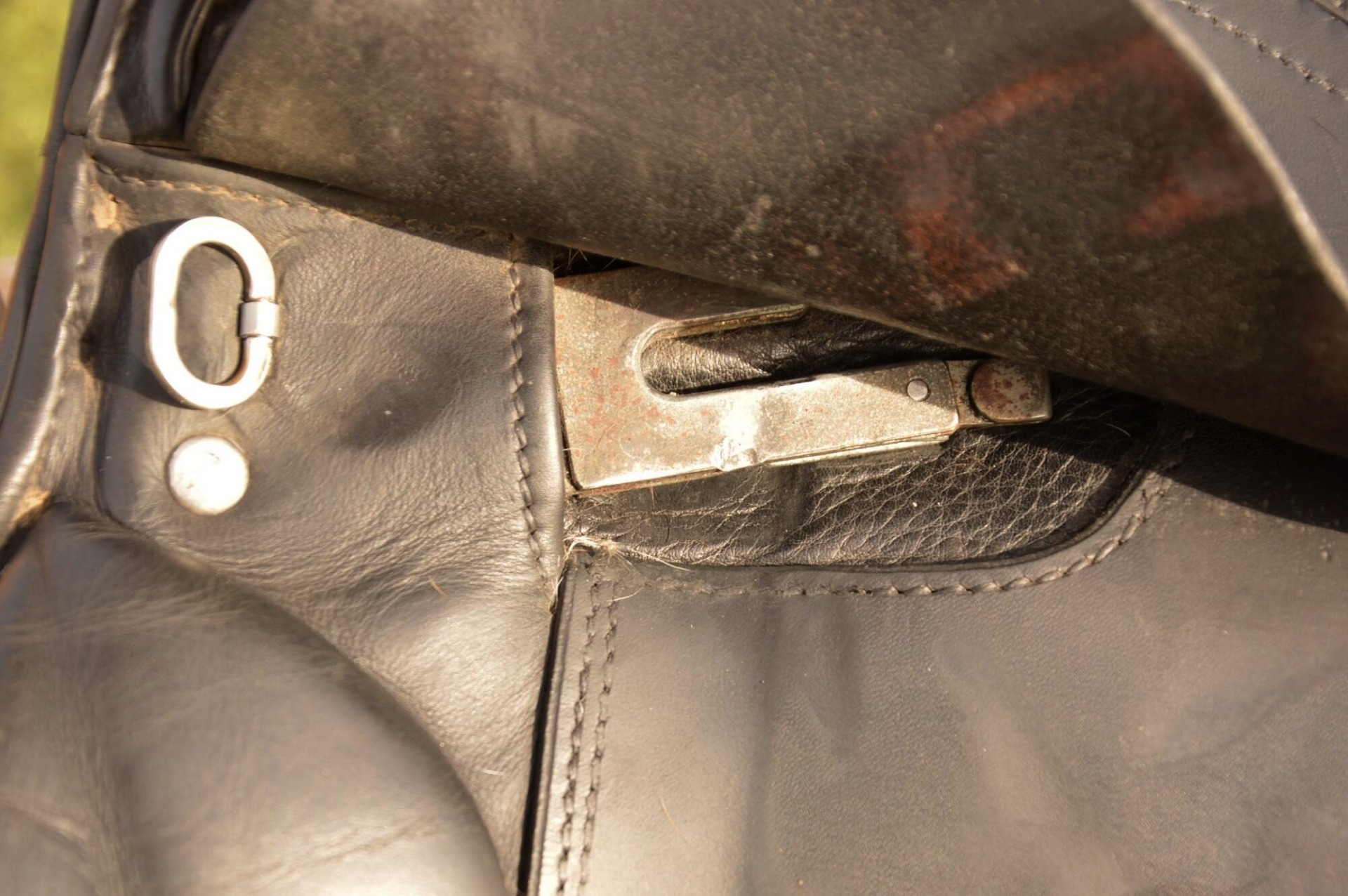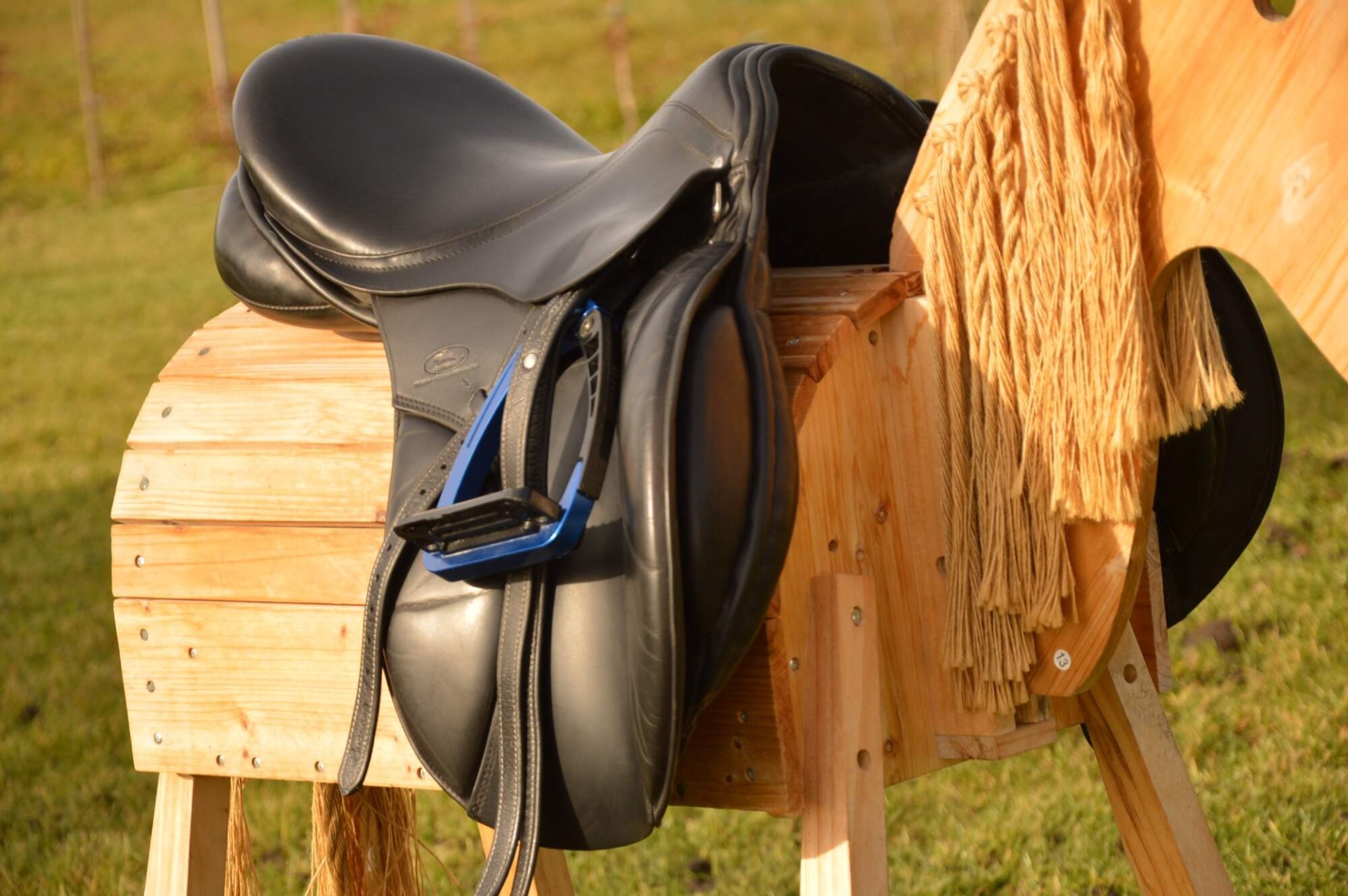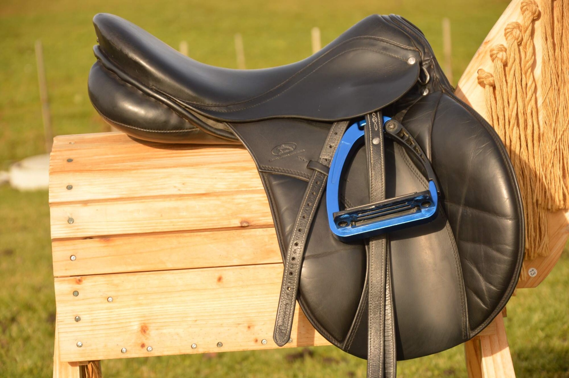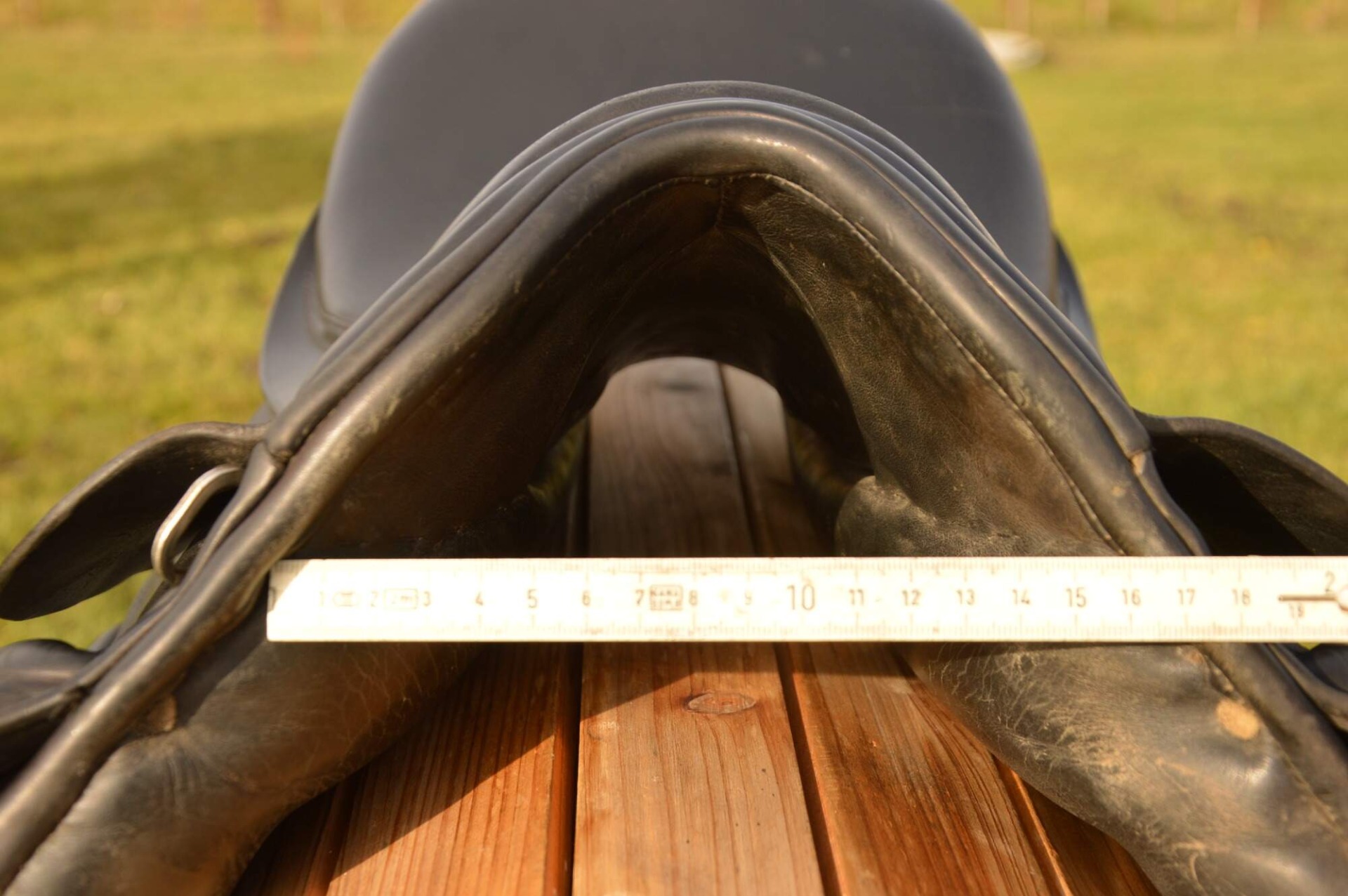 Černé anglické sedlo Jan Hauzr. Posedlí 17,5", komora 3 (16 cm). Sedlo má střední kolenní opěrky, je měkké, pohodlné. Možno využít jako hobby sedlo pro toulky přírodou i jízdárenskou práci. Postaveno na dřevěné kostře s kokovými výztuhami, šito z kvalitní silné kůže. Je v moc dobrém stavu, má jen běžné známky. použití.