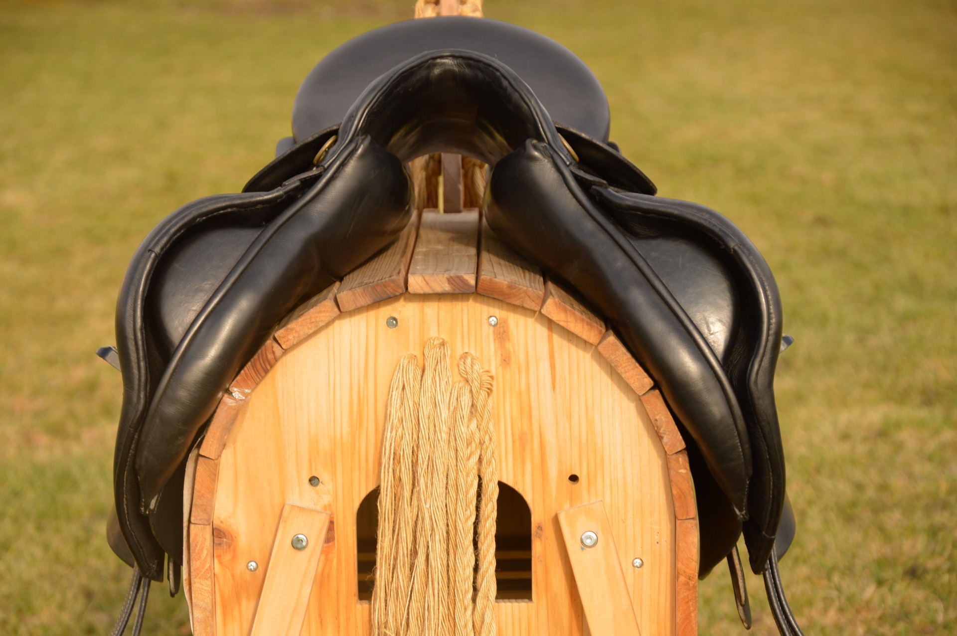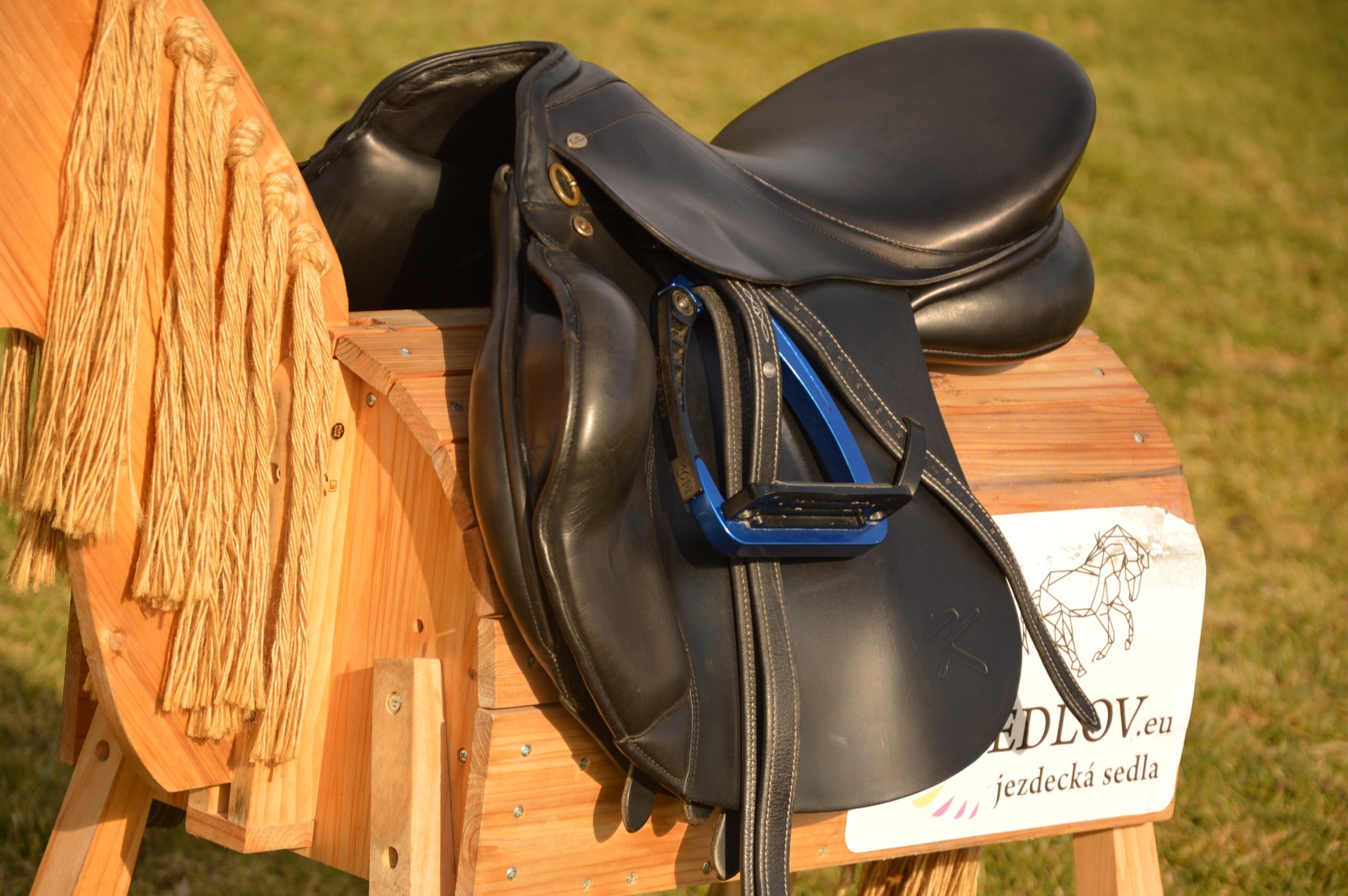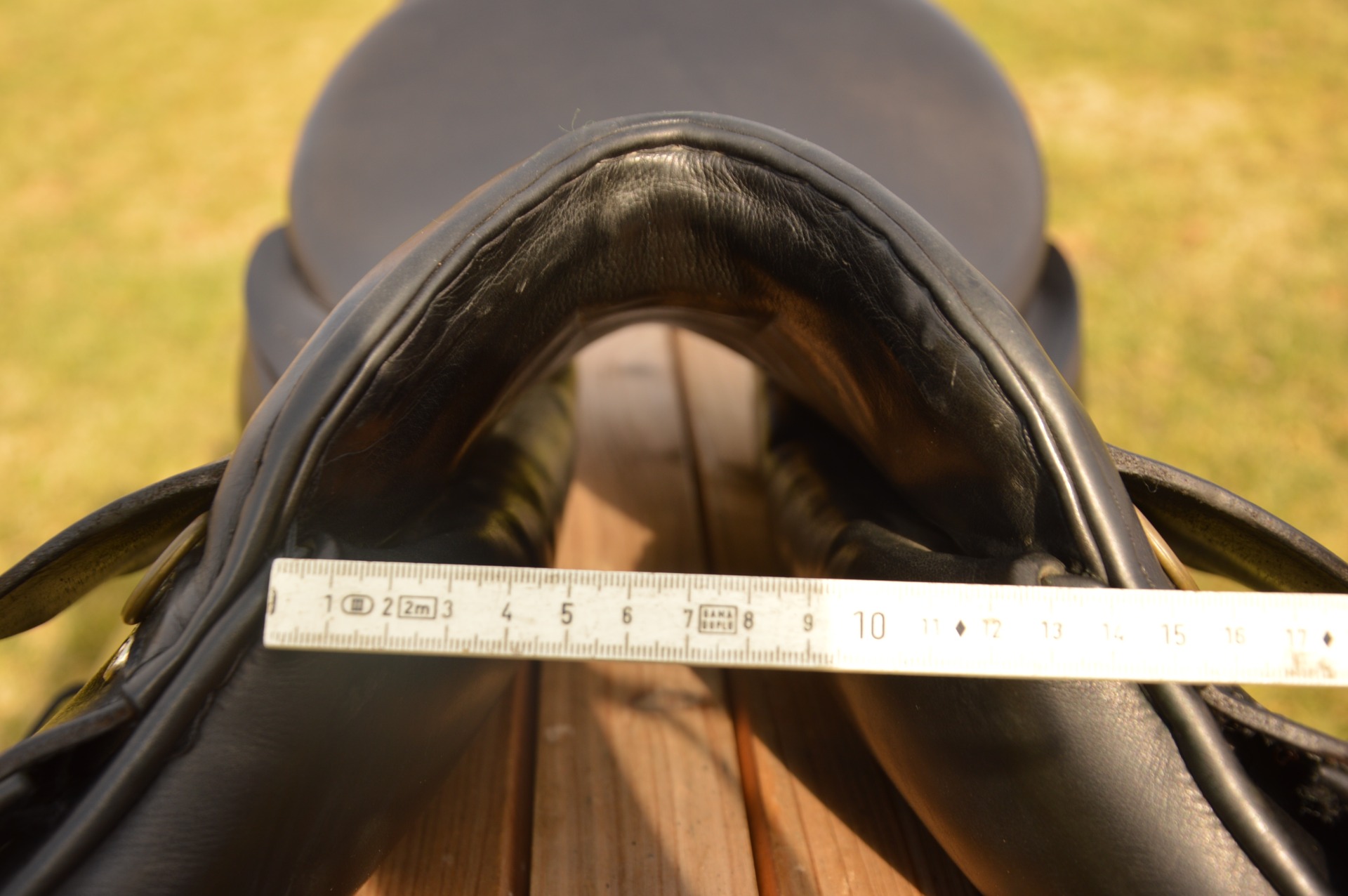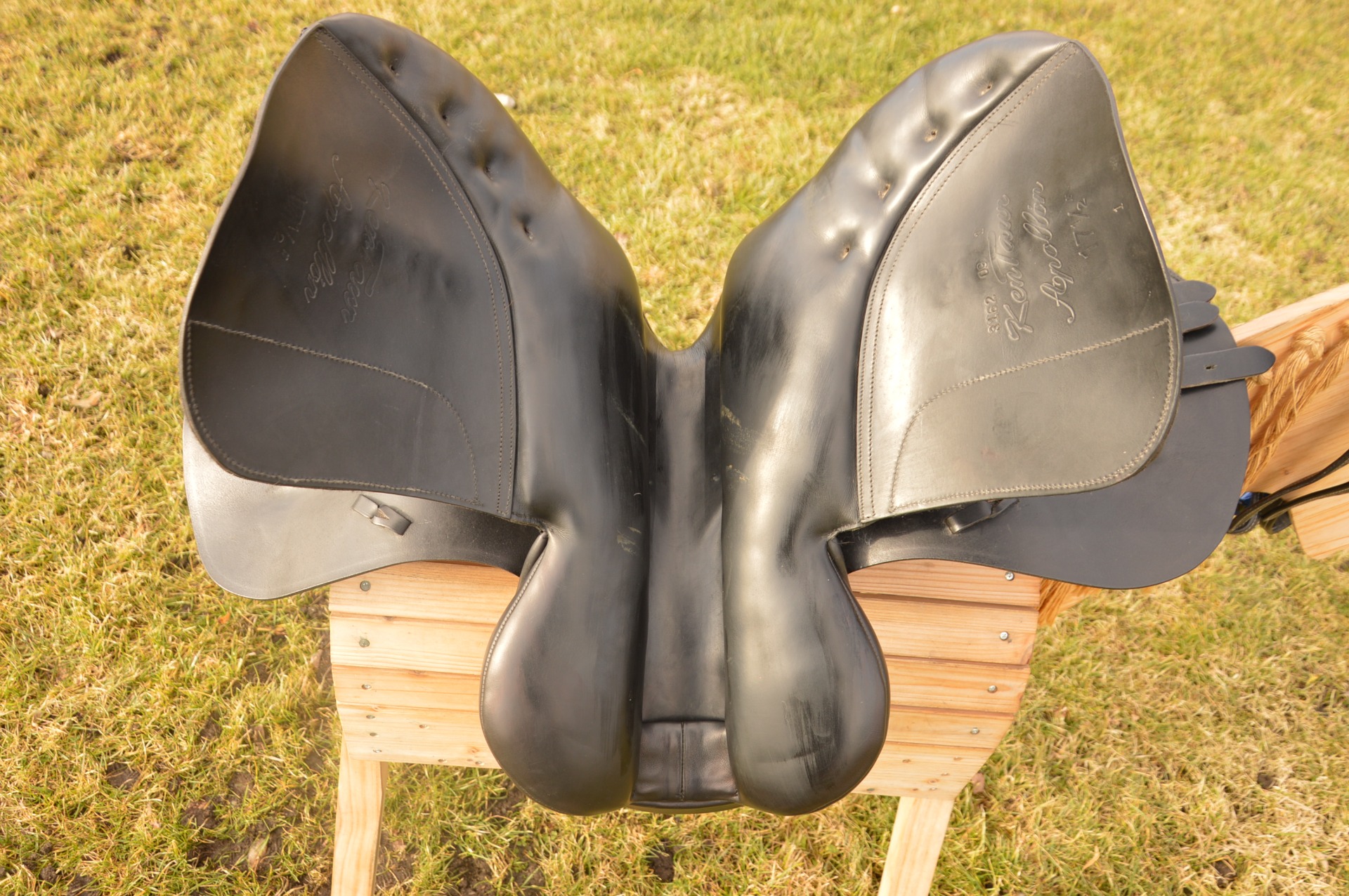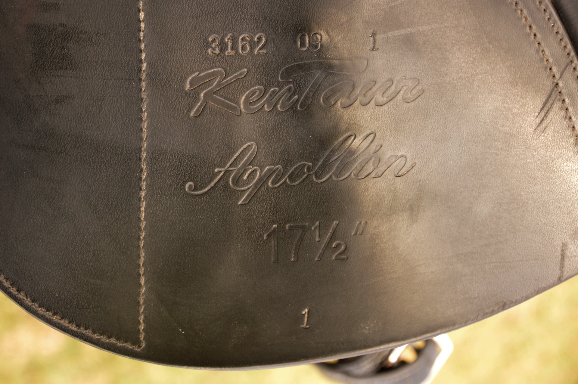 Oblíbené anglické sedlo KenTaur Apollon. Posedlí 17,5, a komora 2 (14 cm). Jedná se o skokově univerzální kontaktní sedlo na vlněných polštářích se zaměřením na skoky. Přední velká opěrka s předtvarovanou bočnicí a vyšší zadní opěrka a suchý zip dodává jezdci velkou jistotu. Hlubší provedení kostry umožňuje dobré vedení sedem při práci s mladými koňmi a výborně podporuje jezdce. Sedlo je vhodné na skoky, přiježďování i do přírody. Běžné známky použití, oprava viz foto levé vnitřní opěrky.