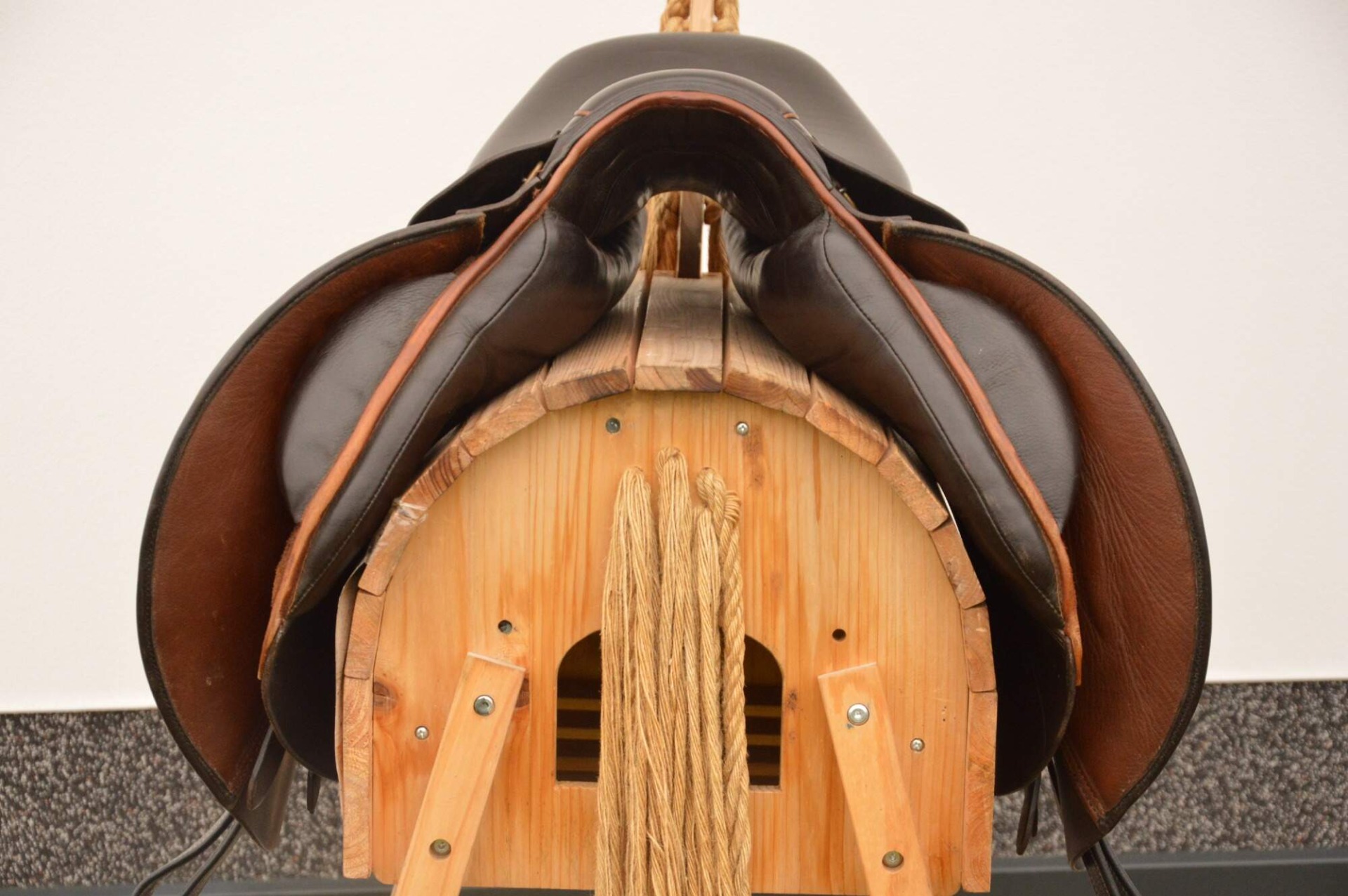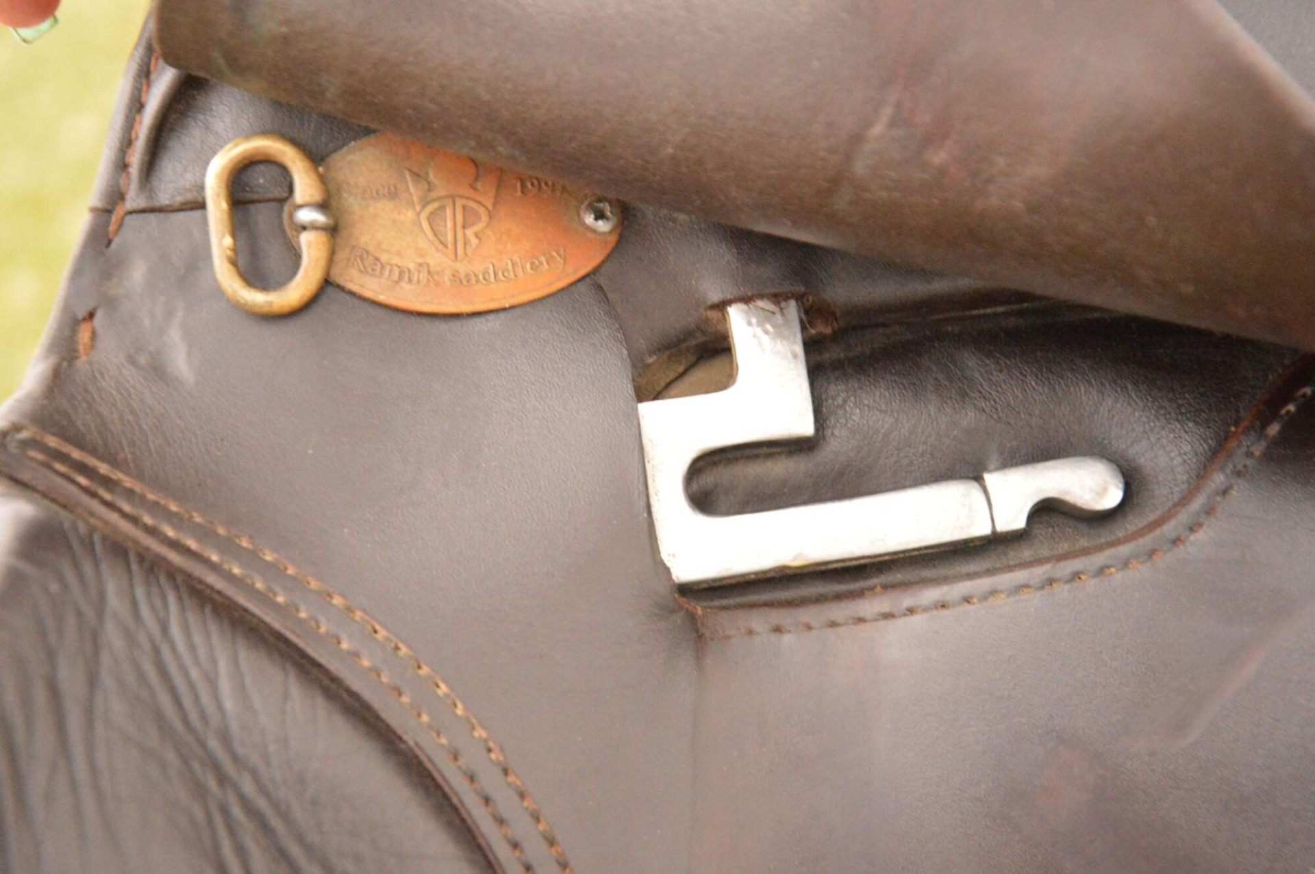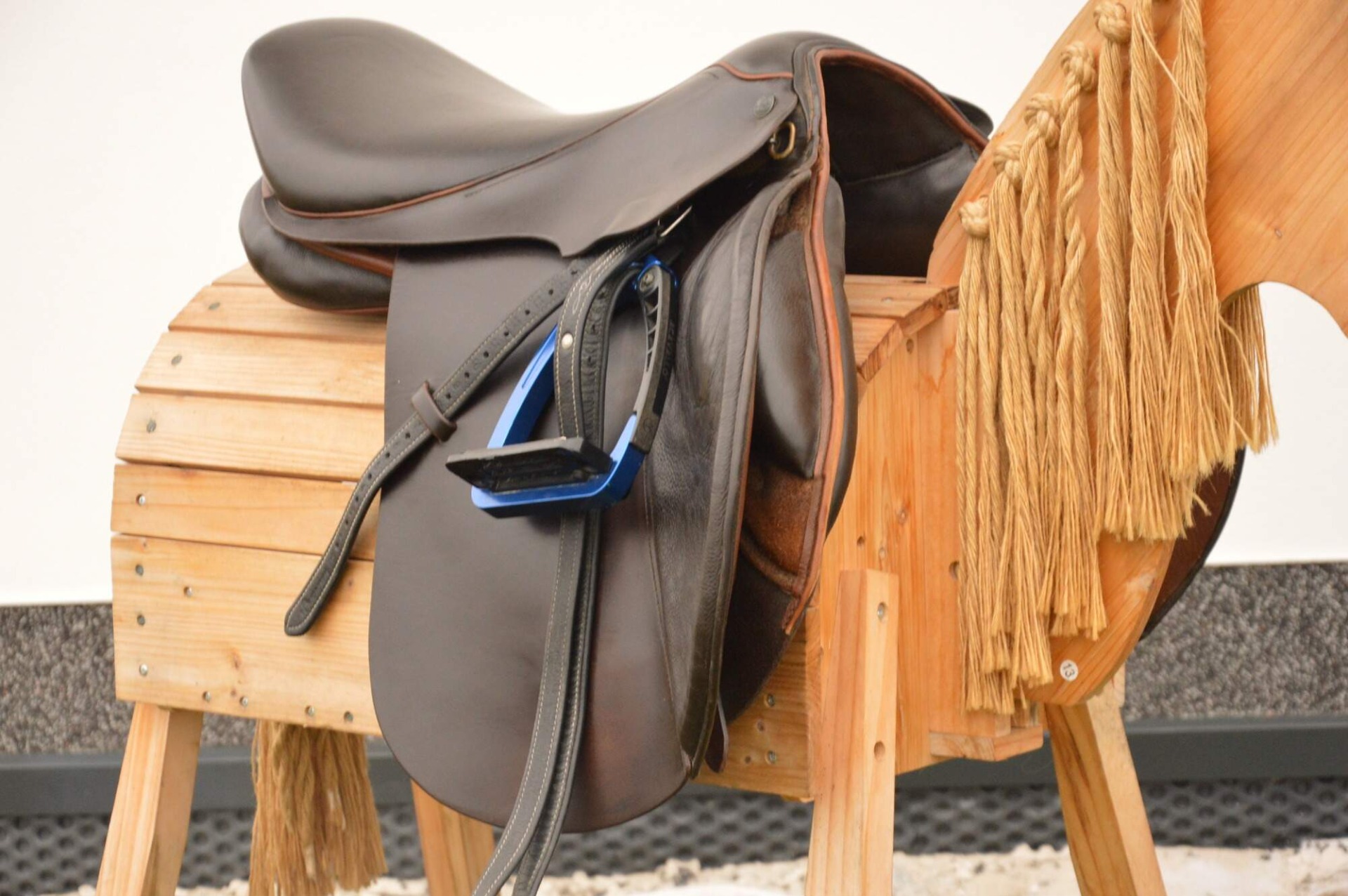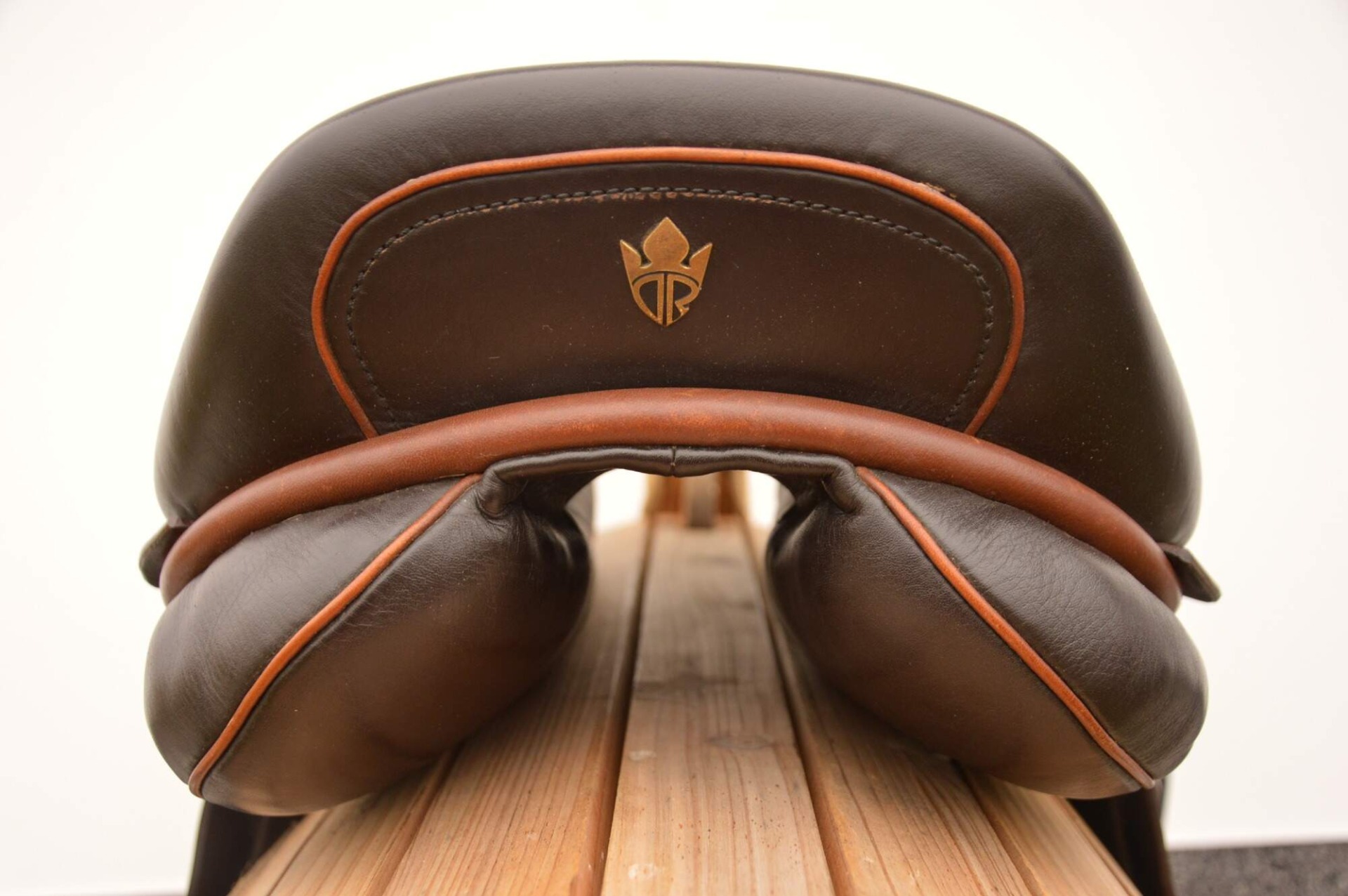 Skokově univerzální sedlo od sedlářství Ramik, model Grasshopper v krásném hnědém designu. Posedlí 17,5" a komora 3 (16 cm). Sedlo s měkkým posedlím a středními kolenními opěrkami. Má vlněné polštáře, široký páteřní kanál, zadní část kostry je rozšířená tak, aby co nejlépe roznášela váhu jezdce. Perfektní sedlo do terénu i skoky. Sedlo je ve velmi dobrém stavu, menší známky použití.