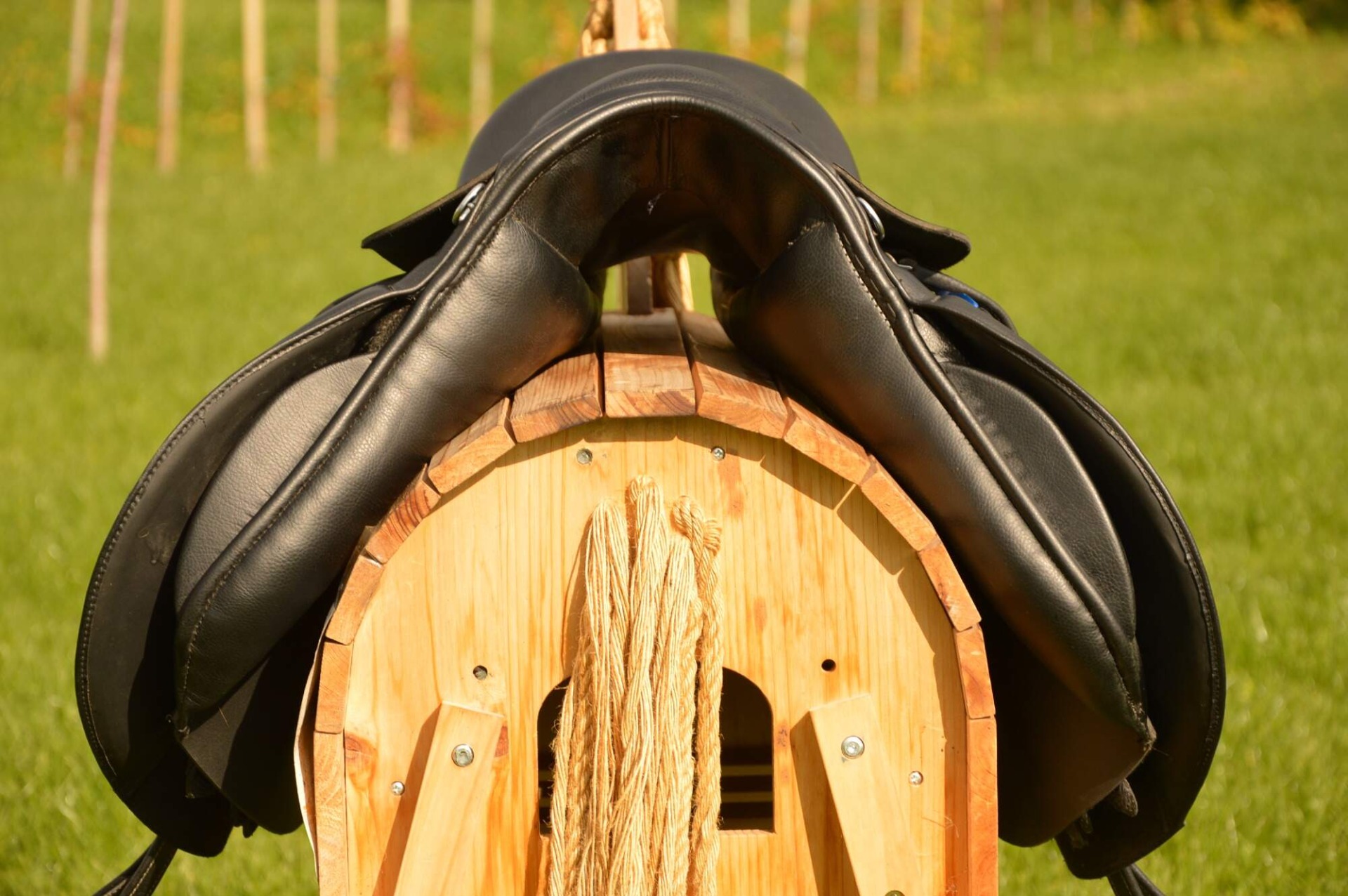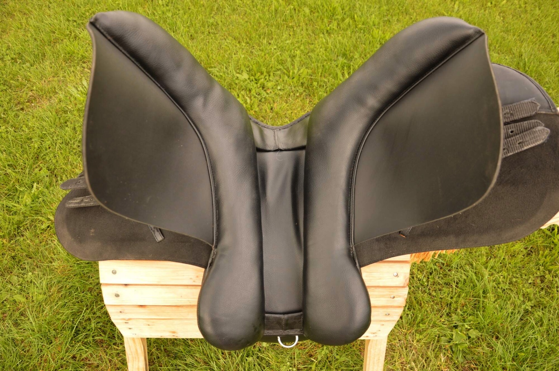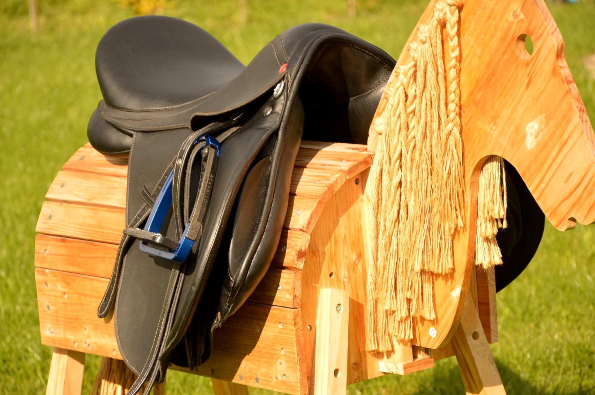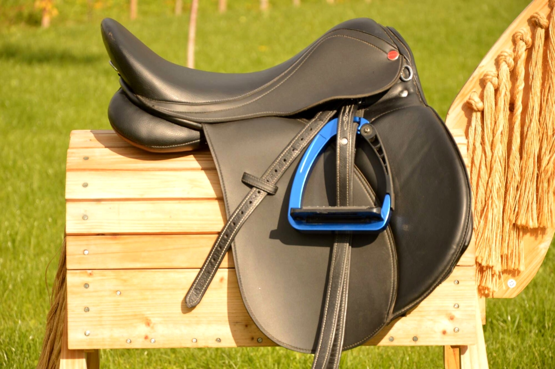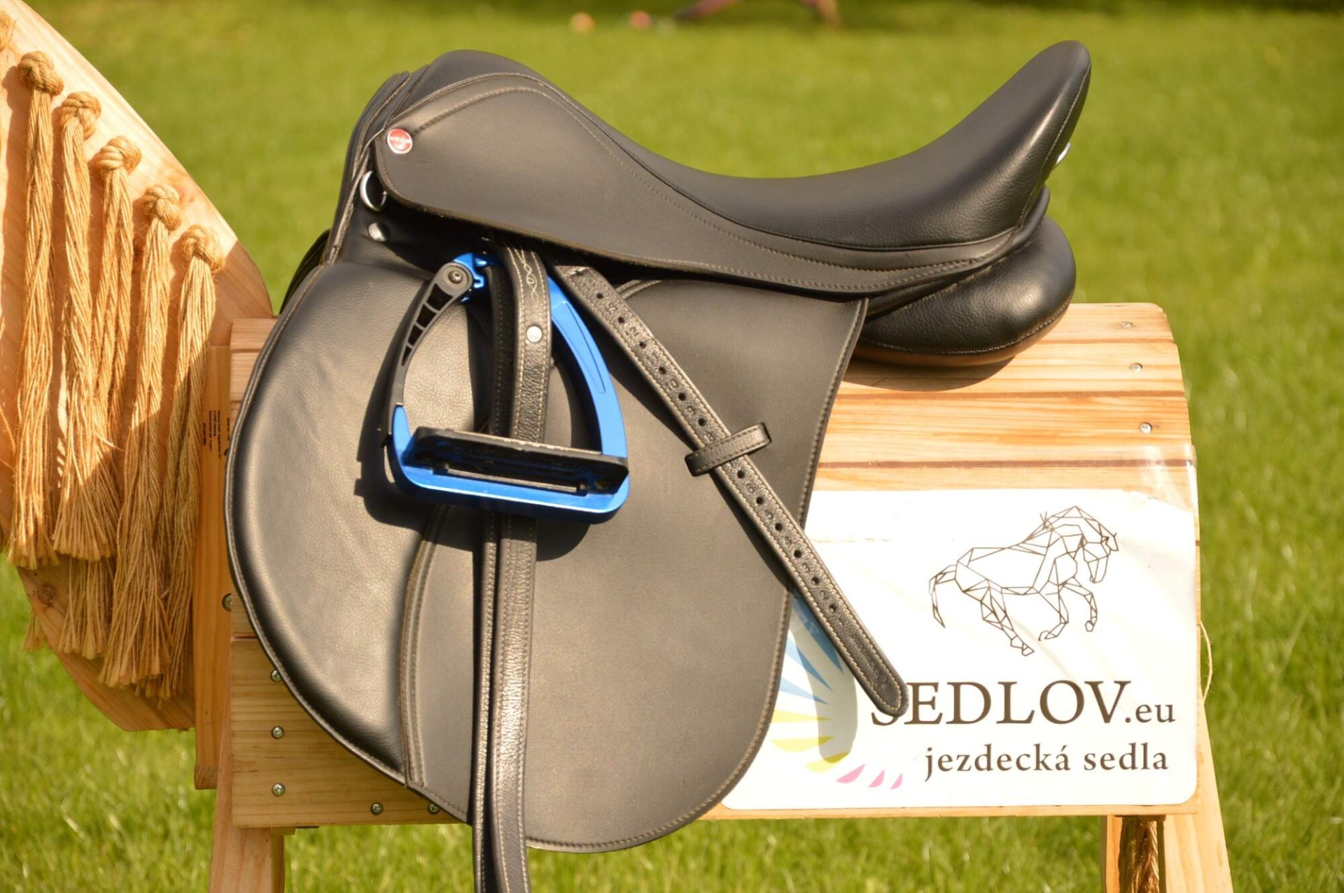 Anglické sedlo značky Star, model Haflinger, vhodné na koně se zkoseným hřbetem a kohoutkem. Nevhodné na kulaté koně bez kohoutku. Posedlí odpovídá 17,5", komora 4 (16 cm). Sedlo je lehké - syntetické materiály, má střední kolenní opěrky, hluboké posedlí je velmi měkké a pohodlné. Vlněné polštáře, dobře tlumí nárazy. Vhodné na vyjížďky, jízdárenskou práci i malé skoky. Sedlo je ve výborném stavu, plně funkční.