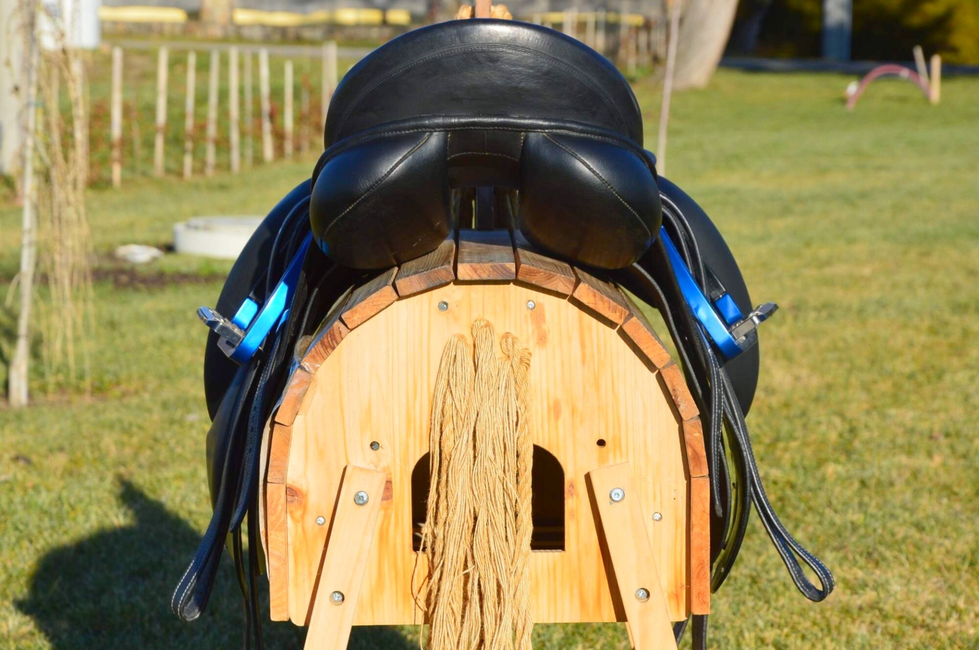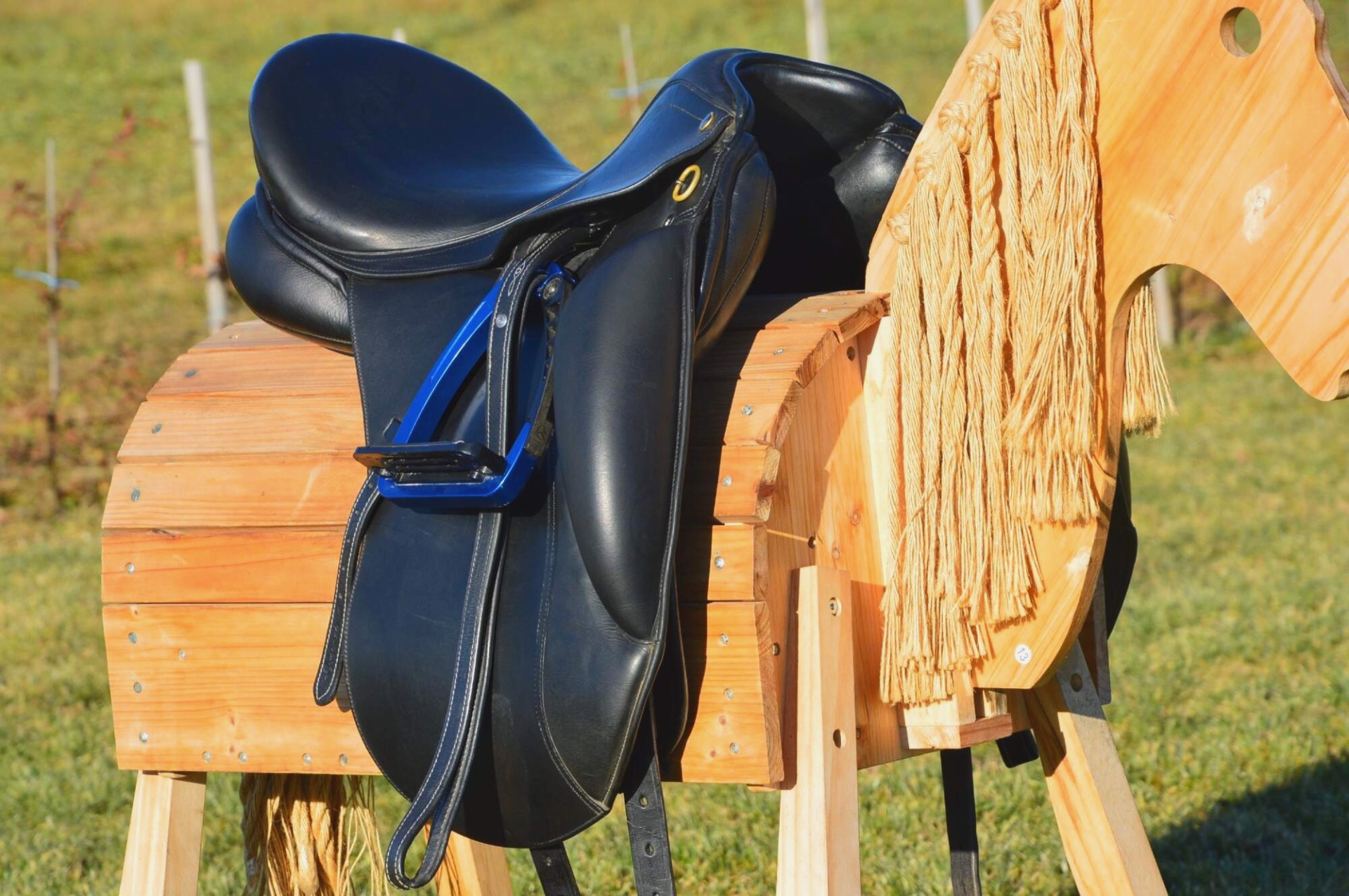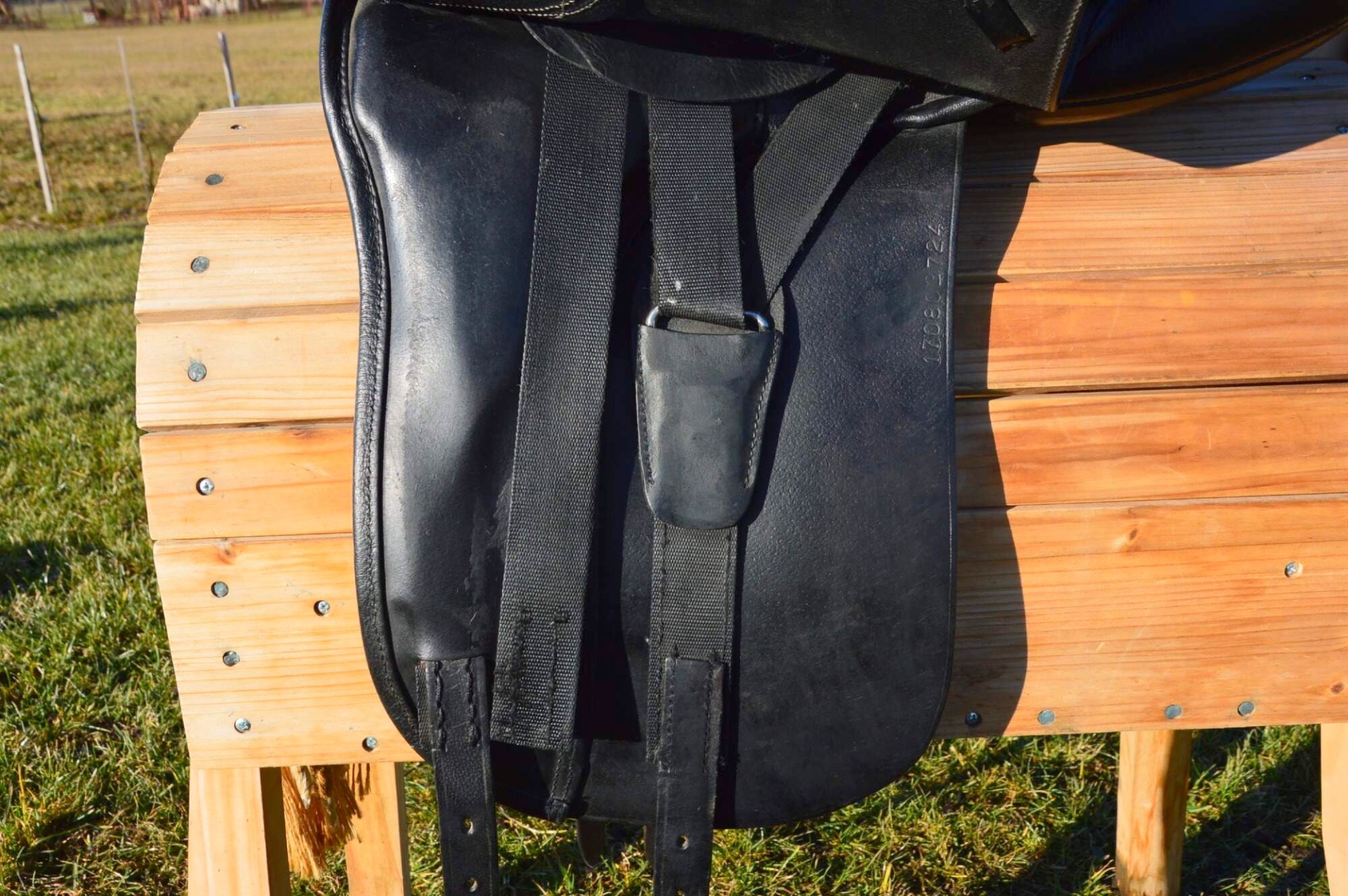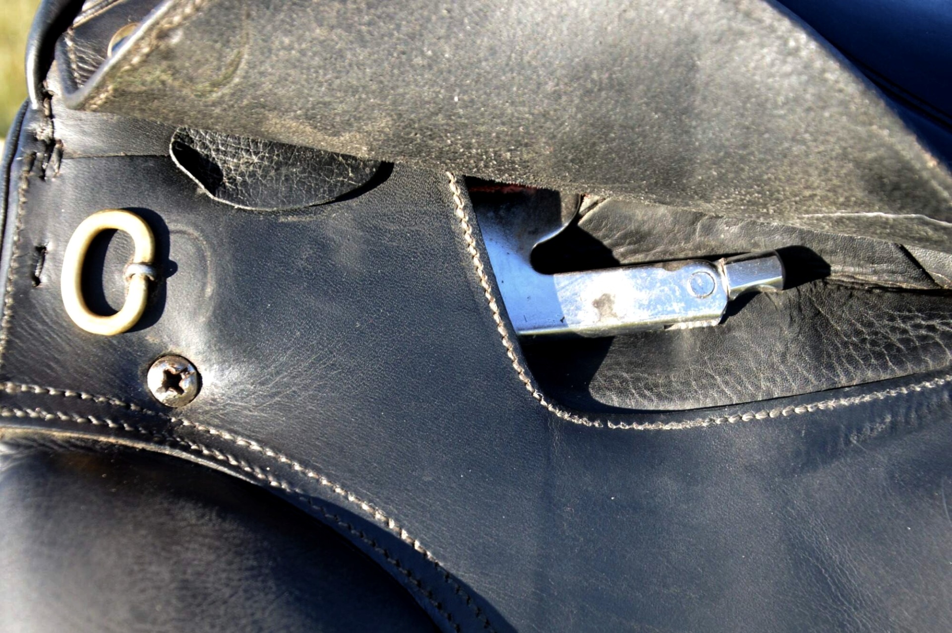 Sedlo nabízí AMS speciální sedlové polštáře - dvouvrstvá konstrukce s rovnoměrně měkkou a prodyšnou syntetickou pěnou + individuálně nastavitelná polyester výplň. Jsou určeny pro širokou nosnou plochu. Široký páteřní kanál, středně umístěné řemeny na podbřišník s tvarem do V pro co možná nejlepší stabilitu sedla. Výborný stav, jen menší známky použití.