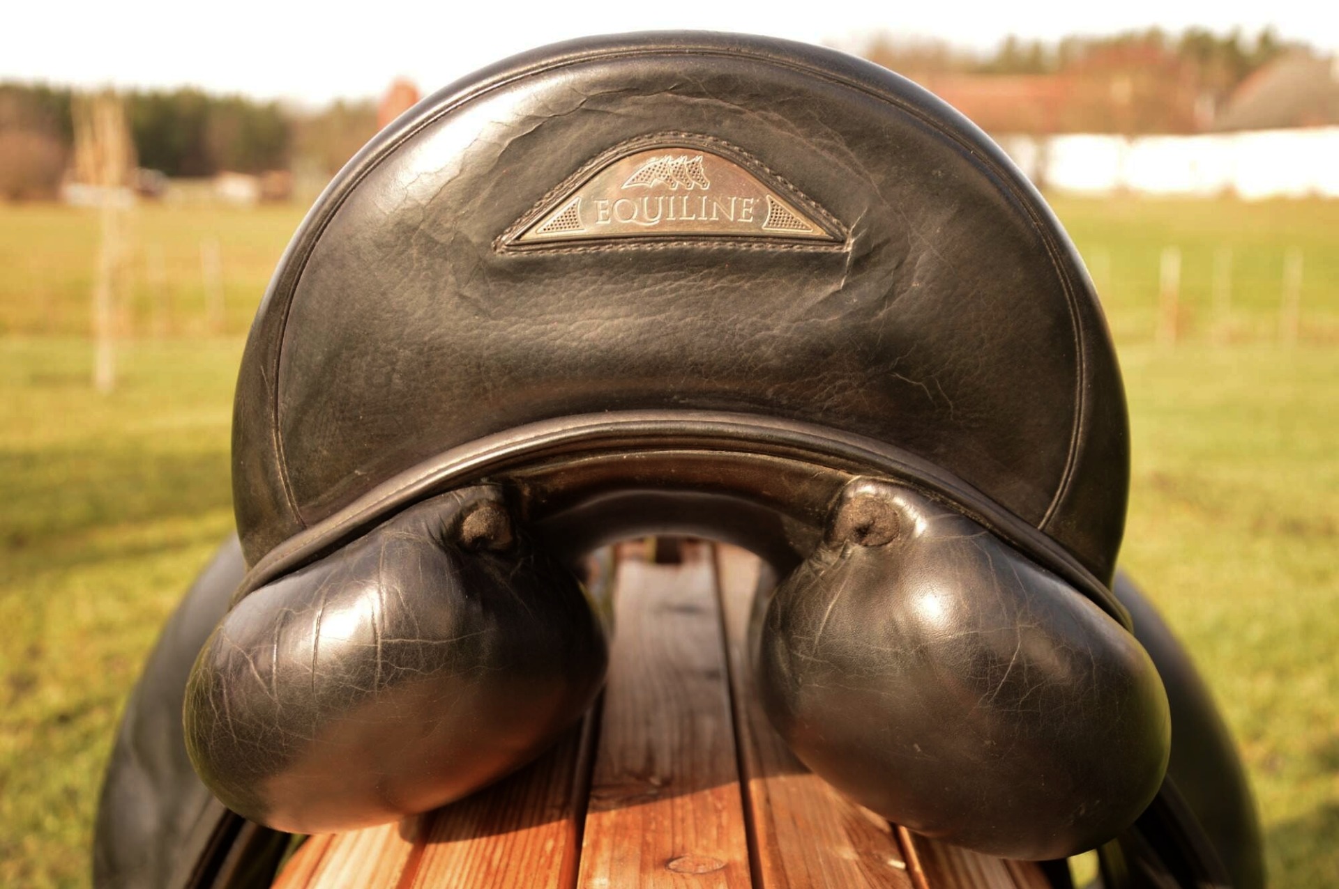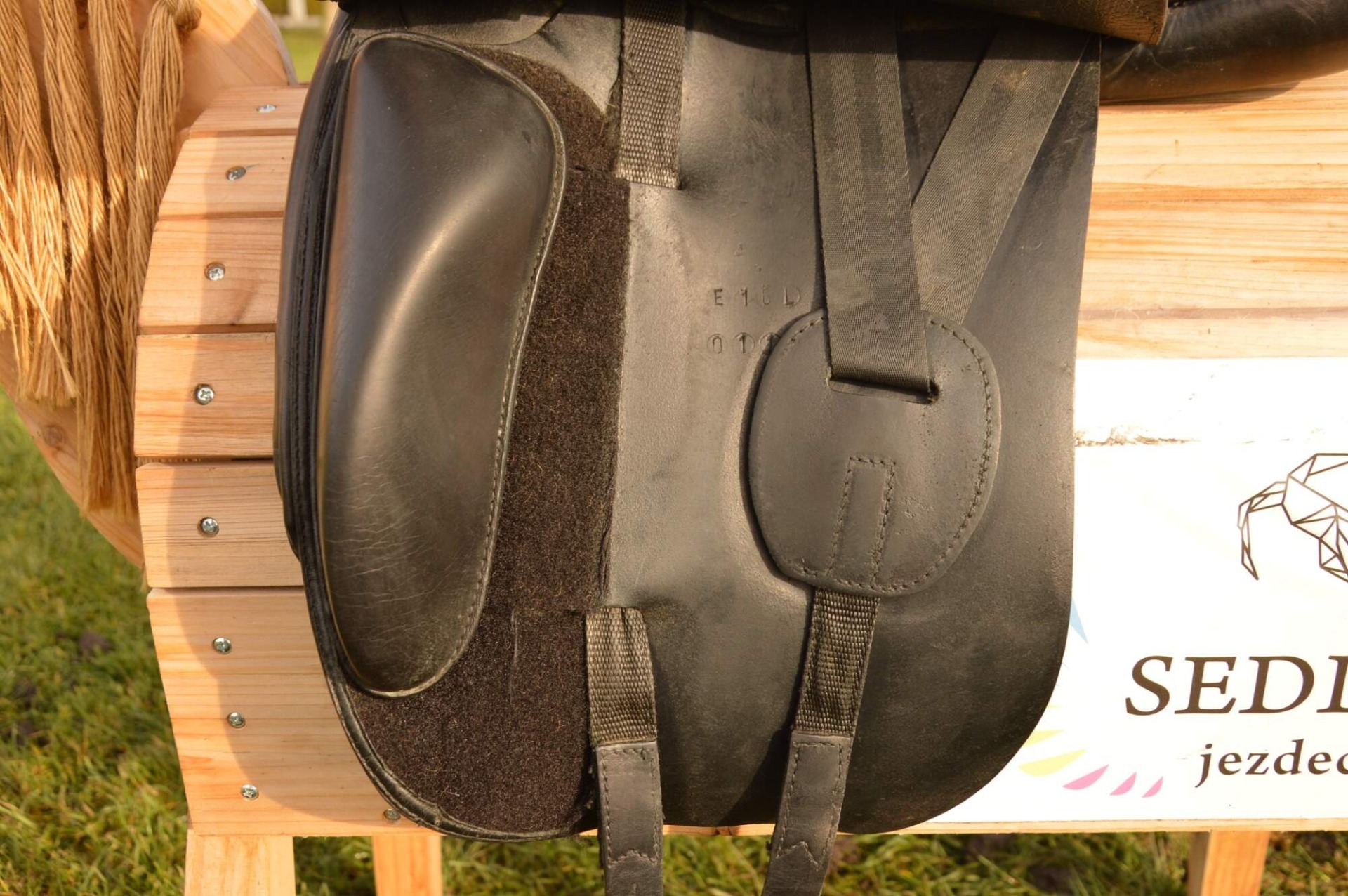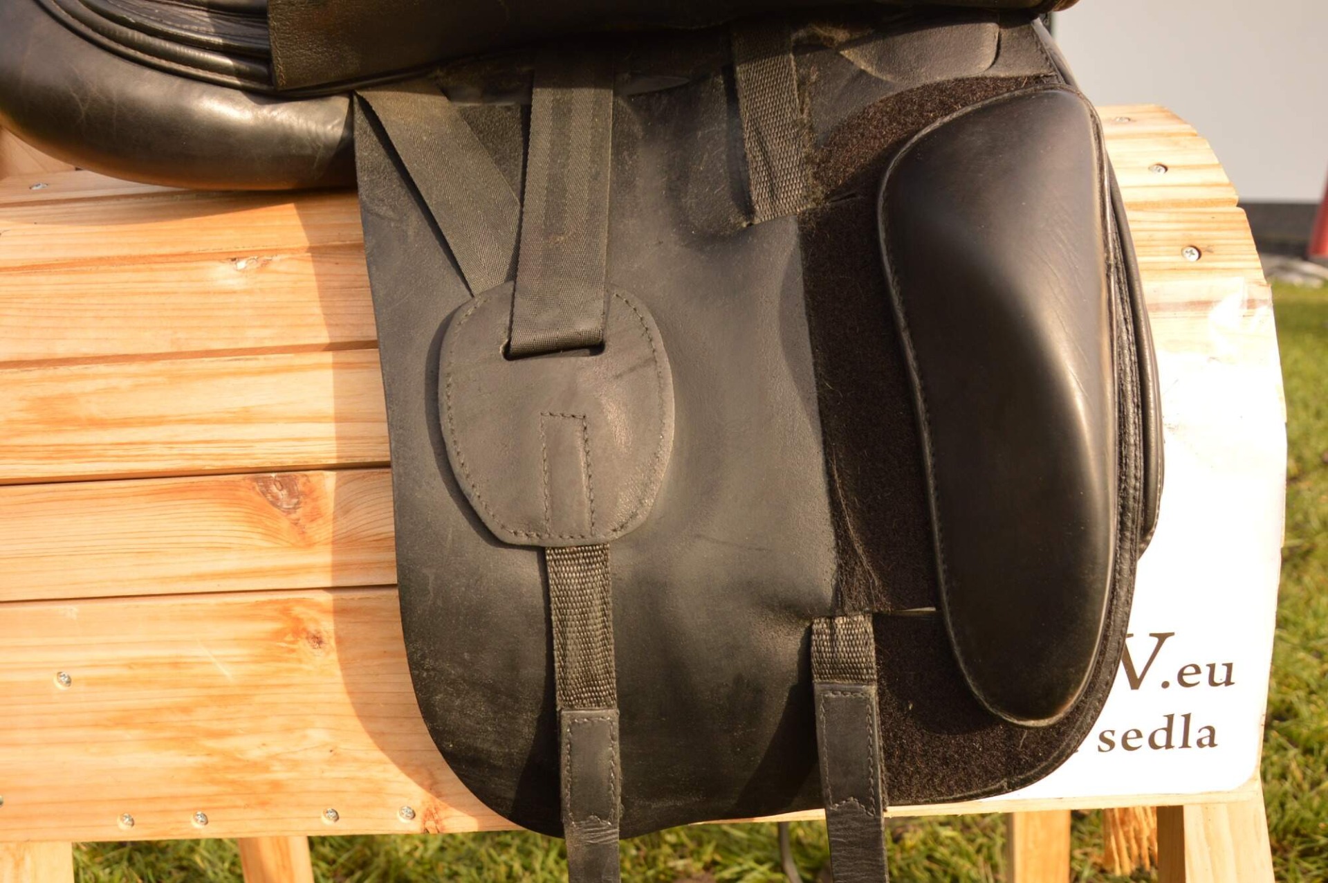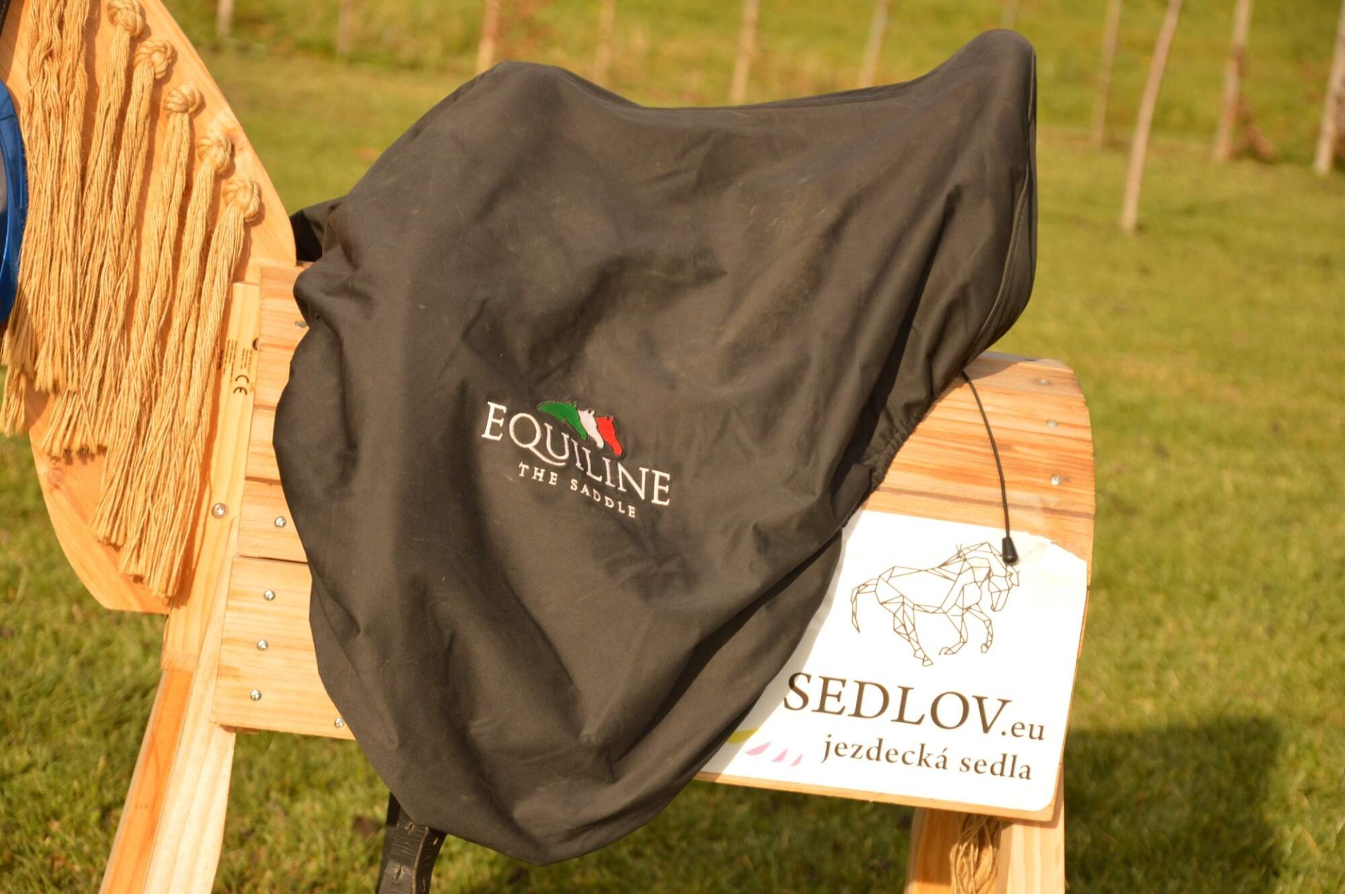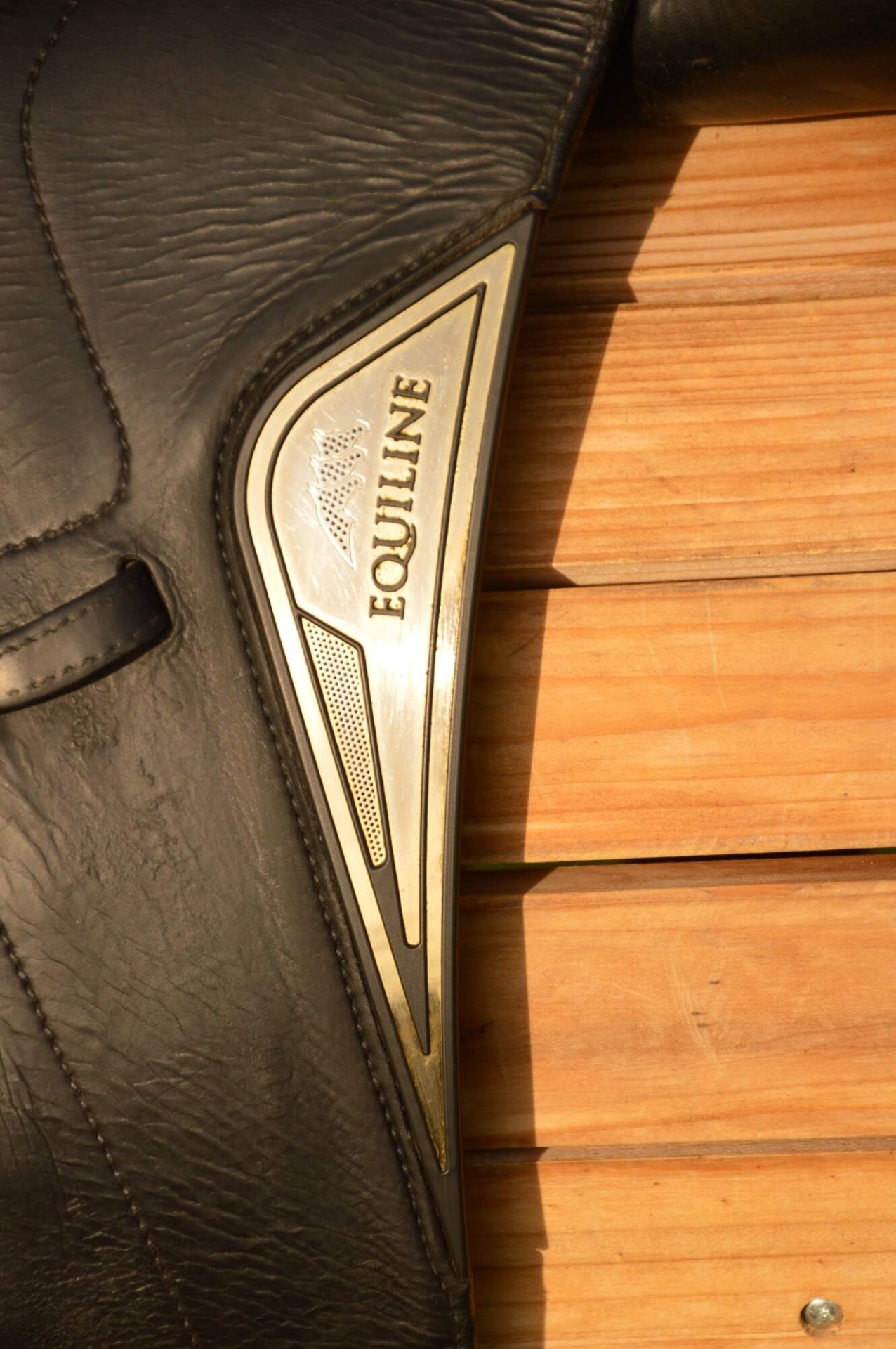 Špičkové drezurní sedlo italského výrobce Equiline, model New Contest. Posedlí 17", komora 2-3 (15 cm). Sedlo je vyrobeno z měkké italské kůže prvotřídní kvality, je potaženo protiskluzovou telecí kůží. Vyznačuje se hlubším posedlím a vysokou vnější kolenní opěrkou, která výborně podpoří sed jezdce. Sedlové polštáře jsou vlněné a jsou tvořeny speciálním gelovým vypodložením v oblasti sedacích kostí jezdce. Jedná se novou IGS technologii, kterou si nechala firma Equiline patentovat. Technologie spočívá ve zvýšení komfortu jezdce i koně optimální absorbcí tlaku. Gelové vypodložení je vyrobené z visko-elastického polymeru, který je trvanlivý, spolehlivý, odolný a uchovává si svou paměť. Další technologie, kterou sedlo nabízí je Coreshield - unikátní systém přední komory, která je pružná a odolná vůči deformaci. Sedlo je taktéž vyrobeno s FHT technologií (tj. technologie gripových bočnic). Sedlo má elastickou kostru kopírující tvar koňského hřbetu. Kostra je lehčí, stabilnější a má větší trvanlivost než kostra dřevěná. Velikost komory je možné kdykoli přetvarovat dle koně.