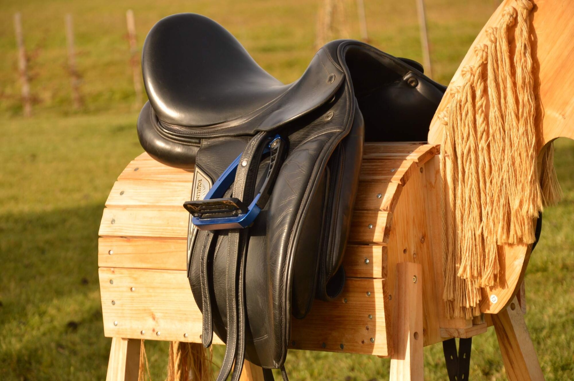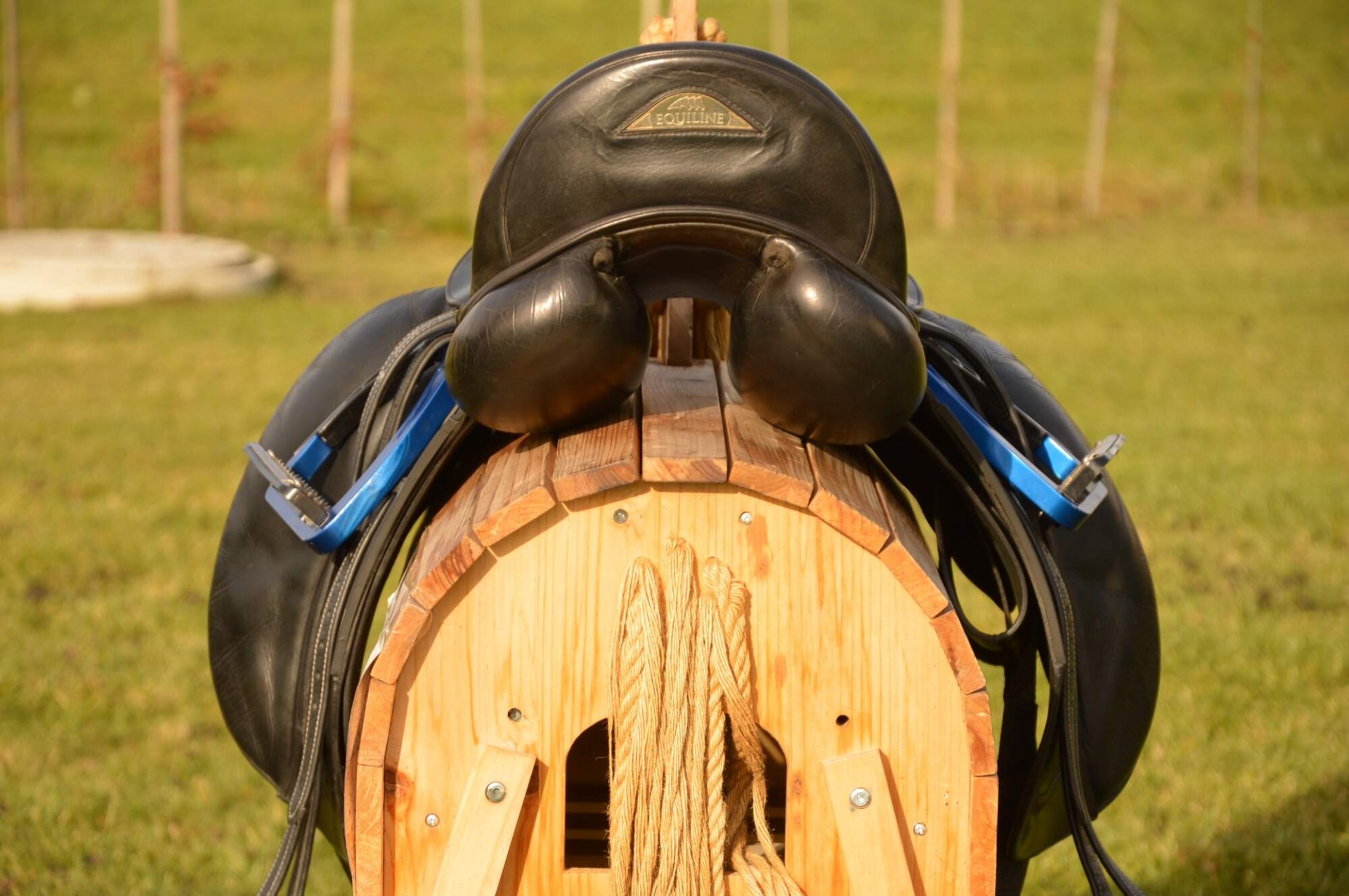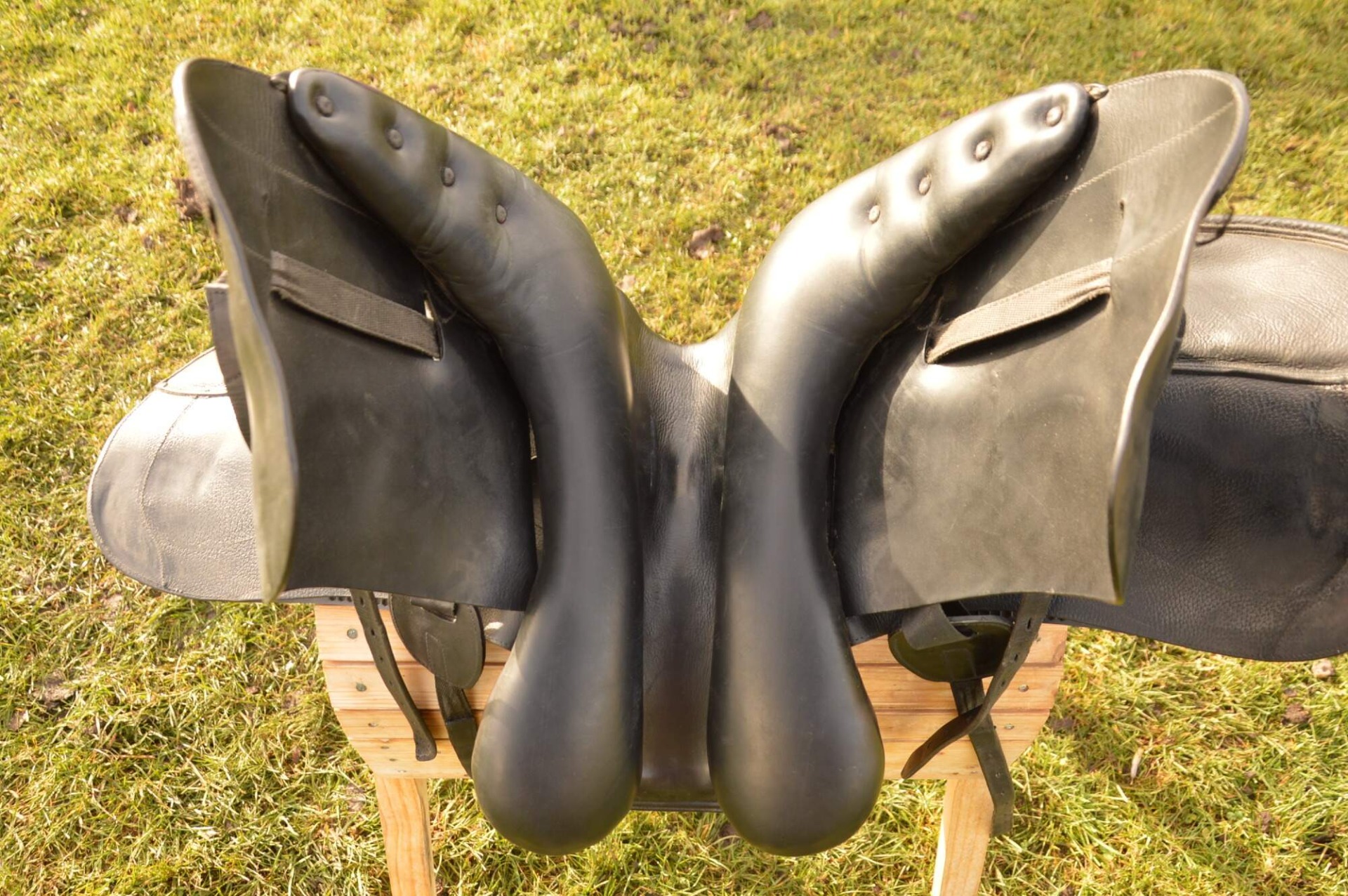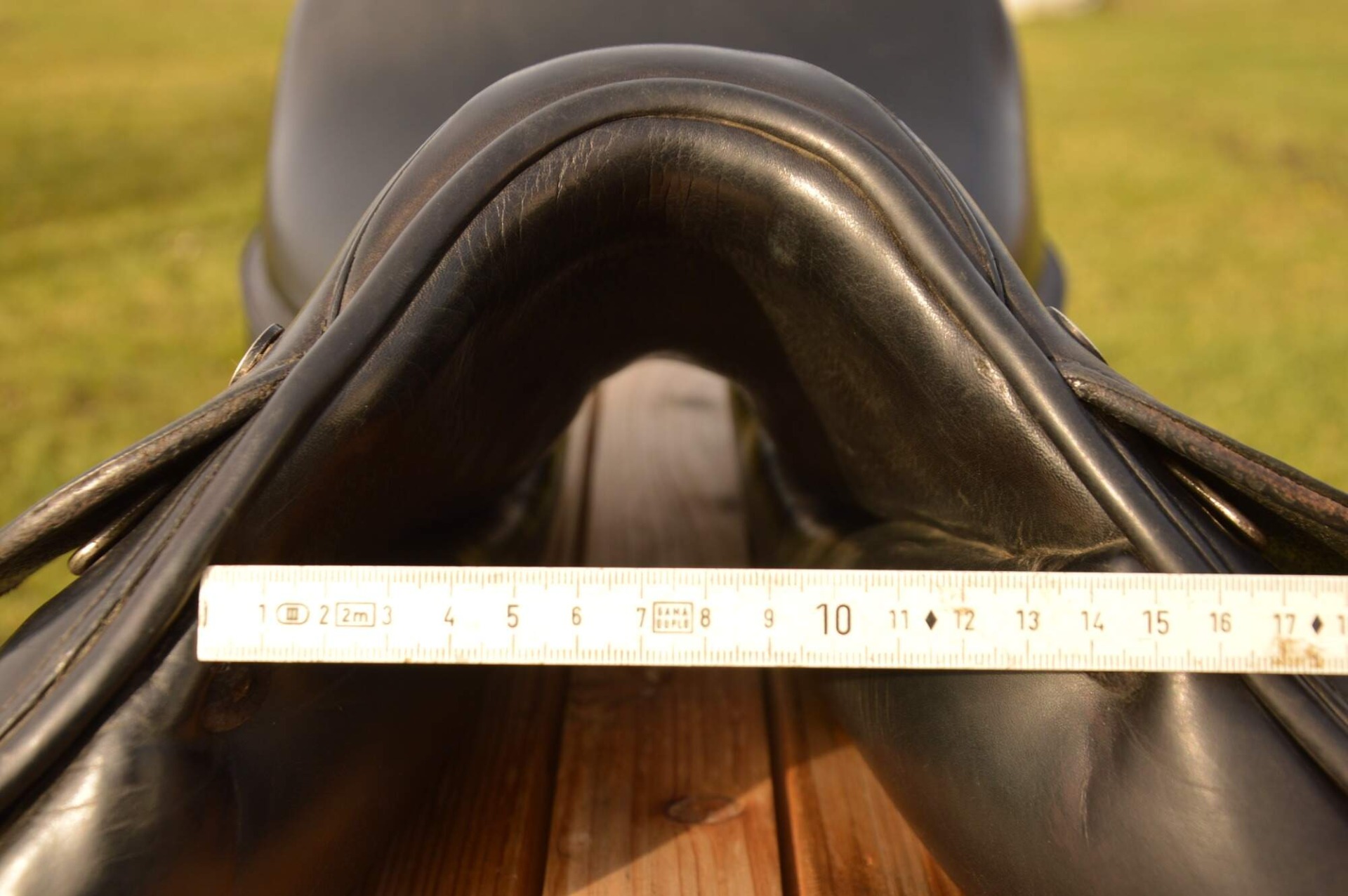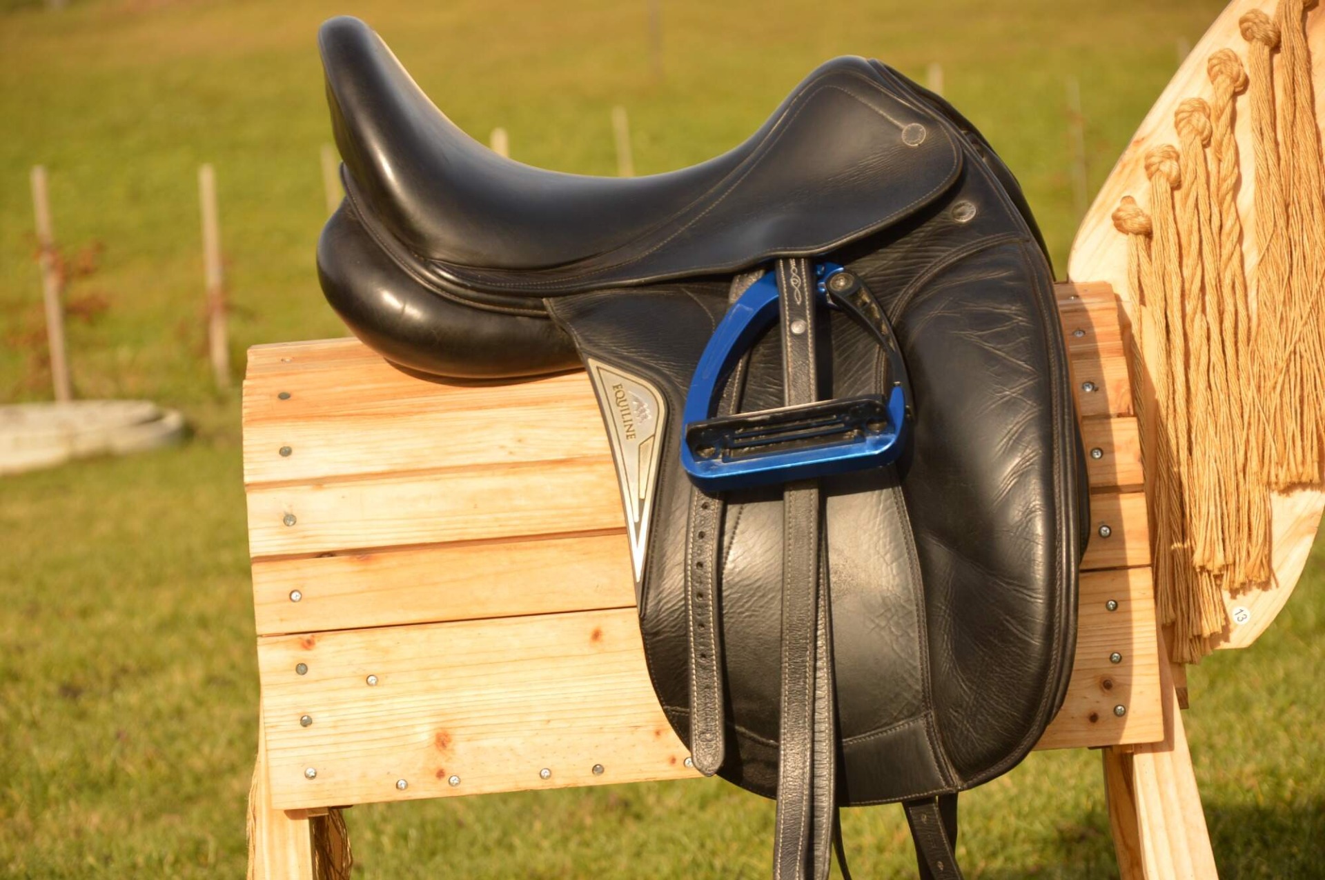 Špičkové drezurní sedlo italského výrobce Equiline, model New Contest. Posedlí 17", komora 2-3 (15 cm). Sedlo je vyrobeno z měkké italské kůže prvotřídní kvality, je potaženo protiskluzovou telecí kůží. Vyznačuje se hlubším posedlím a vysokou vnější kolenní opěrkou, která výborně podpoří sed jezdce. Sedlové polštáře jsou vlněné a jsou tvořeny speciálním gelovým vypodložením v oblasti sedacích kostí jezdce. Jedná se novou IGS technologii, kterou si nechala firma Equiline patentovat. Technologie spočívá ve zvýšení komfortu jezdce i koně optimální absorbcí tlaku. Gelové vypodložení je vyrobené z visko-elastického polymeru, který je trvanlivý, spolehlivý, odolný a uchovává si svou paměť. Další technologie, kterou sedlo nabízí je Coreshield - unikátní systém přední komory, která je pružná a odolná vůči deformaci. Sedlo je taktéž vyrobeno s FHT technologií (tj. technologie gripových bočnic). Sedlo má elastickou kostru kopírující tvar koňského hřbetu. Kostra je lehčí, stabilnější a má větší trvanlivost než kostra dřevěná. Velikost komory je možné kdykoli přetvarovat dle koně.