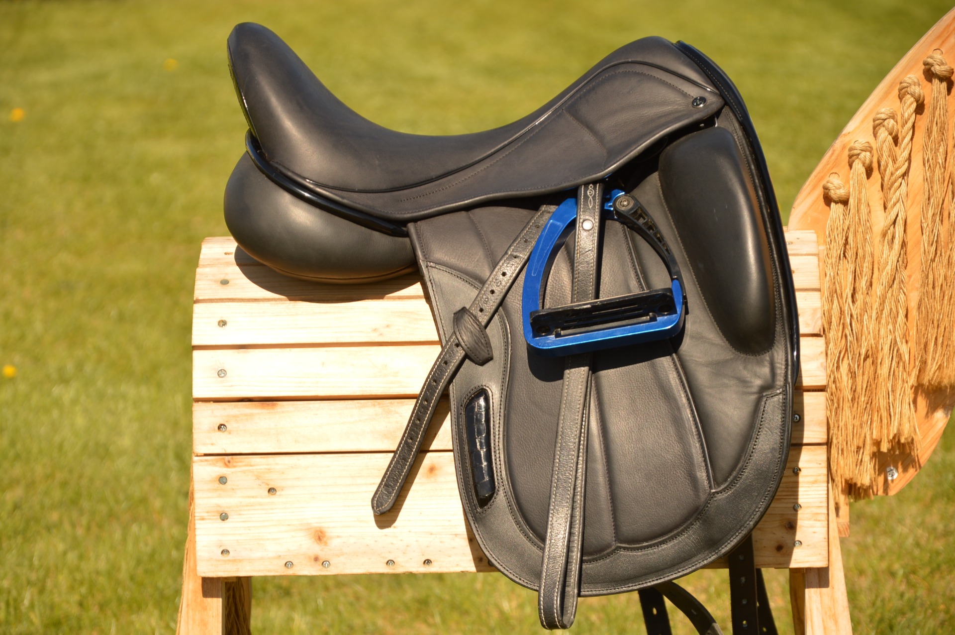 Sedlo poskytuje jezdci oporu prostřednictvím hlubšího sedu a vysoké opěrky, zároveň nechává jezdci dostatek volnosti. Sedlo provedeno v protiskluzové kůži, která jezdci velmi dobře pomáhá udržovat správný sed a dávat přesné pobídky. Sedlo je ve stavu nového. Původní cena přes 100.000Kč