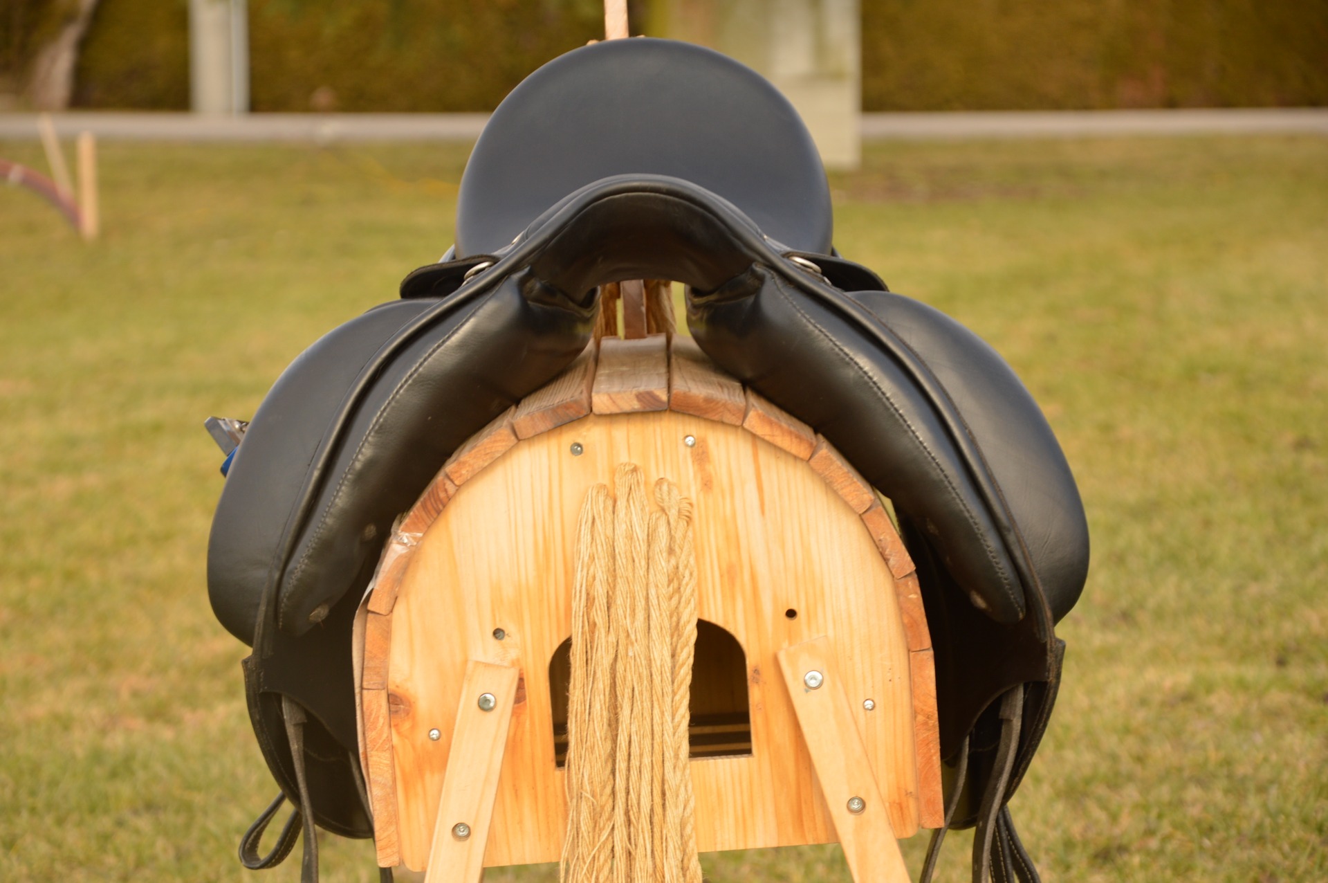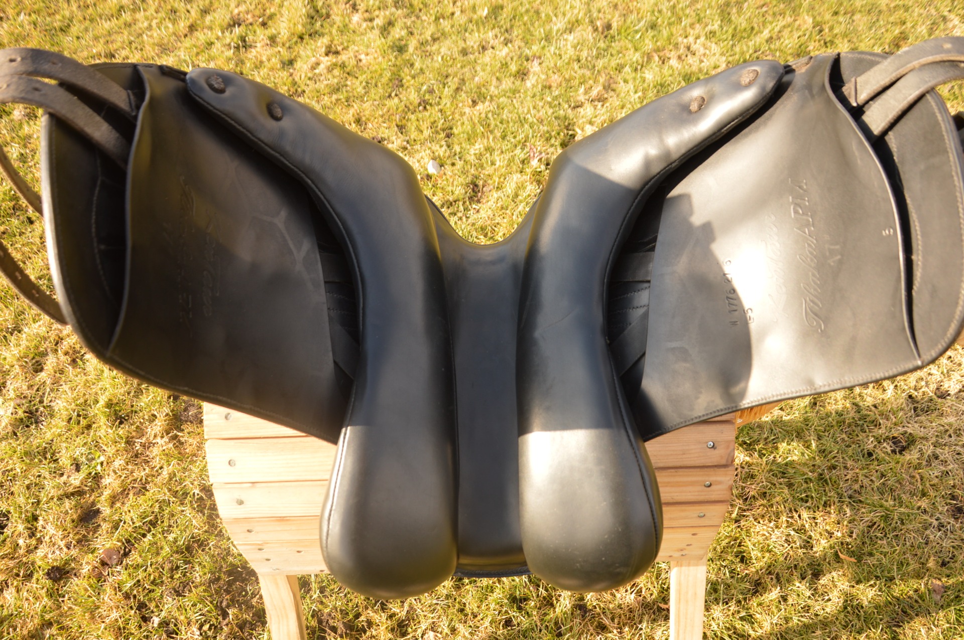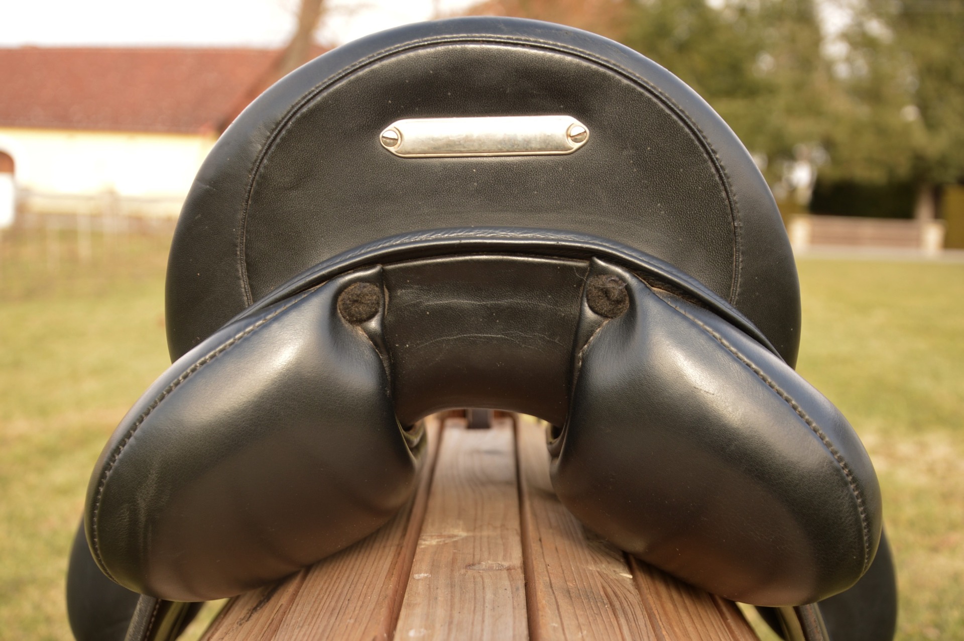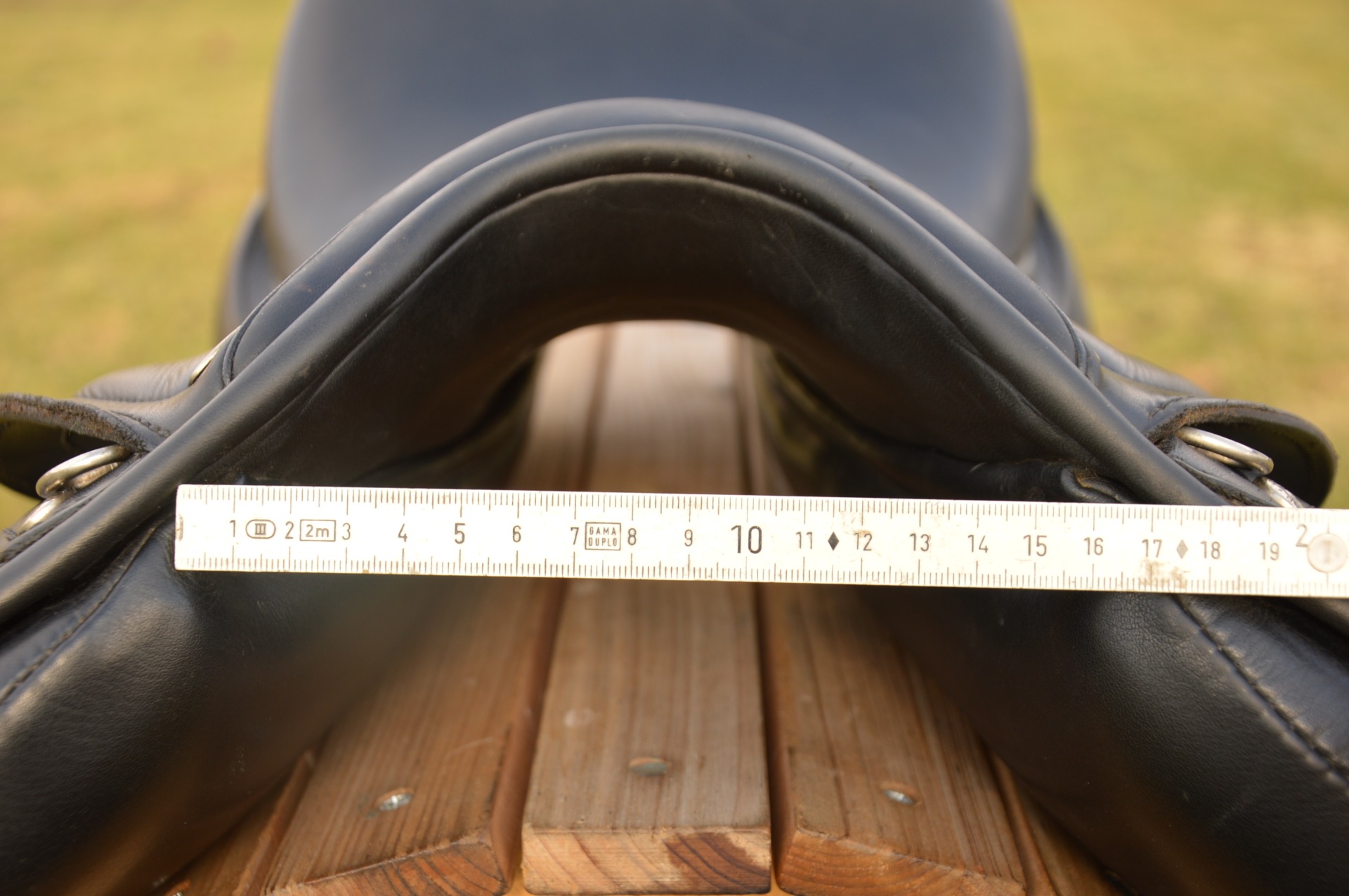 Černé drezurní sedlo KenTaur Ithaka APM na široký hřbet. Posedlí 17", komora psaná 5 (17 cm), délka bočnice kratší o 5 cm oproti standardu (vhodné i pro kratší holeň). Je postavené na hluboké, elastické kostře s podélnými výztuhami z pevné oceli - WEBFLEX. Kostra má širší komoru, která poskytuje koni optimální volnost v oblasti krku a lopatky. Polštáře podél kolenních opěrek jsou přizvedlé a umožňují neomezený pohyb lopatky. Krátký sedlový francouzský polštář, předurčující sedlo pro koně s kulatým, rovným, krátkým nebo přestavěným hřbetem. Vysoké kolenní opěrky (délka opěrky 26cm), které dávají kolenu jezdce větší volnost pohybu, protiskluzová kůže - dvojitá teletina, monoblat - jen jedna bočnice - výborný kontakt s koněm. Sedlo vyrobené z prvotřídní evropské kůže. Je v zánovním stavu, minimální známky použití. Rok výroby 2021.