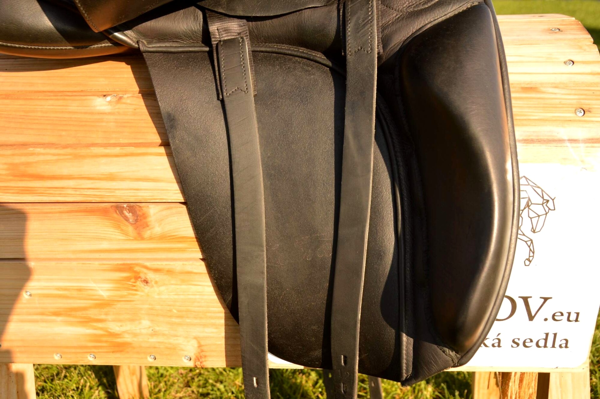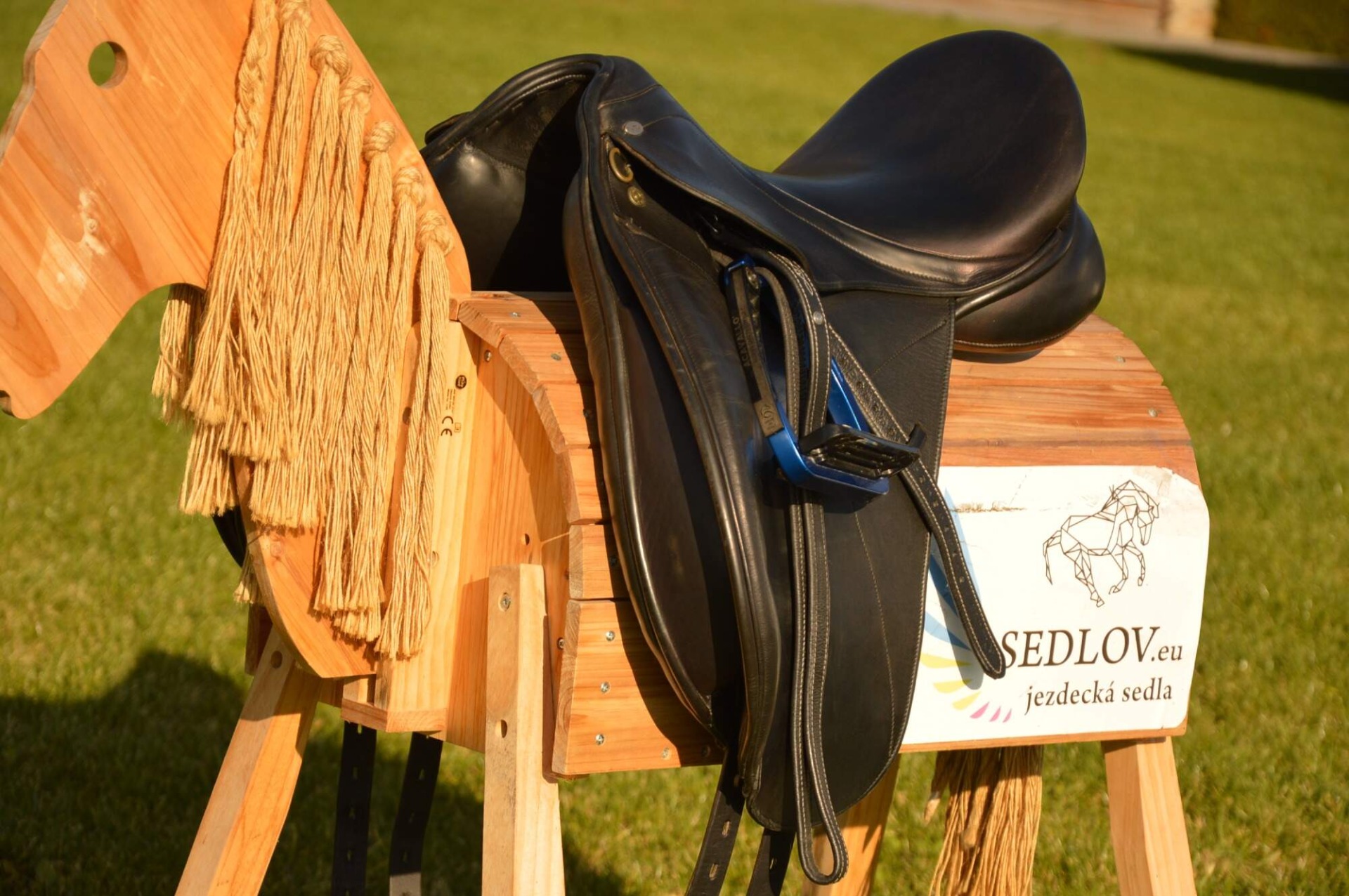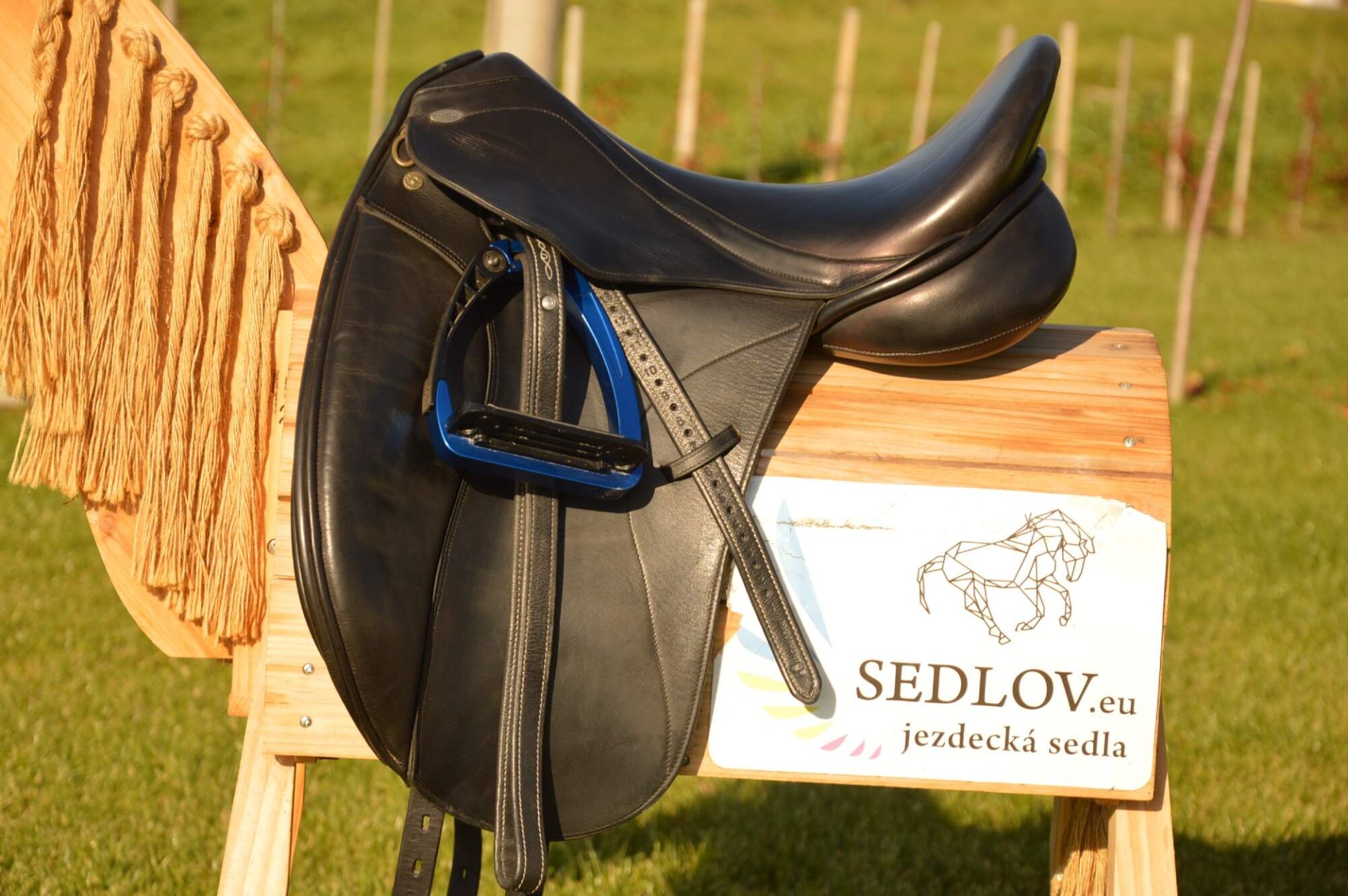 Drezurní sedlo KenTaur Medea II, posedlí 17" a komora 2 (14 cm). Jedná se o drezurní sedlo s hlubokým posedlím, kostrou s podélnými výztuhami z pérové oceli, polootevřenou přední komorou, vyššími kolenními opěrkami a vlněným sedlovým polštářem. Vyrobené z třísločiněné kůže. Sedýlko je pohodlné, měkké, výborně drží a podporuje sed jezdce. Vhodné jak na tréninky, tak závody. Sedlo je ve výborném stavu, má jen klasické známky použití.