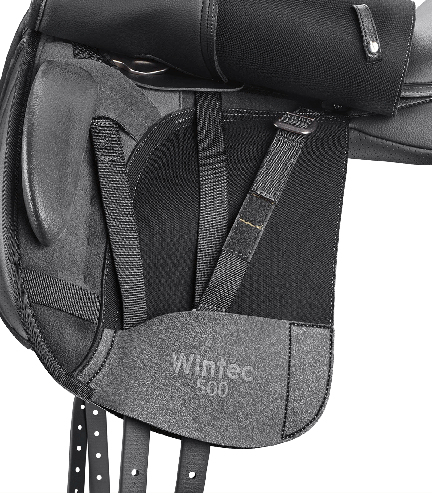 Drezurní sedlo Wintec 500 Hart. Sedlo má středně hluboké posedlí s
