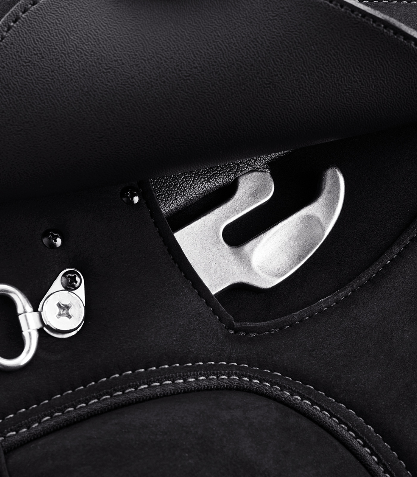 Materiál Equisuede podobný semiši, ze kterého je sedlo vyrobeno podtrhne "přilepení se" v sedle.