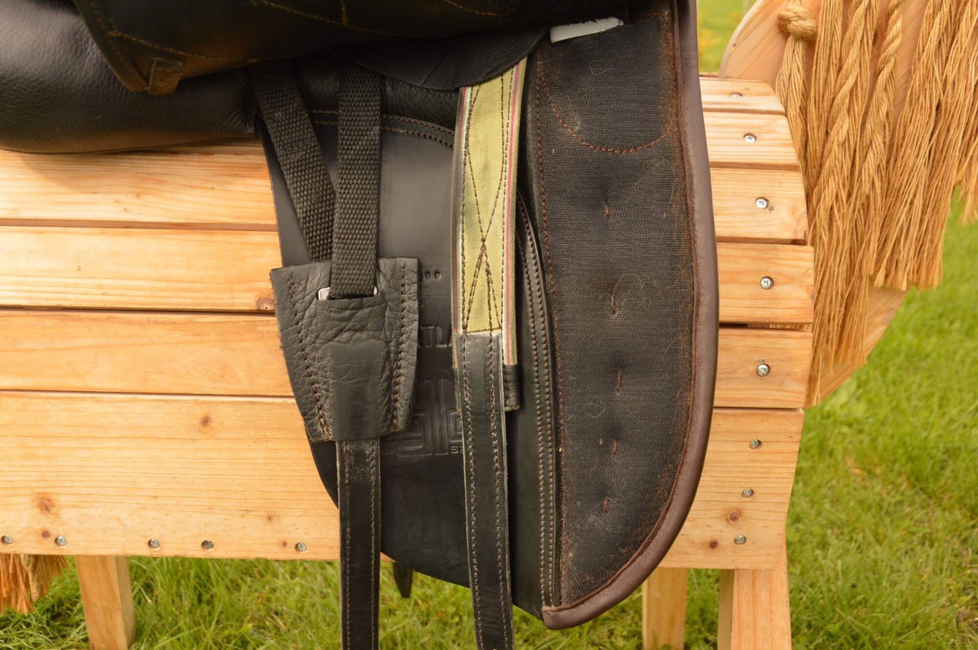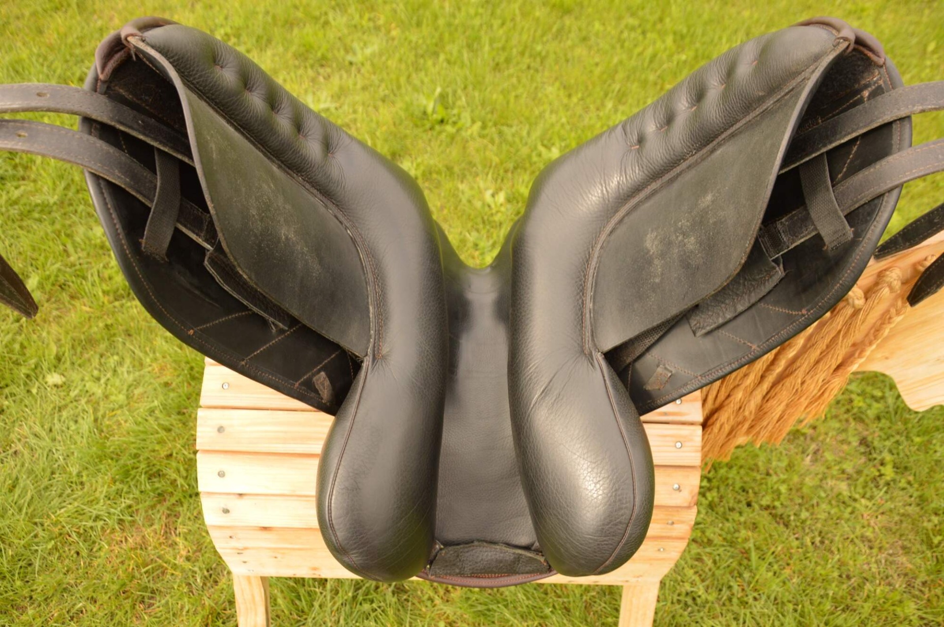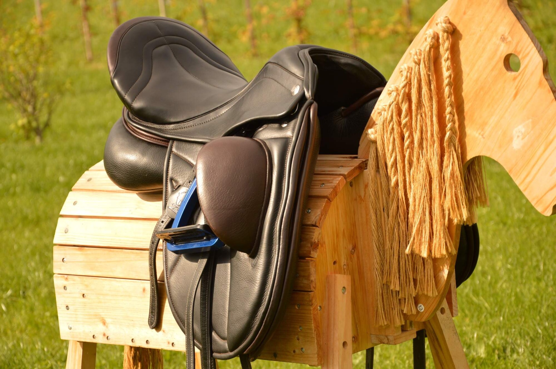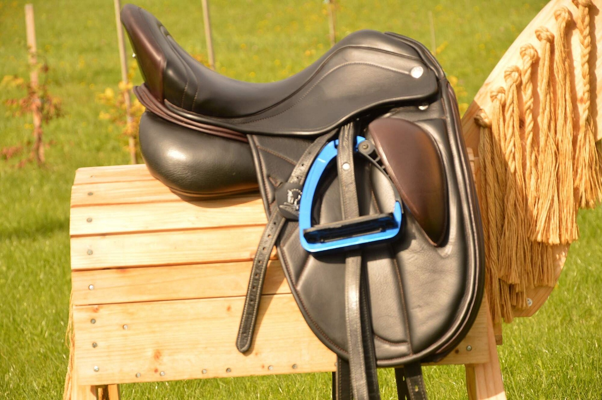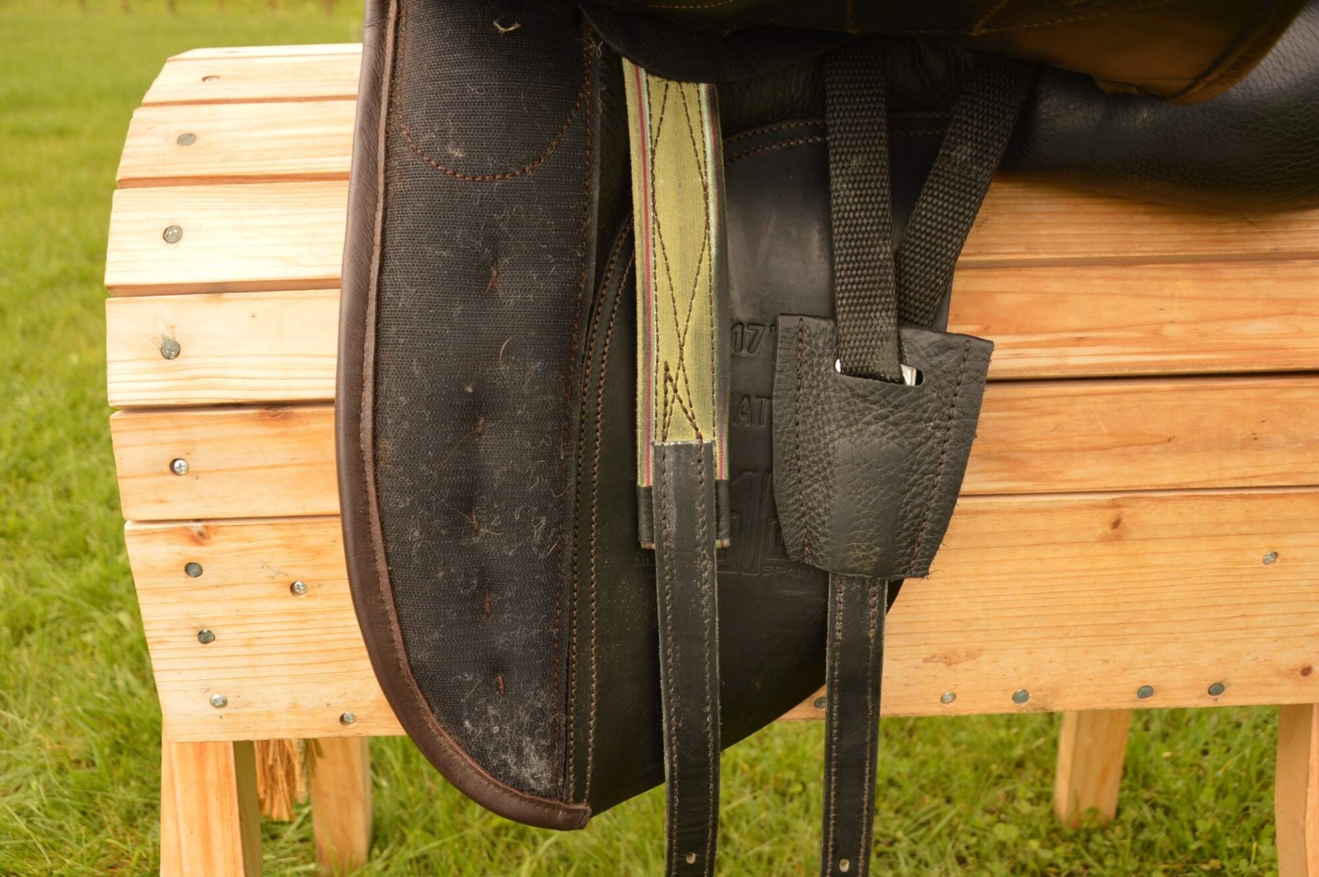 Inovativní drezurní sedlo Zaldi DRIM ATLANTA s CHANGE systémem (výměnné výztuhy). Komora širší 3 (16,5 cm), posedlí 17", krátká bočnice. Nová anatomická kostra DUAL DENSITY s různou hustotou pěny pro koně a pro jezdce. Anatomicky tvarovaná kostra z polypropylenu, která ve svých různých částech poskytuje různou pevnost, ohebnost a míru pohlcování energie při dosednutí. Má schopnost se zcela přizpůsobit hřbetu koně a rozkládá váhu jezdce. Vrchní strana kostry je designově optimalizována (tloušťka 0,5 cm) pro pohodlí jezdce, je elastická, tlumí nárazy a umožňuje volný pohyb koně. Třmenový zámek lze lehce polohovat do 5ti poloh. Krátké sedlové polštáře skládající se z 1 cm vrstvy "paměťové pěny" s vlněnou výplní odolnou proti vlhkosti, tvorbě žmolků nebo nerovnostem. Polštáře lze nastavit dle suchého zipu přesně pro daného koně. Kolenní opěrka s TM systémem je polohovatelná a tedy ji lze nastavit pro každého jezdce zvlášť. Sedlo je v TOP stavu, bez poškození.
