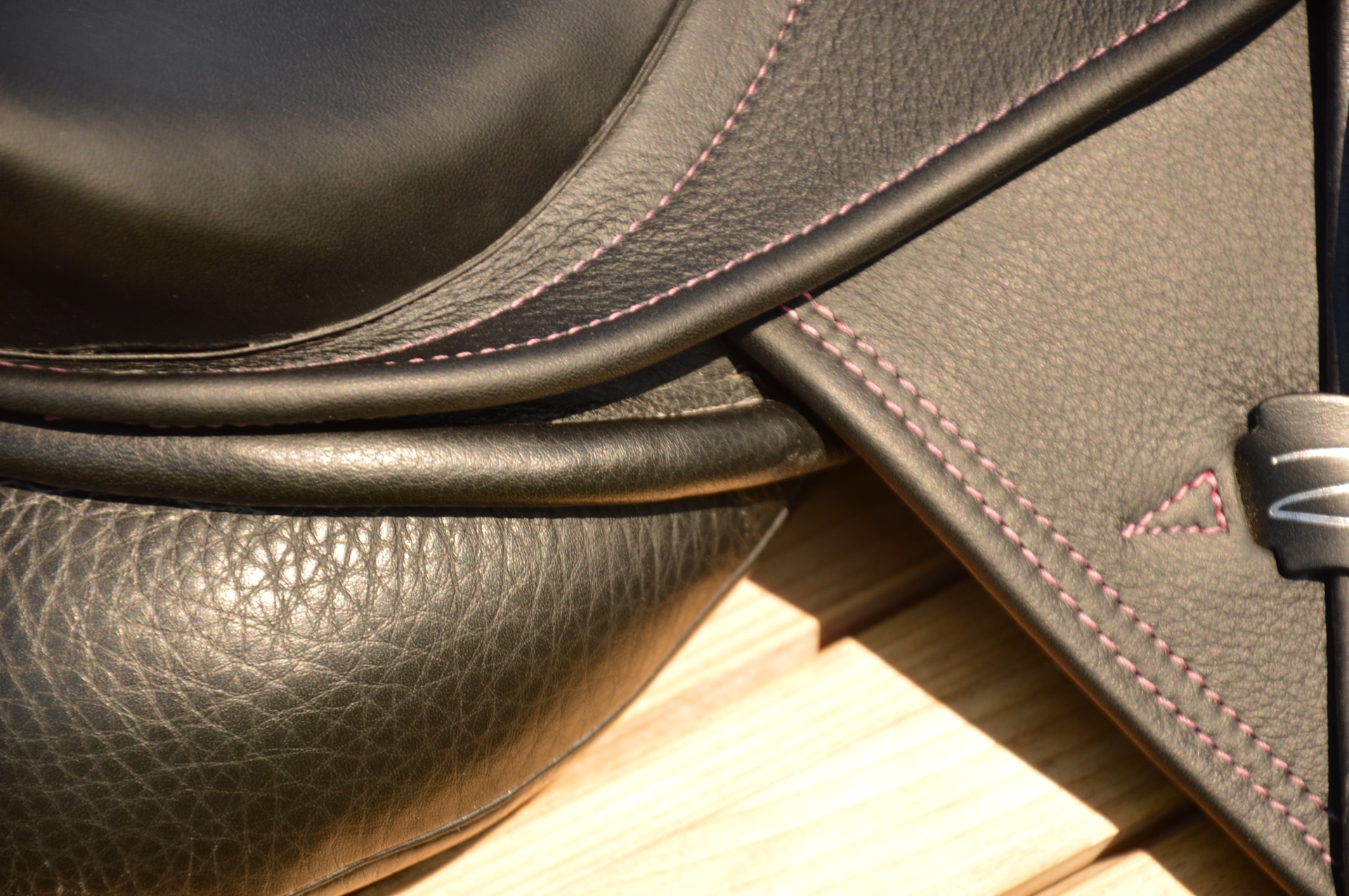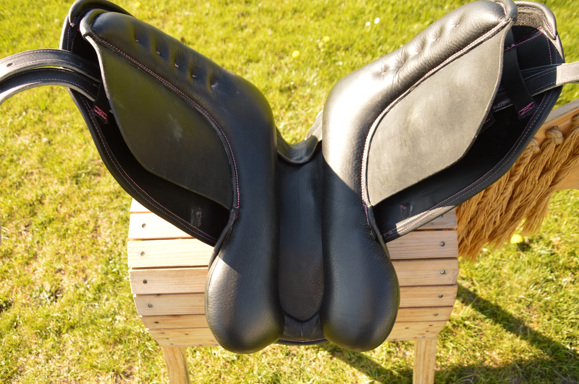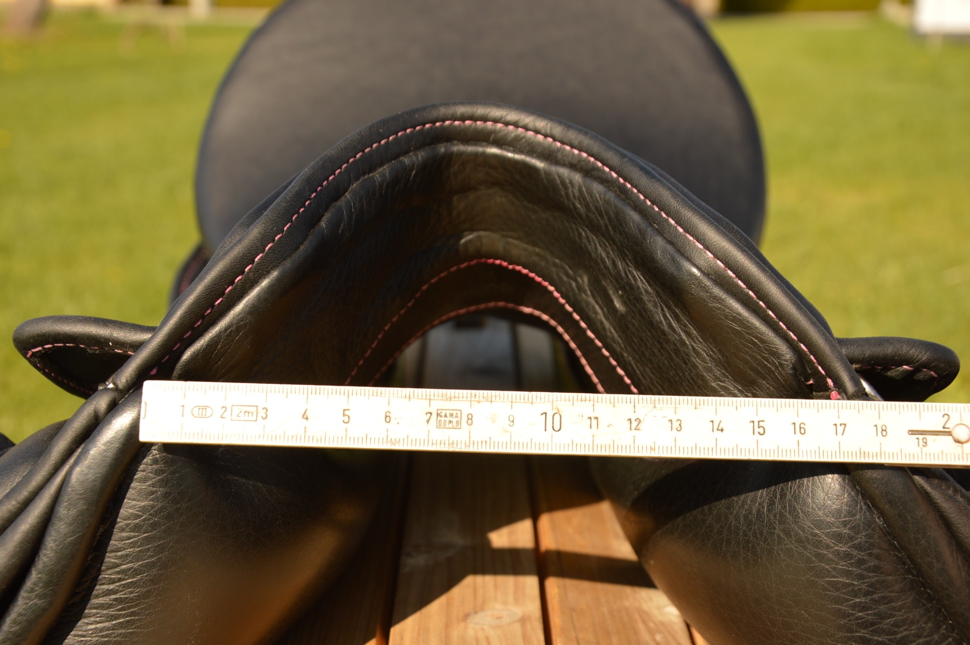 Zánovní inovativní drezurní sedlo Zaldi DRIM CHANGE - nádherně prošívané růžovou nití. Komora měnitelná (výměnné výztuhy), aktuálně 3-4 (17 cm), posedlí 16.5", avšak působí spíše jako 17", velmi krátká bočnice. Kolenní opěrka s TM systémem je polohovatelná a tedy ji lze nastavit pro každého jezdce zvlášť. Lze nastavit její výšku i sklon. Nová anatomická kostra DUAL DENSITY s různou hustotou pěny pro koně a pro jezdce. Anatomicky tvarovaná kostra z polypropylenu, která ve svých různých částech poskytuje různou pevnost, ohebnost a míru pohlcování energie při dosednutí. Má schopnost se zcela přizpůsobit hřbetu koně a rozkládá váhu jezdce. Vrchní strana kostry je designově optimalizována (tloušťka 0,5 cm) pro pohodlí jezdce, je elastická, tlumí nárazy a umožňuje volný pohyb koně. Krátké sedlové polštáře skládající se z 1 cm vrstvy "paměťové pěny" s vlněnou výplní odolnou proti vlhkosti, tvorbě žmolků nebo nerovnostem. Sedlo je v TOP stavu, jako nové, bez poškození.