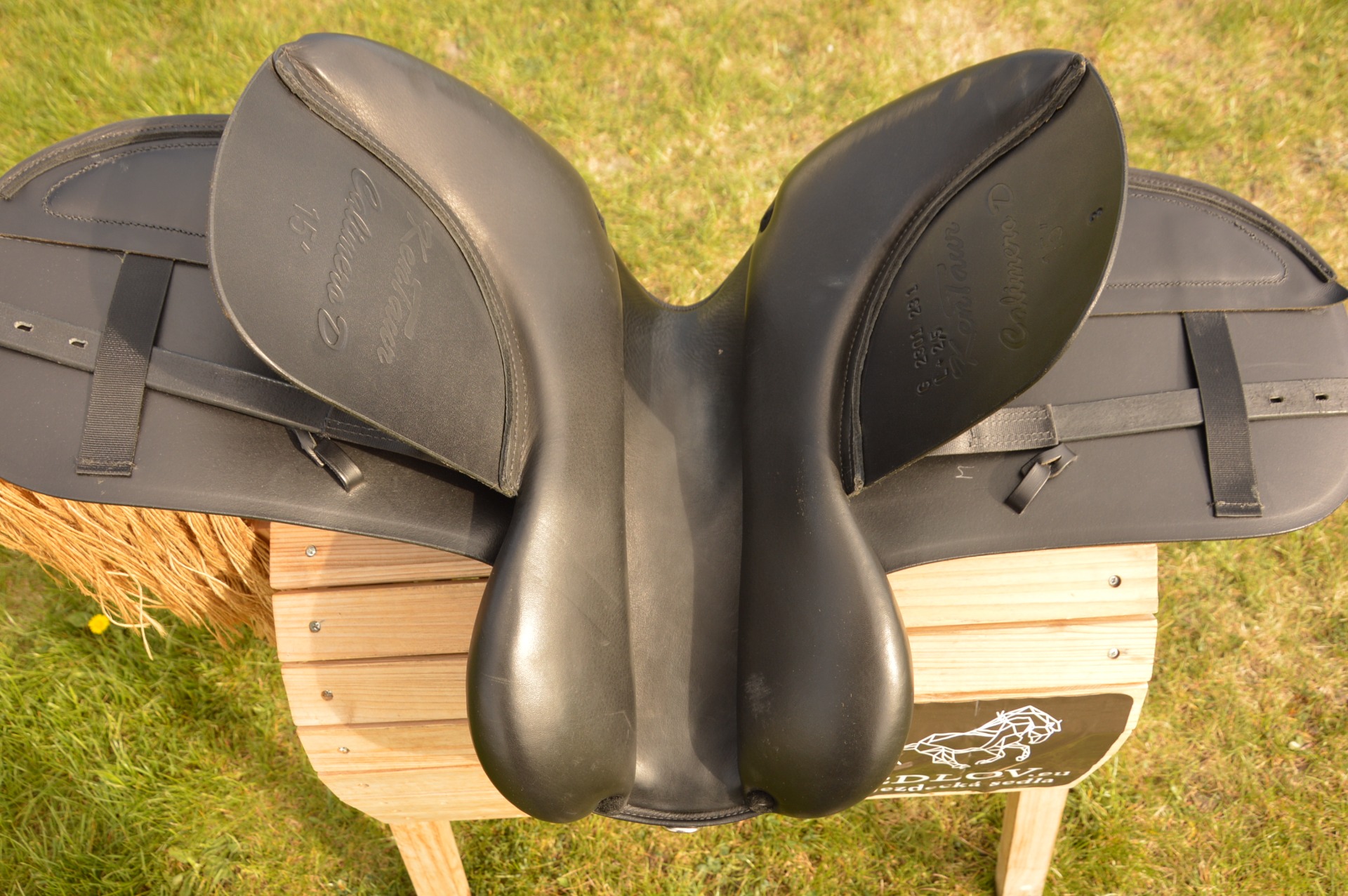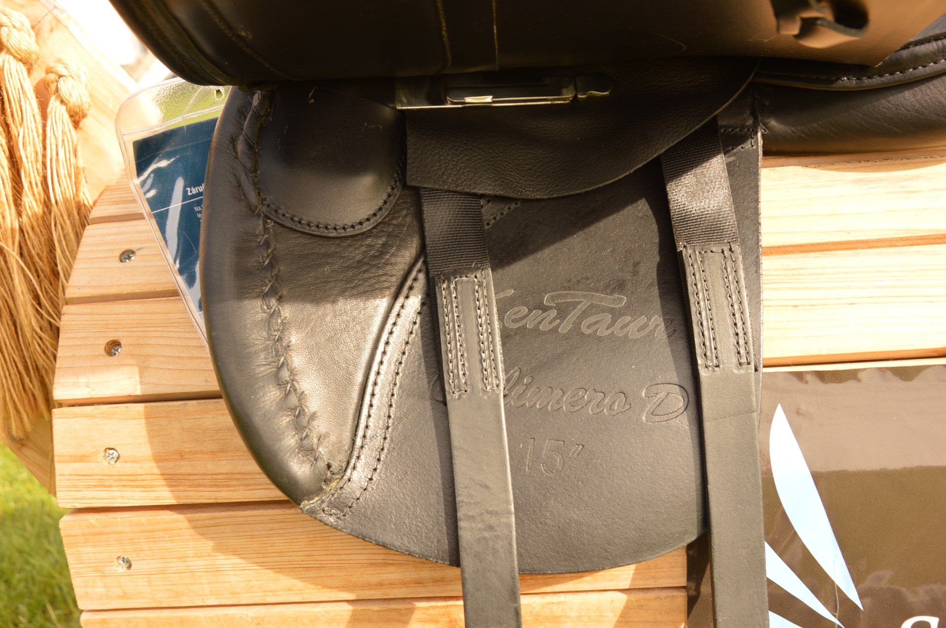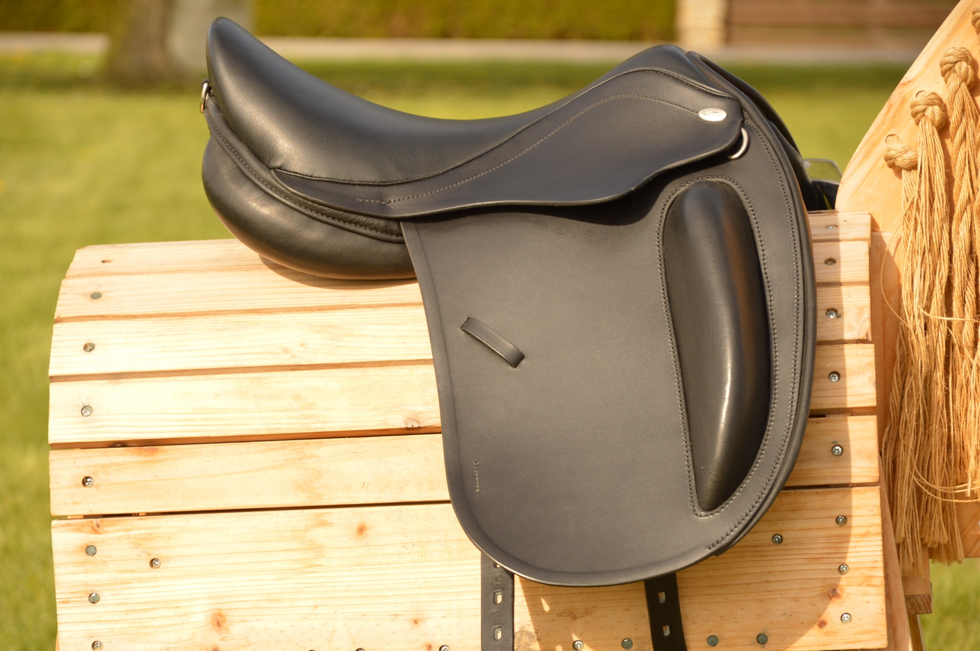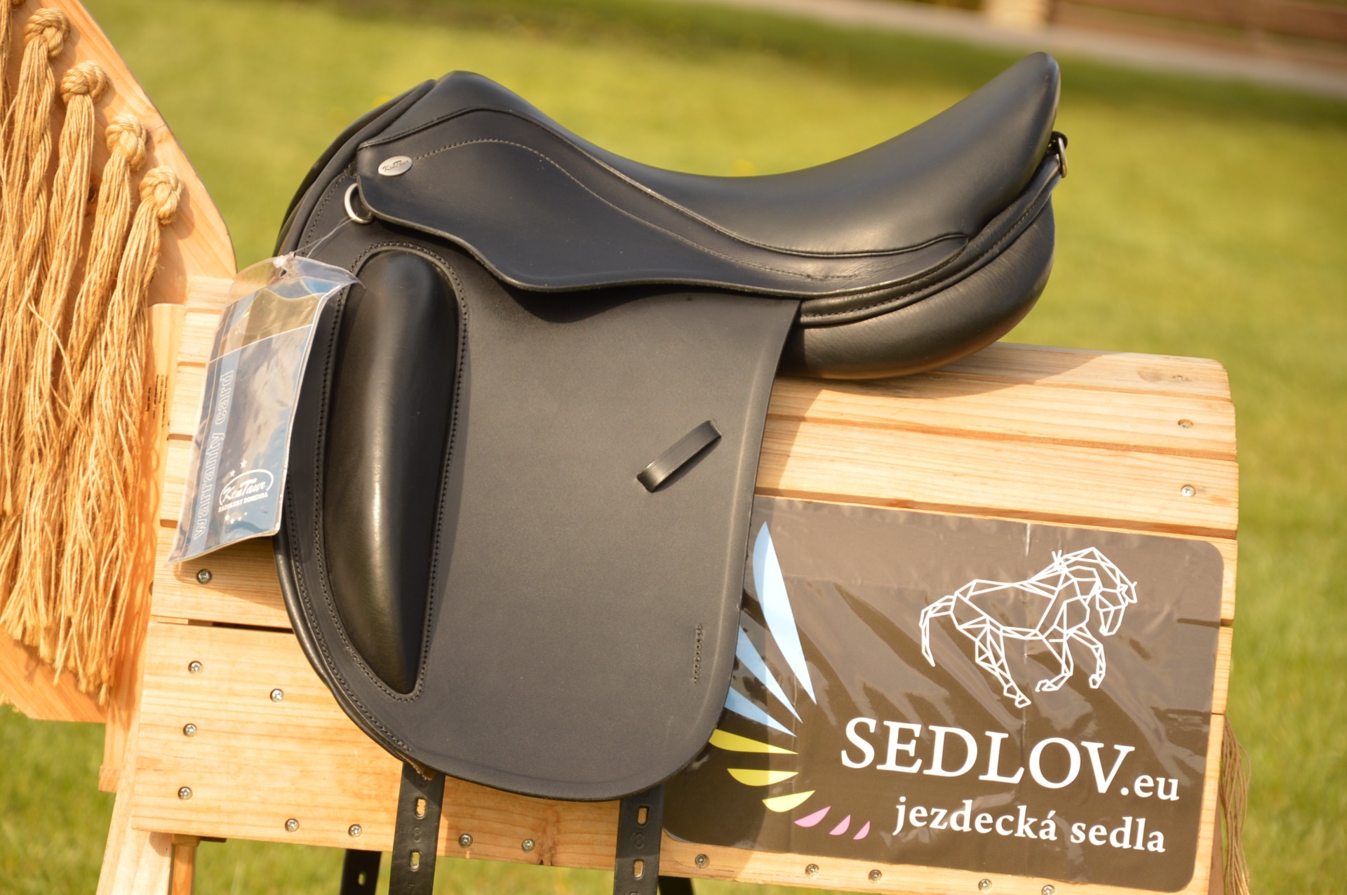 Juniorské drezurní sedlo KenTaur Calimero DL s posedlím 15" a komorou 3, kostra GRP, délka bočnice delěí o 2,5 cm oproti srandardu. Je postavené na plochém kontaktním latexovém polštáři, který skvěle sedí na kulatých hřbetech. Vyrobeno z protiskluzové kůže. Sedlo nabízí středně hluboké posedlí, a vnější opěrky pro stabilní sed a jistotu mladého jezdce. Sedlo je vhodné i pro závodní ježdění. Dlouhé zápinky zajišťují vynikající kontakt pod nohou, což ocení každý mladý jezdec. Sedlo je zcela nové.