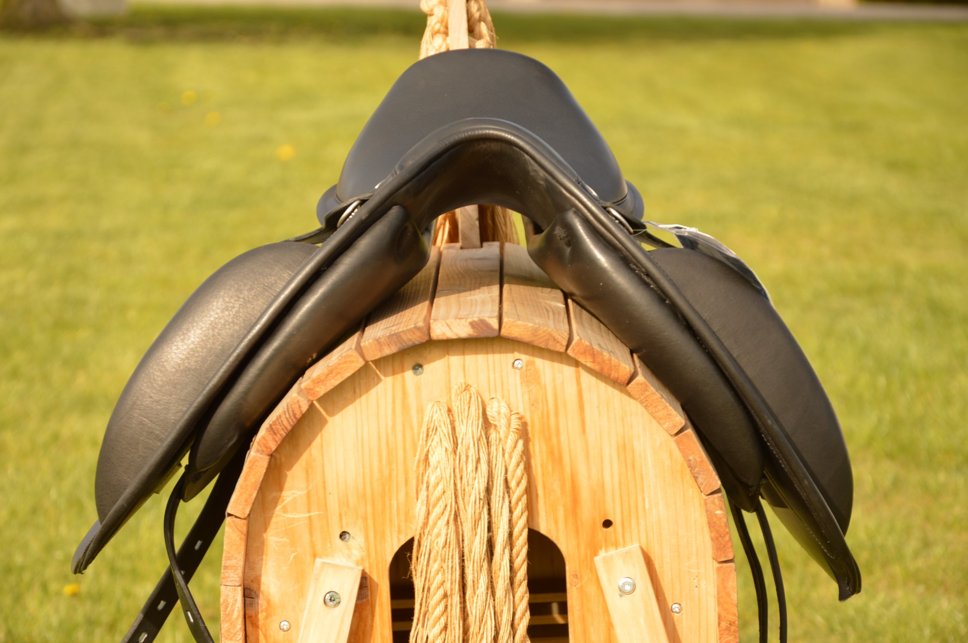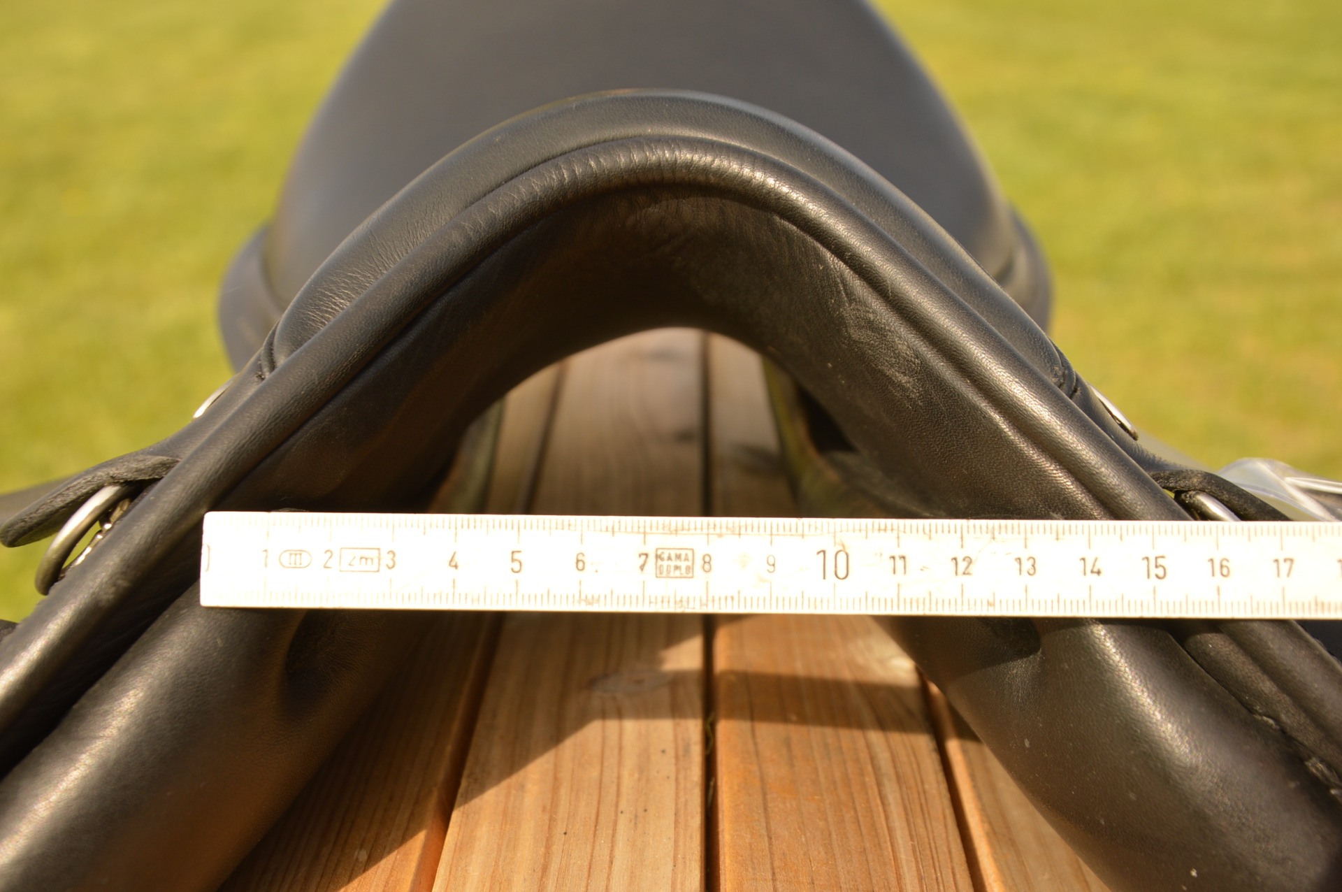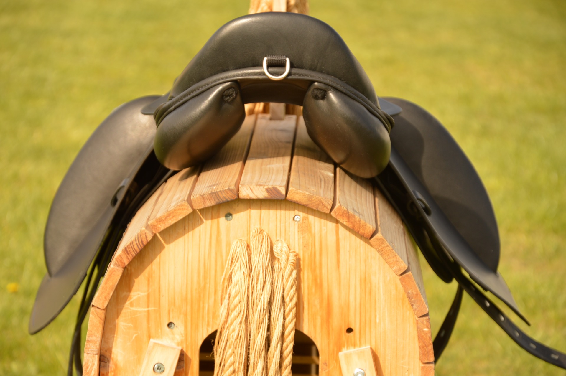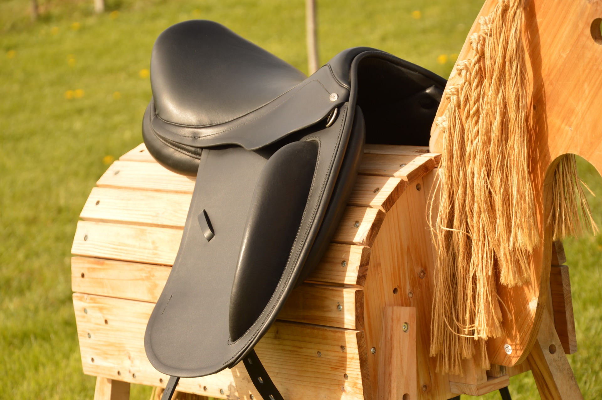 Juniorské drezurní sedlo KenTaur Calimero DL s posedlím 15" a komorou 3, kostra GRP, délka bočnice delěí o 2,5 cm oproti srandardu. Je postavené na plochém kontaktním latexovém polštáři, který skvěle sedí na kulatých hřbetech. Vyrobeno z protiskluzové kůže. Sedlo nabízí středně hluboké posedlí, a vnější opěrky pro stabilní sed a jistotu mladého jezdce. Sedlo je vhodné i pro závodní ježdění. Dlouhé zápinky zajišťují vynikající kontakt pod nohou, což ocení každý mladý jezdec. Sedlo je zcela nové.