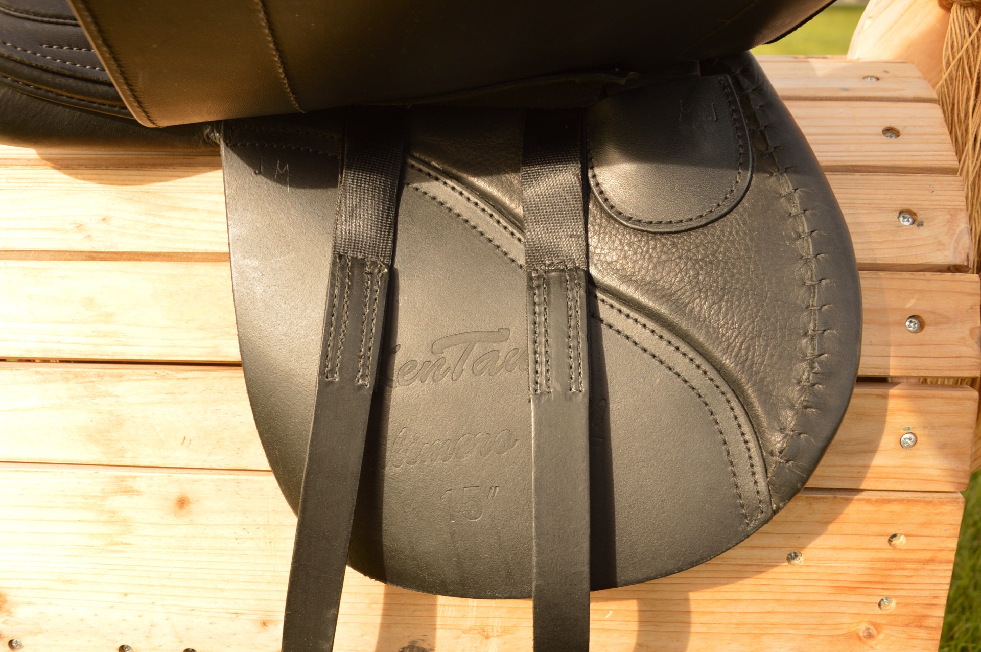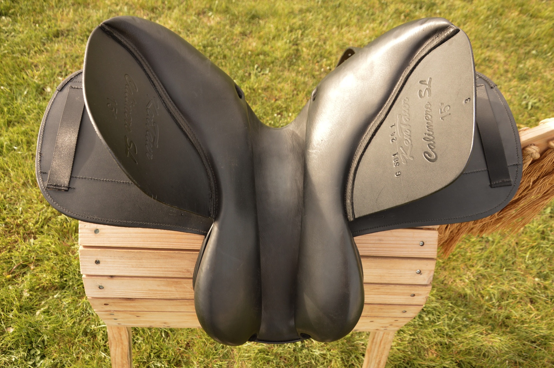 Juniorské sedlo KenTaur Calimero SL s posedlím 15" a komorou 3, kostra GRP. Ušito v krásném hnědém designu s bílým prošíváním a colorlie za zadní rozsochou. Sedlo je ideální volbou pro všestranné a skokové ježdění na ponících i velkých koních. Je postavené na plochém kontaktním latexovém polštáři, který skvěle sedí na kulatých hřbetech. Vyrobeno z protiskluzové kůže. Sedlo nabízí středně hluboké posedlí, a vnější opěrky pro stabilní sed a jistotu mladého jezdce. Zadní opěrky lze nastvit do různé polohy díky suchému zipu. Sedlo je vhodné i pro závodní ježdění. Dlouhé zápinky zajišťují vynikající kontakt pod nohou, což ocení každý mladý jezdec. Sedlo je zcela nové.