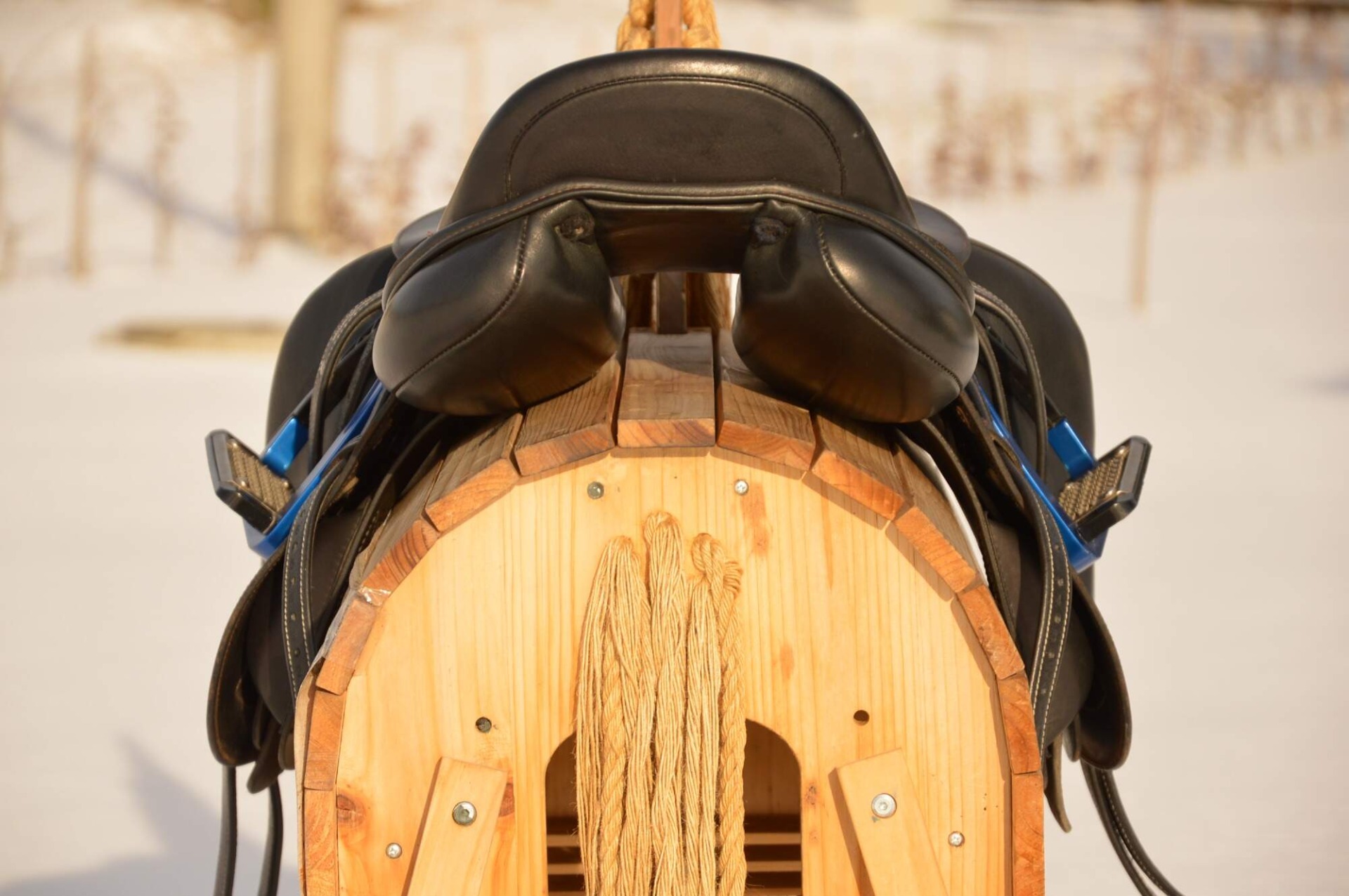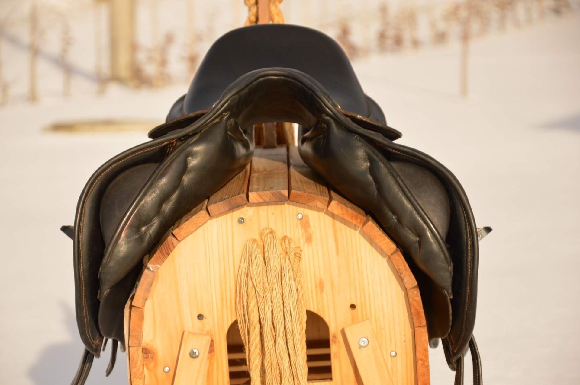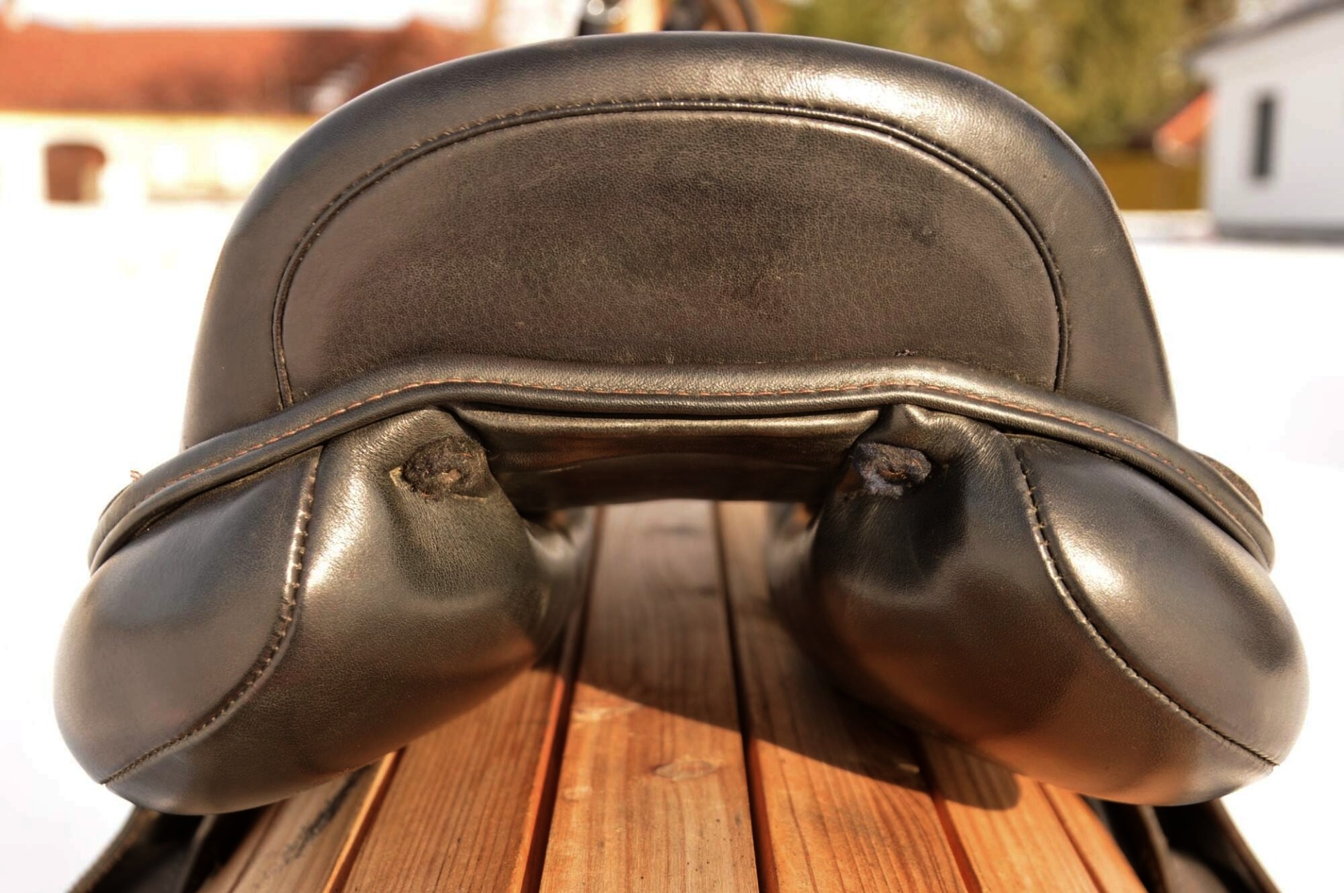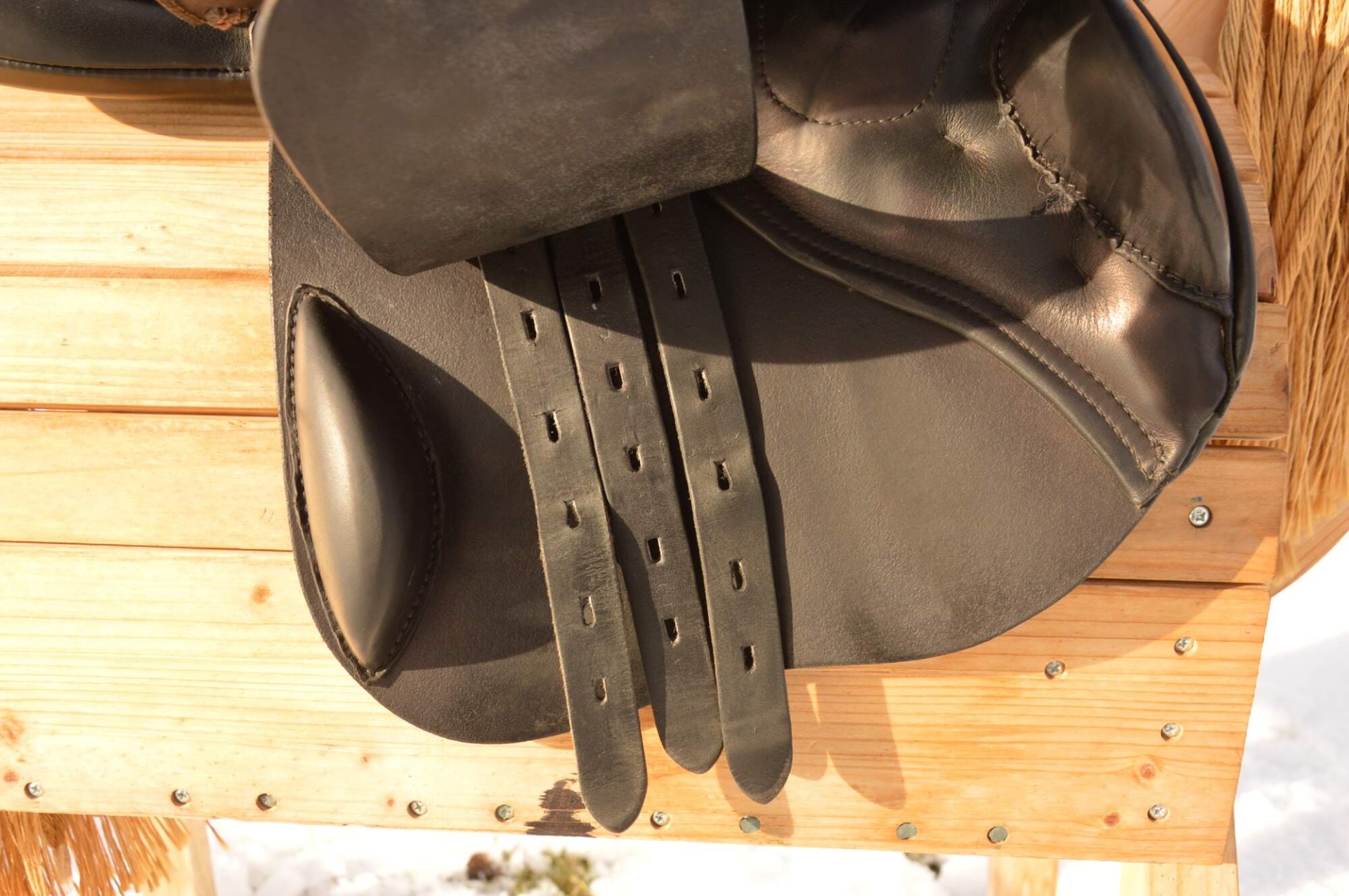 Zánovní skokové sedlo KenTaur Naxos s hnědým přišíváním a dvojitou kůží. Posedlí 17,", komora psaná 3 (14 cm), úprava pro volný pohyb lopatky. Sedlo je postaveno na středně hluboké kostře a komfortním vlněném polštáři s dobrou možností individuálního dotvarování na koně. Sedlový polštář končí hned pod přední opěrkou, což zajišťuje výborný kontakt stehna i kolena jezdce s koněm. Střední opěrky s anatomicky předtvarovanou bočnicí. Posedlí a opěrky jsou vyrobeny z neklouzavé teletiny. Sedlo je v super stavu s minimálními známkami používání. Rok výroby 2018.