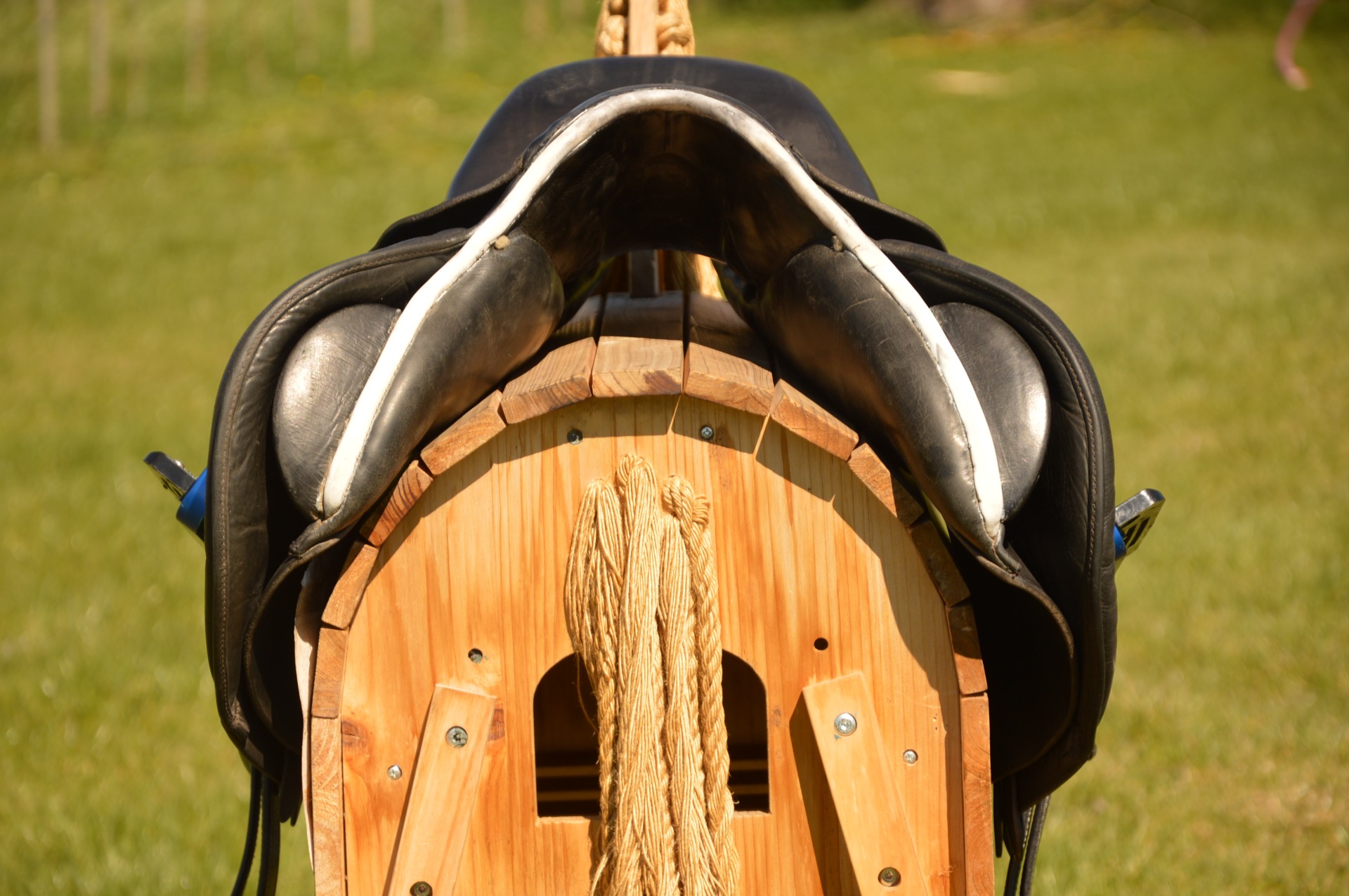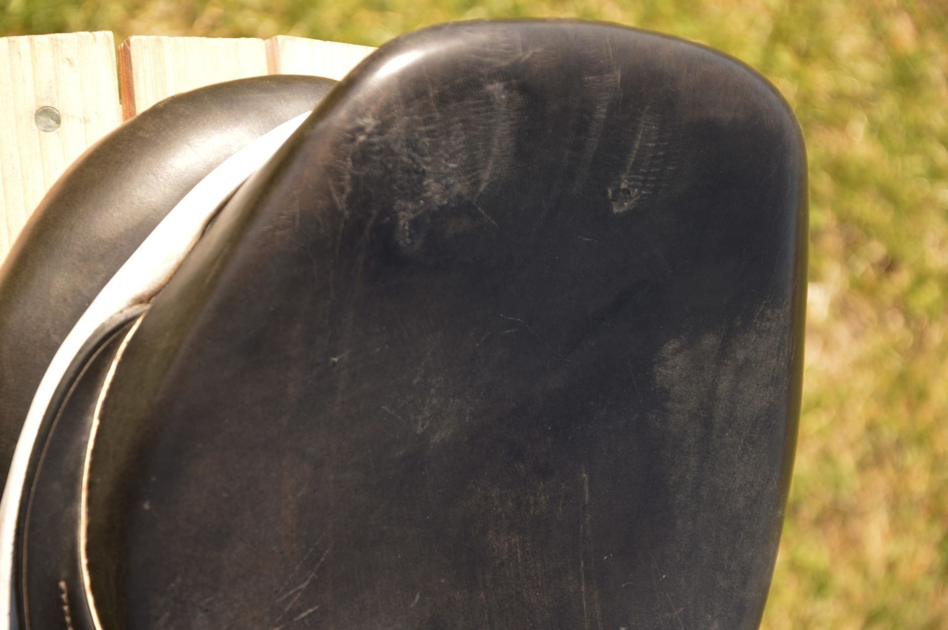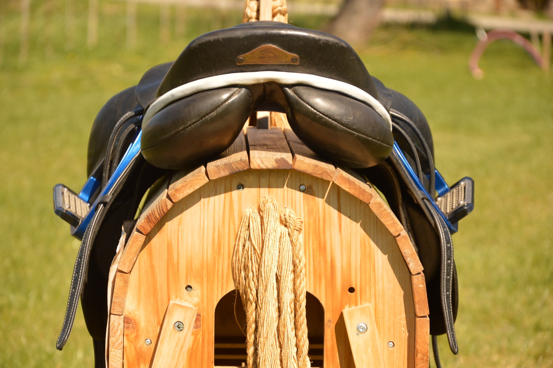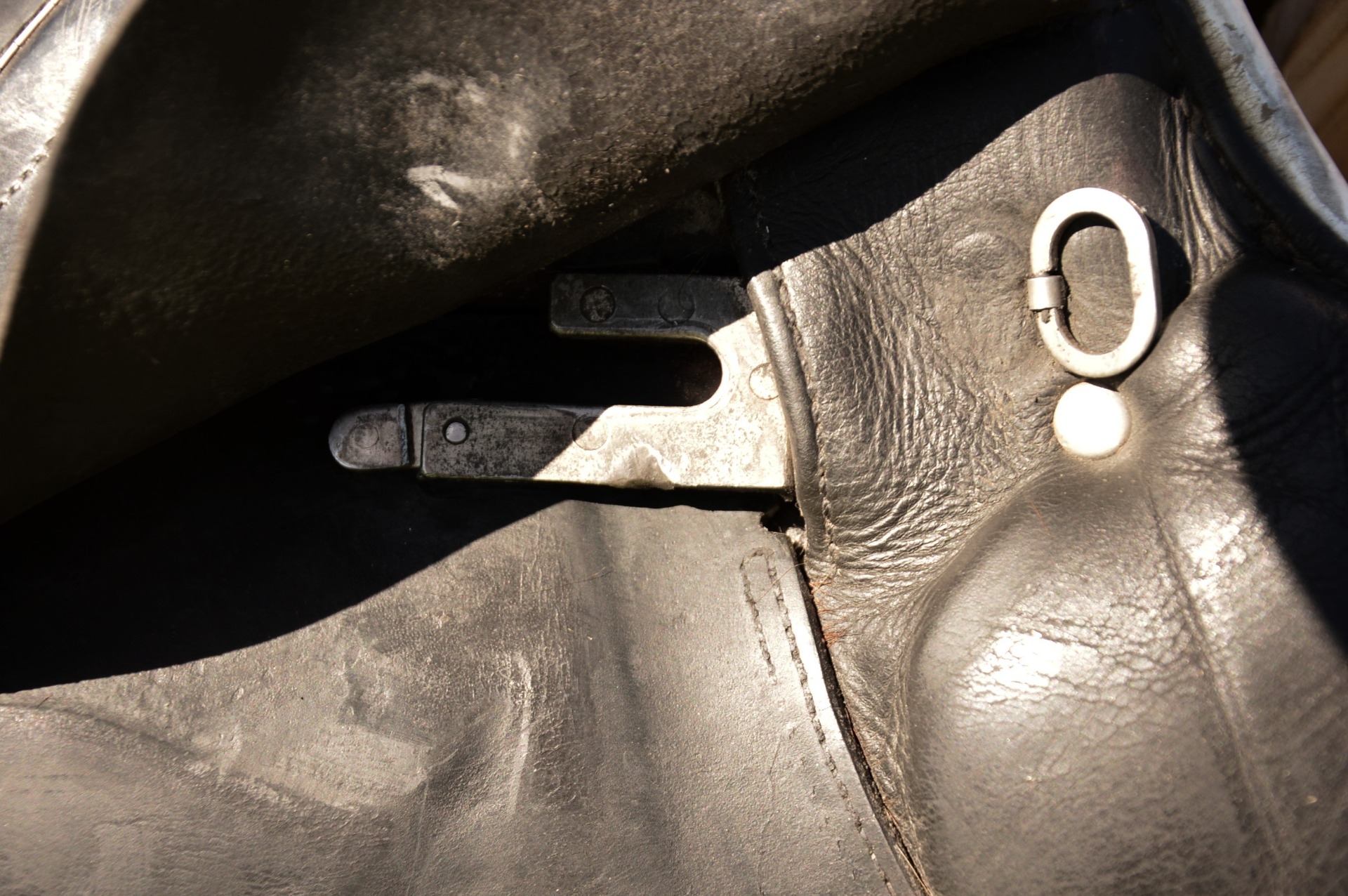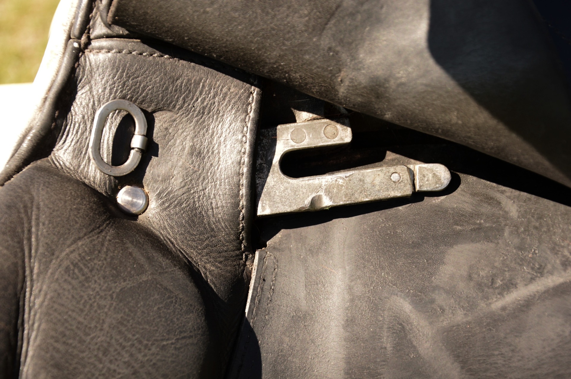 Kvalitní skokové sedlo Jan Hauzr, model George Springy v atraktivním hnědo černém provedení. Posedlí 17,5", komora širší 3 (16,5 cm), široký páteřní kanál, polootevřená komora. Má vyšší kolenní opěrky, vysoké holenní opěrky na vnější straně bočnice, středně hluboké posedlí. Postaveno na dřevěné kostře s kokovými výztuhami, je měkké, pohodlné. Perfektní jak do přírody tak na skoky. Sedlo je v dobrém stavu, běžné známky použití viz foto.