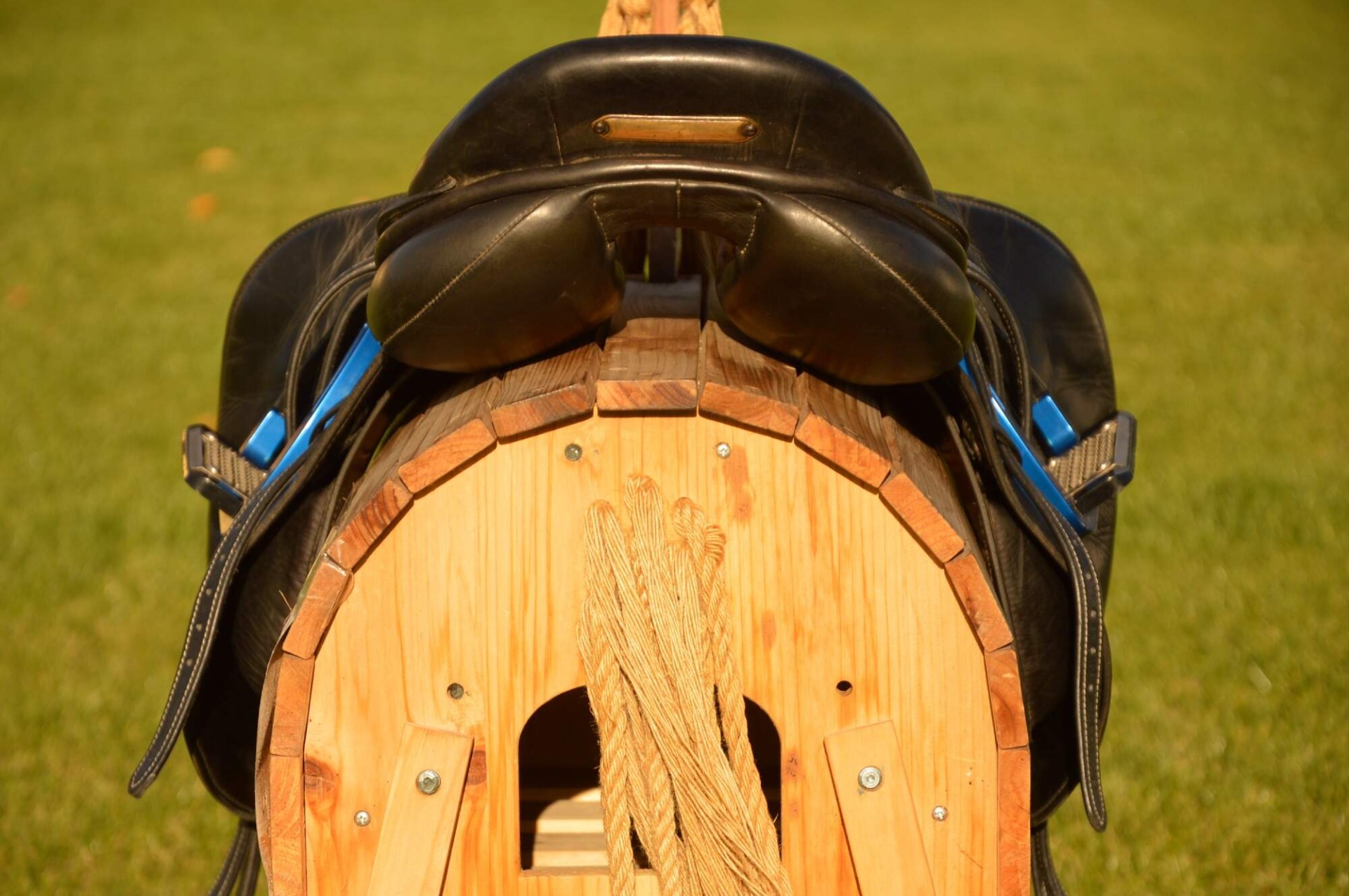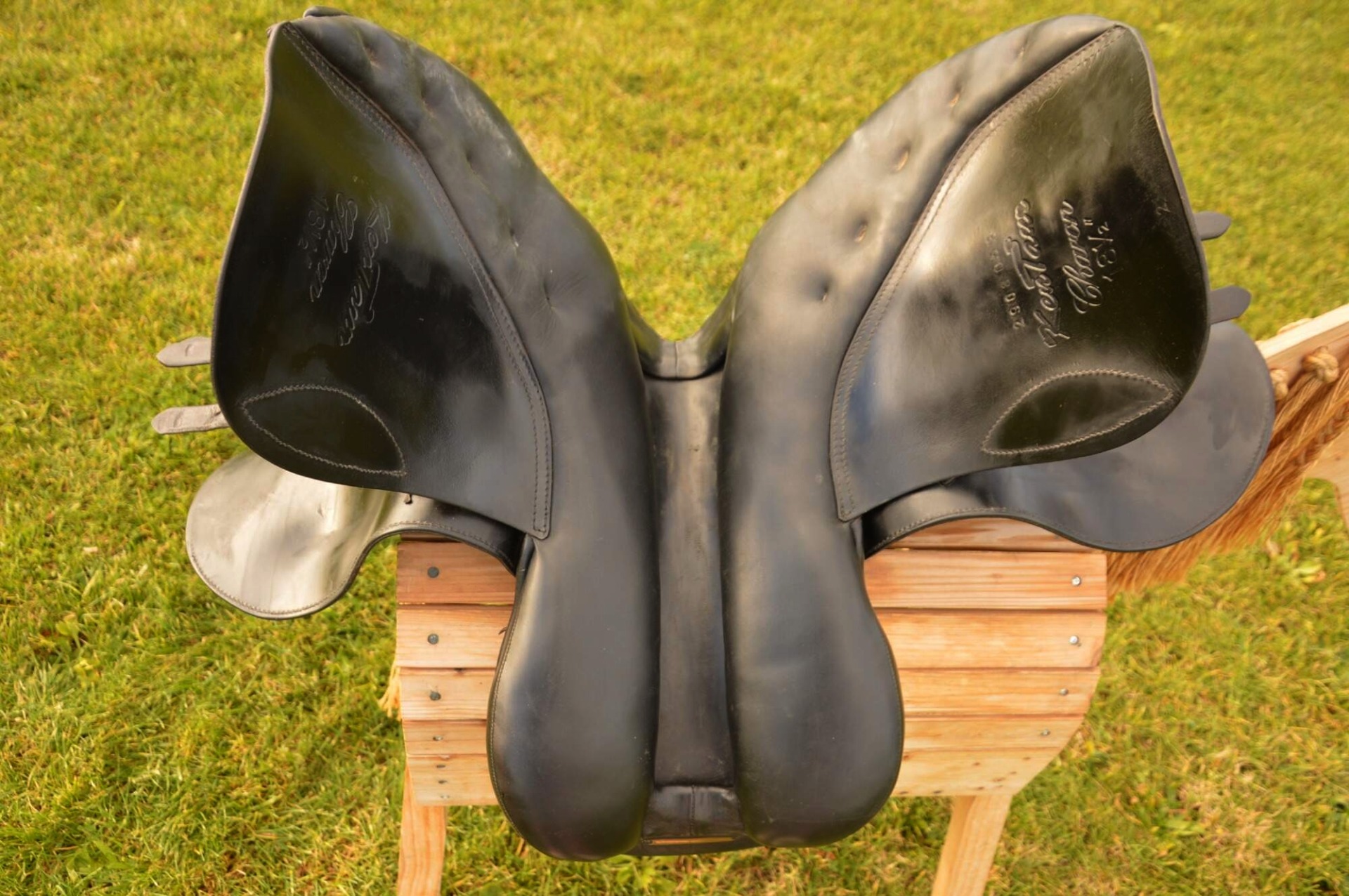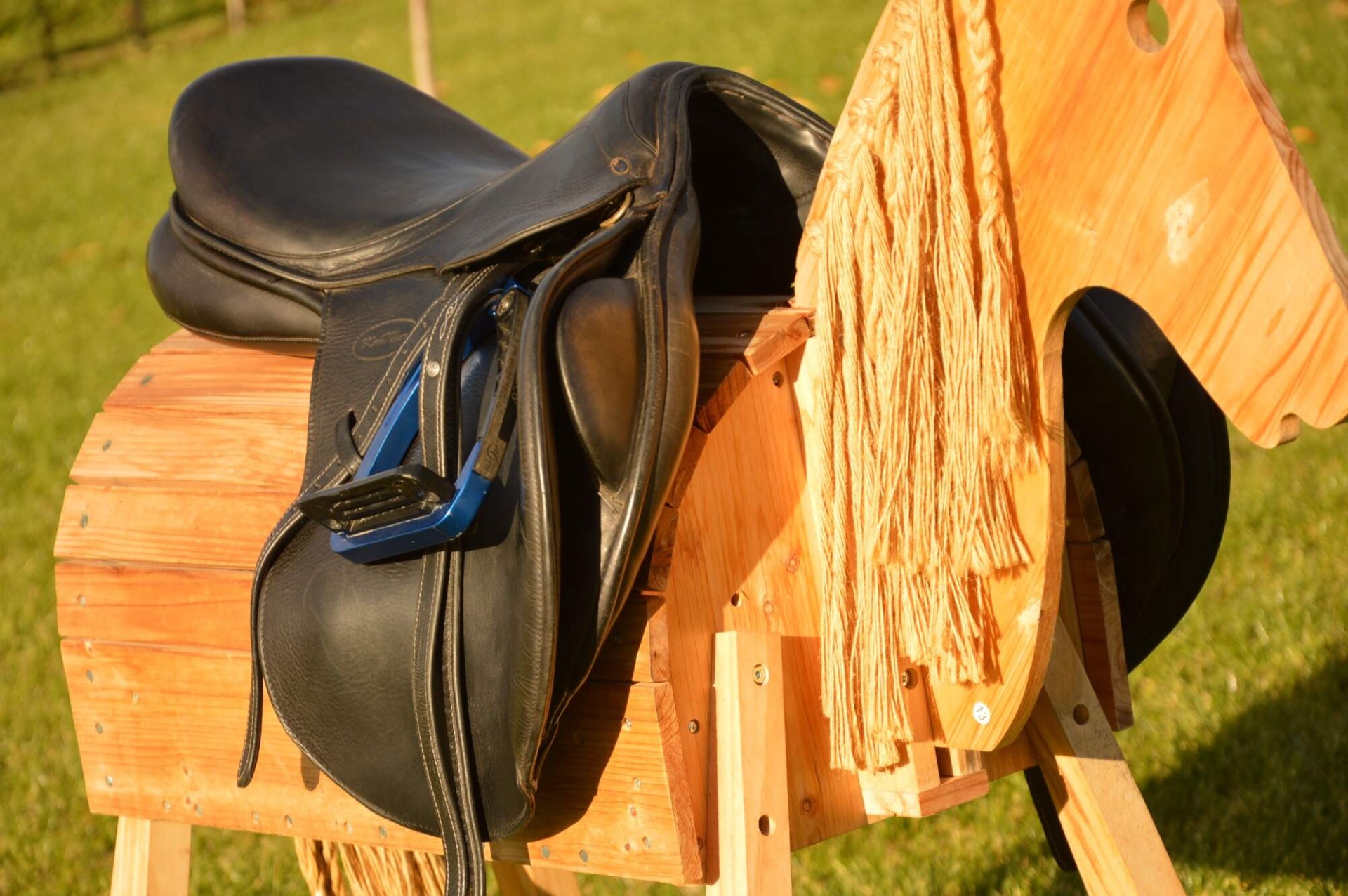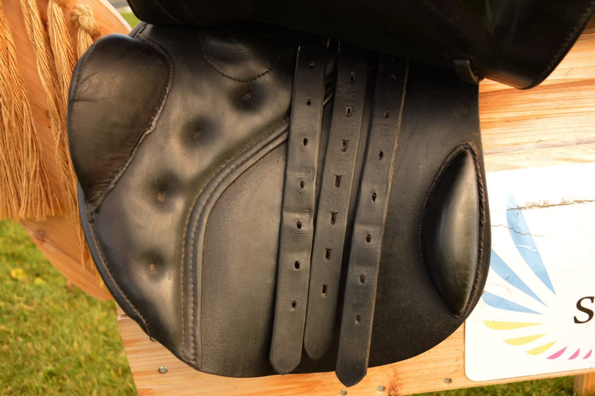 Skokové sedlo KenTaur Charon, posedlí velikosti 18,5" a komora 2 (14 cm). Nižší vlněné polštáře poskytují dobrý kontakt s koněm. Protiskluzová úprava, střední kolenní opěrky výborně podporují sed a dodávají jistotu jezdci nad skokem. Velice měkká a přilnavá kůže. Vhodné do aktivního sportu i pro rekreační jezdce. Velmi dobrý stav, běžné známky použití.