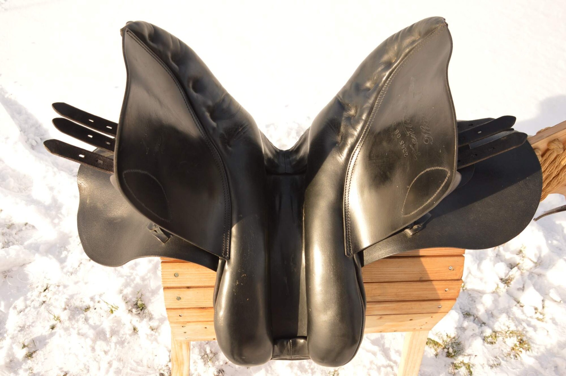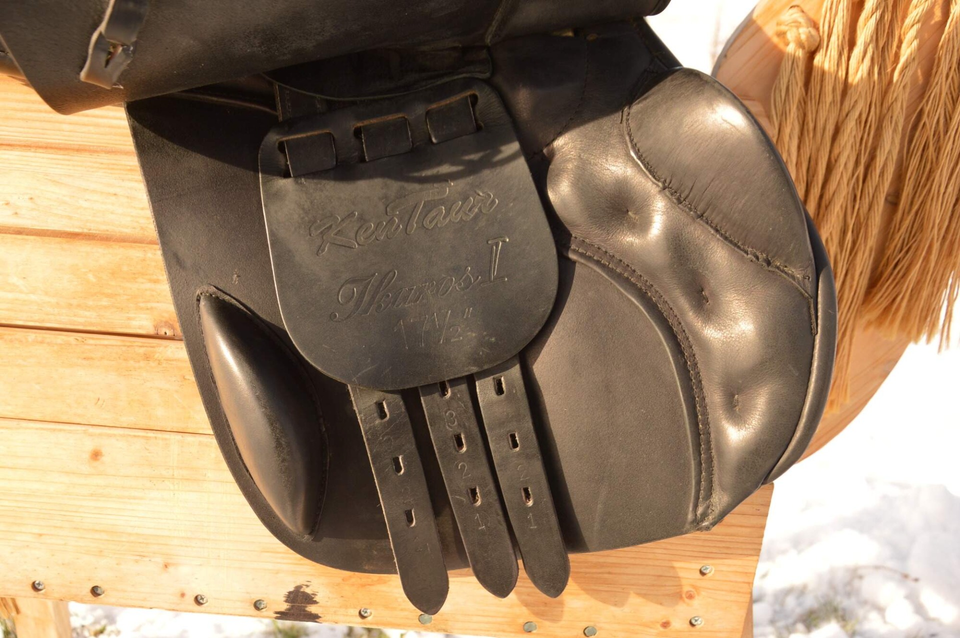 Skokové sedlo KenTaur Ikaros II, posedlí velikosti 17,5" a komora 2 (14 cm). Sedlo se střední kolenní opěrkou, mělčím posedlím, výborně podporující sed a dodávající jistotu jezdci nad skokem. Velice kvalitní a přilnavá kůže. Vhodné do aktivního sportu i pro rekreační jezdce. Velmi dobrý stav, běžné známky použití