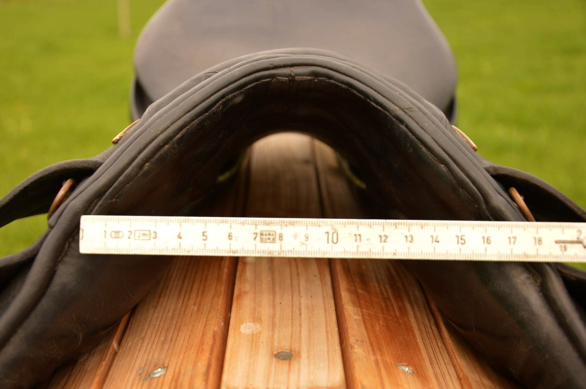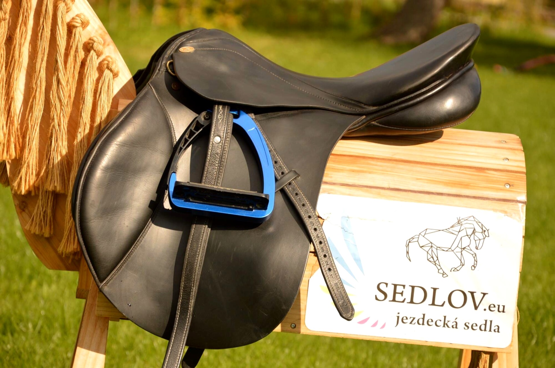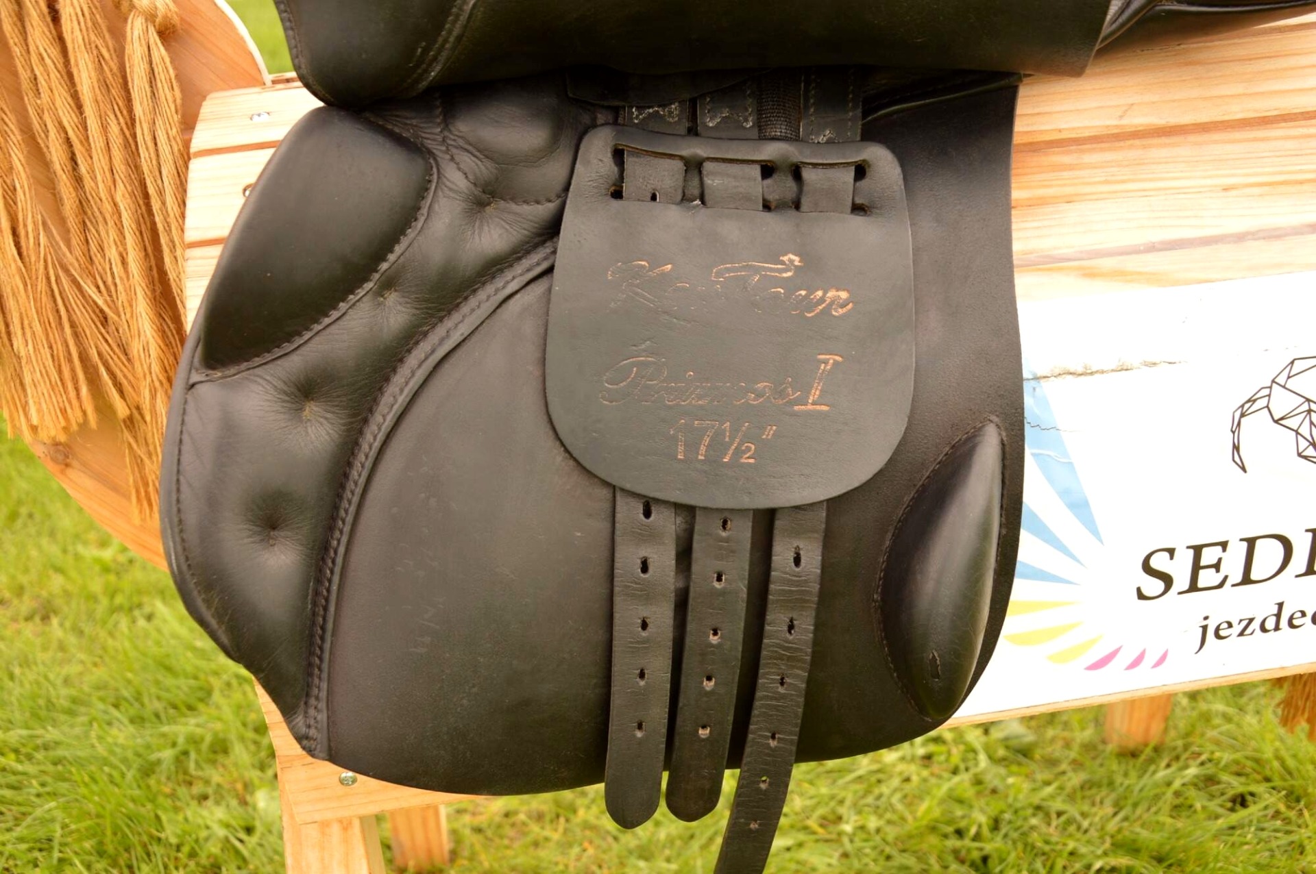 Skokové sedlo KenTaur Priamos, posedlí velikosti 17,5" a komora 3 (16 cm), díky nízkému polštáři ideální na široký hřbet. Sedlo se střední kolenní opěrkou, mělčím posedlím, výborně podporující sed a dodávající jistotu jezdci nad skokem. Velice kvalitní a přilnavá kůže. Vhodné do aktivního sportu i pro rekreační jezdce. Dobrý stav, běžné známky použití.