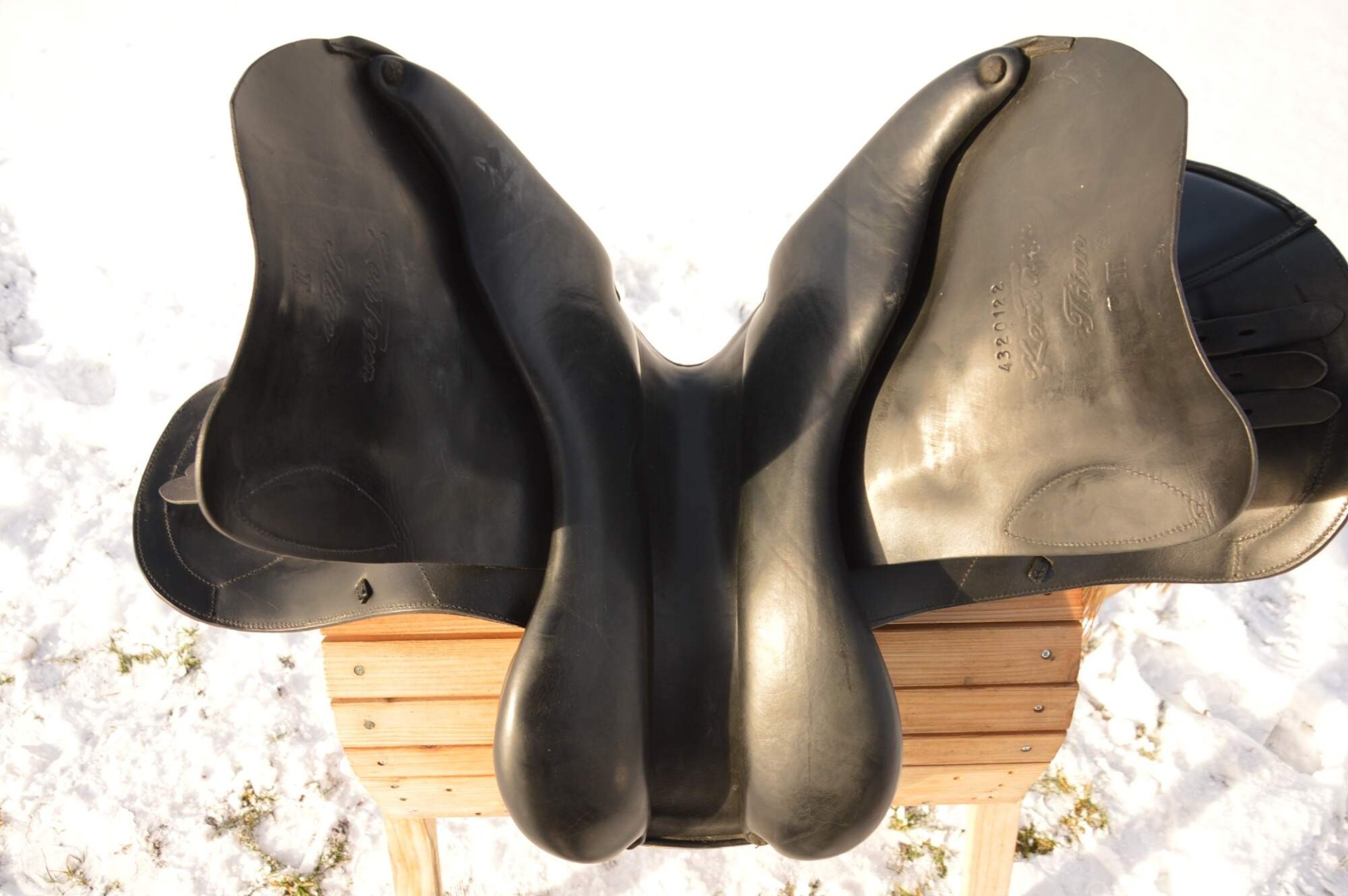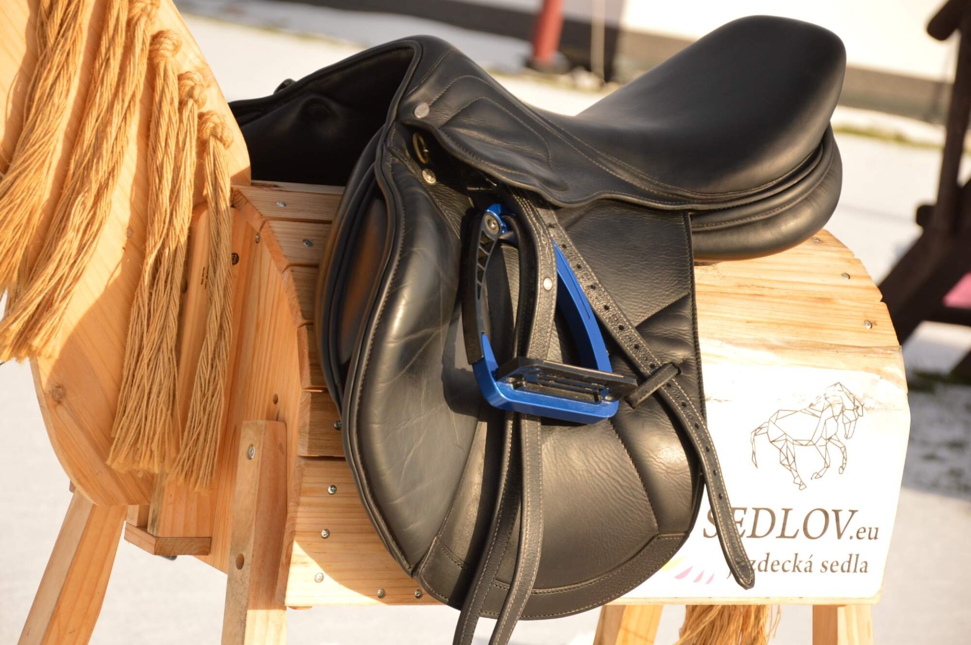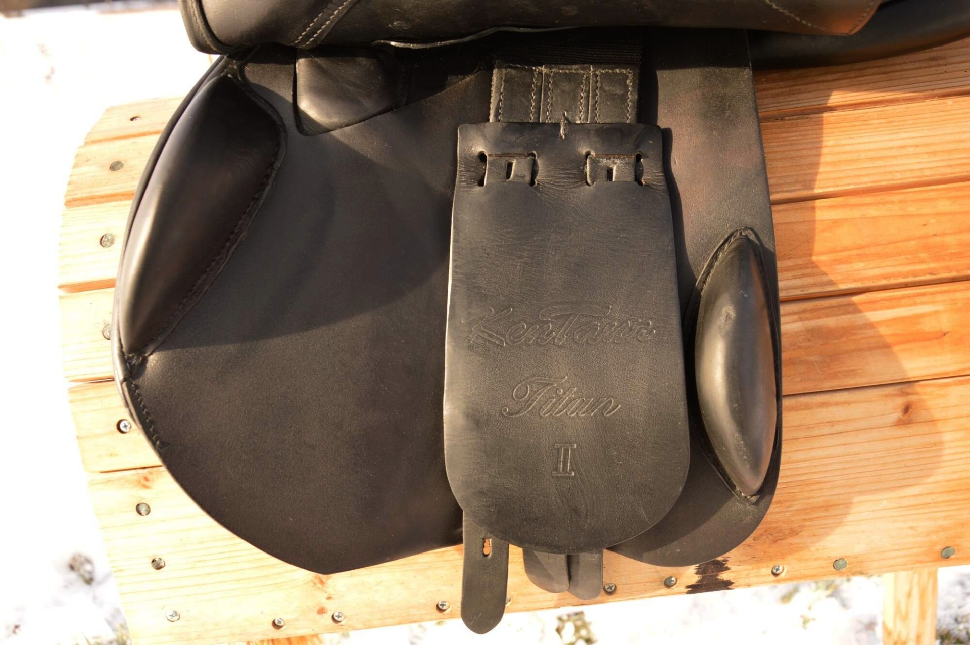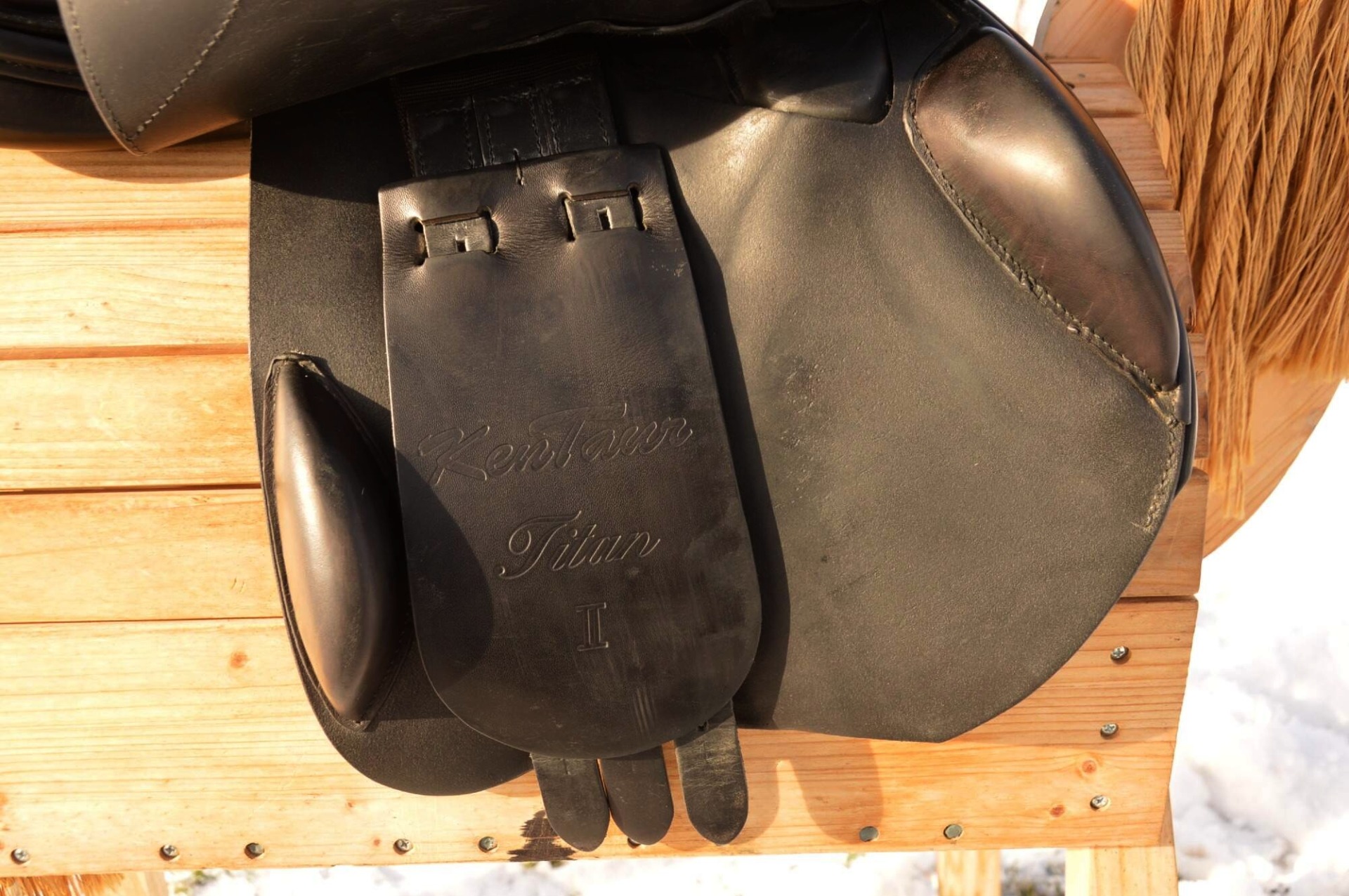 Skokové sedlo KenTaur Titan II, posedlí 17,5", komora 2 (14cm). Kvalitní sedlo splňující nejpřísnější požadavky pro vysoké skákání. Provedení z dvojité protiskluzové teletiny, vlněný polštář. Středně vysoké opěrky a předtvarovaná bočnice výborně fixují nohu jezdce. Vyráběno z měkčené protiskluzové kůže na bočnicích pro dobrou prostupnosti pro pobídky.