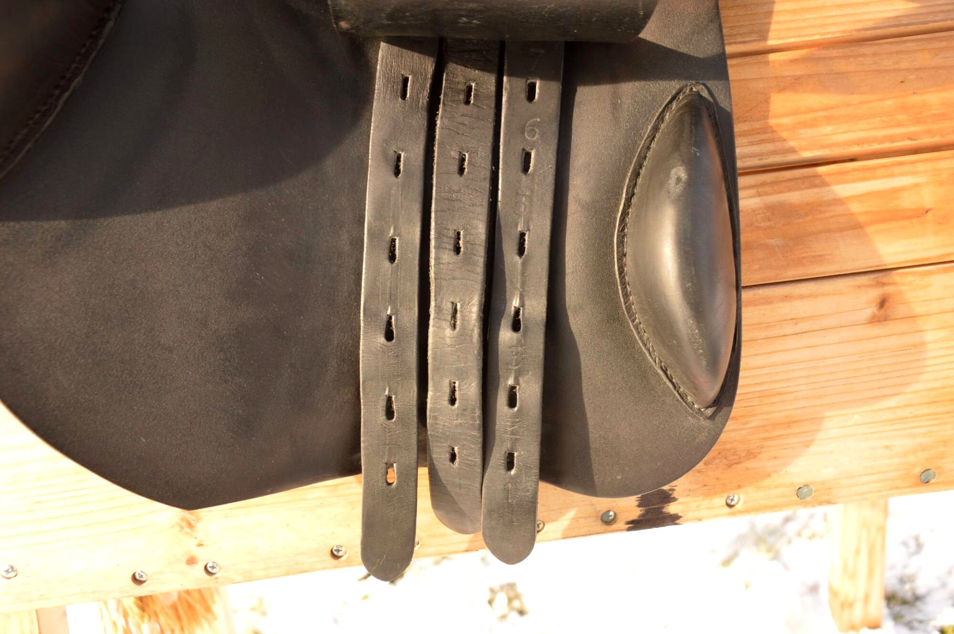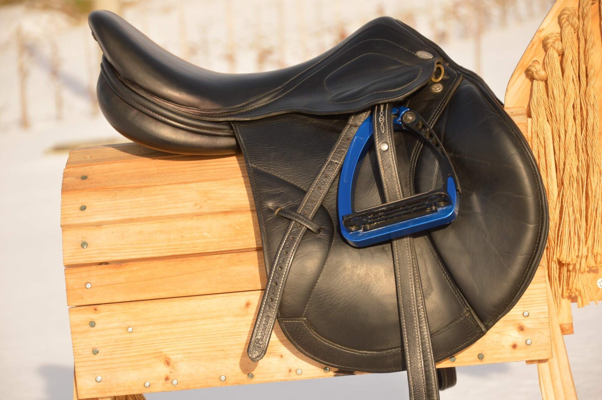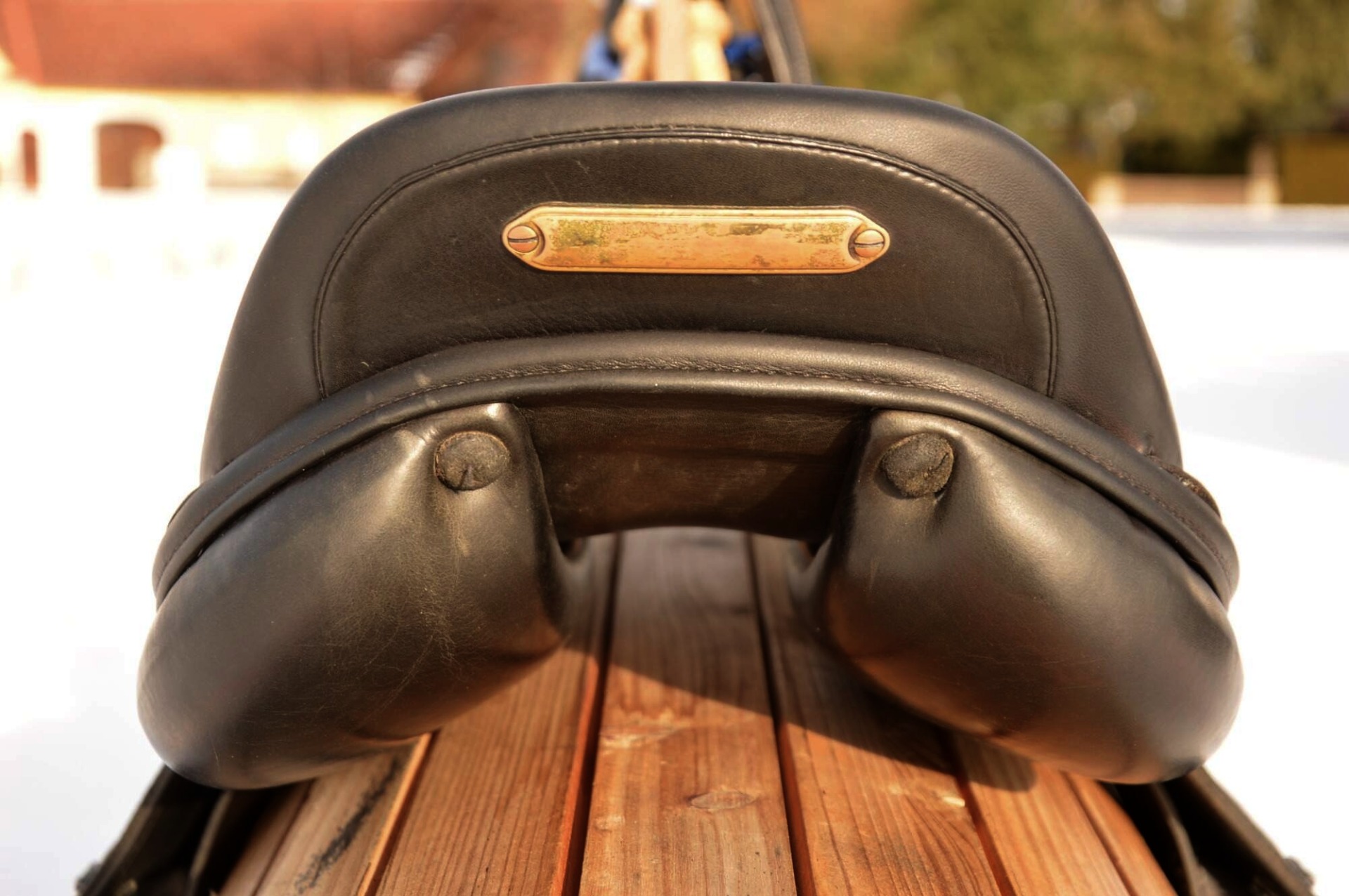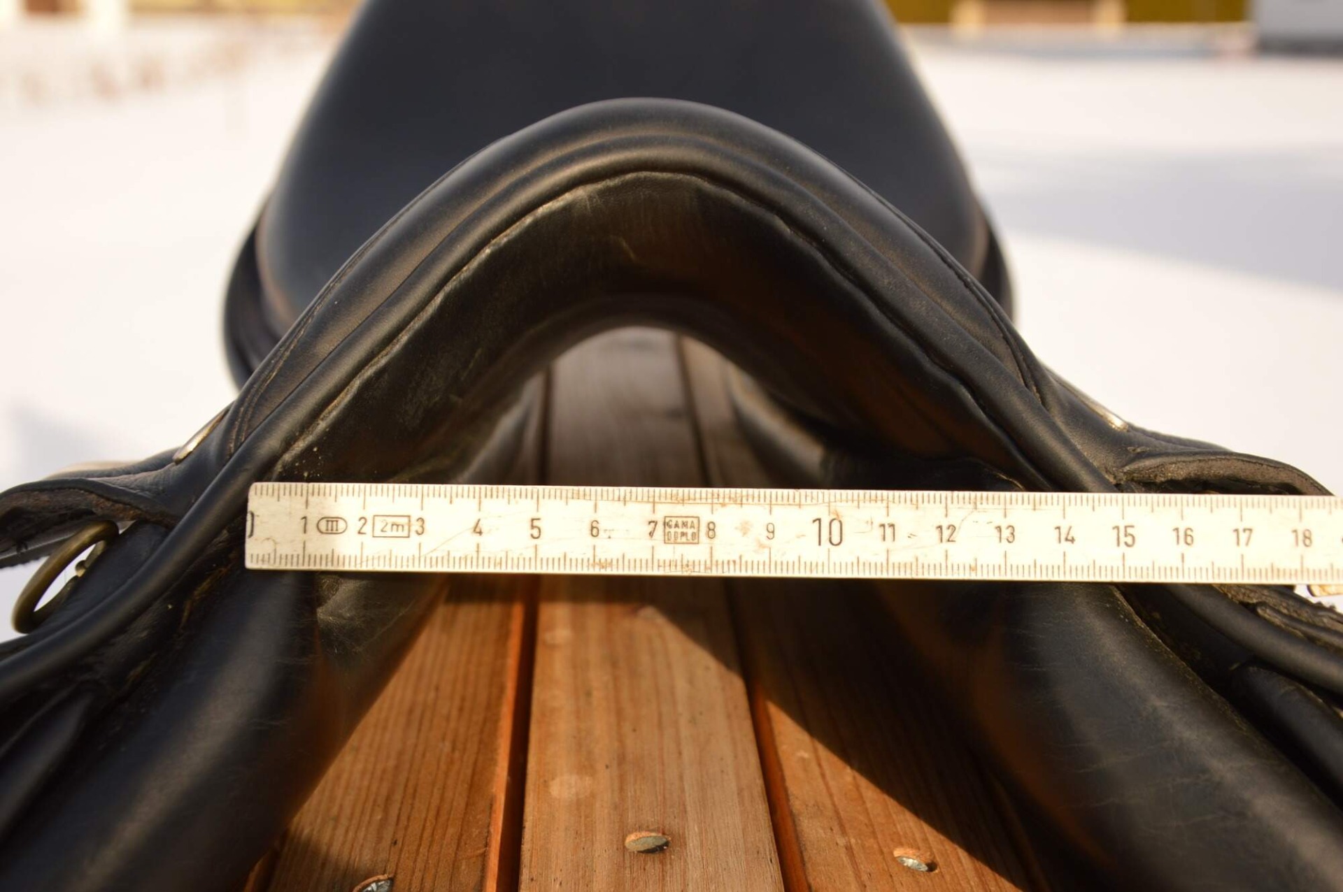 Skokové sedlo KenTaur Titan II, posedlí 17,5", komora 2 (14cm). Kvalitní sedlo splňující nejpřísnější požadavky pro vysoké skákání. Provedení z dvojité protiskluzové teletiny, vlněný polštář. Středně vysoké opěrky a předtvarovaná bočnice výborně fixují nohu jezdce. Vyráběno z měkčené protiskluzové kůže na bočnicích pro dobrou prostupnosti pro pobídky.