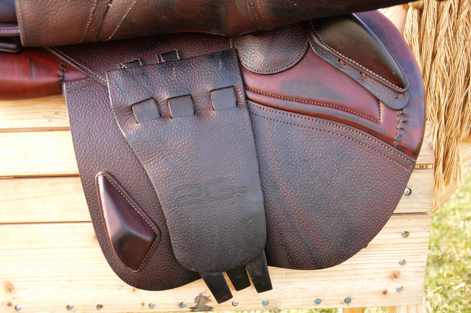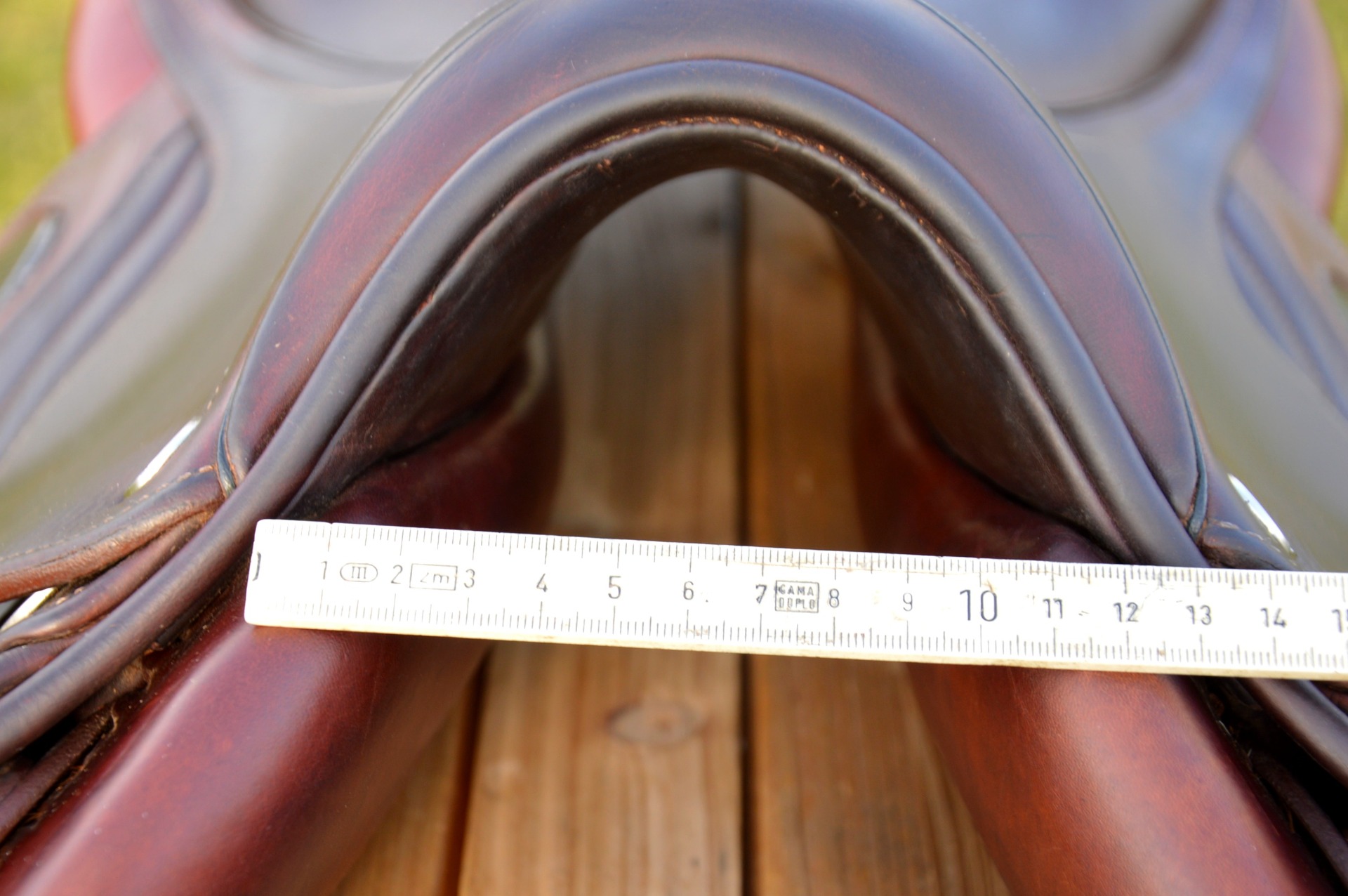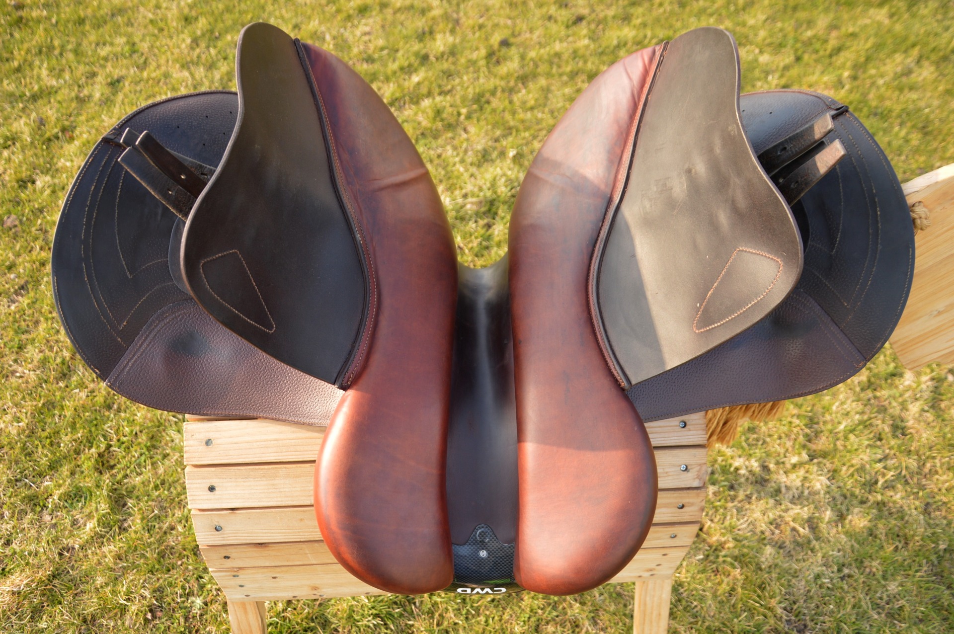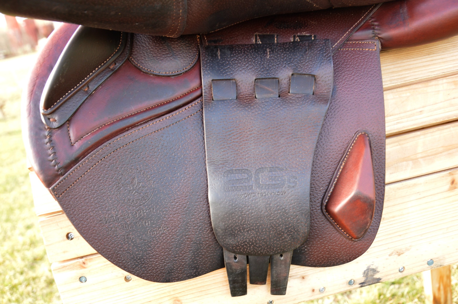 Skokové sedlo od renomované francouzské značky CWD, model 2Gs. Polohuboké posedlí (SE25), nižší polštář (PA), posedlí 17" (S1), komora odpovídá 2 (12 cm).