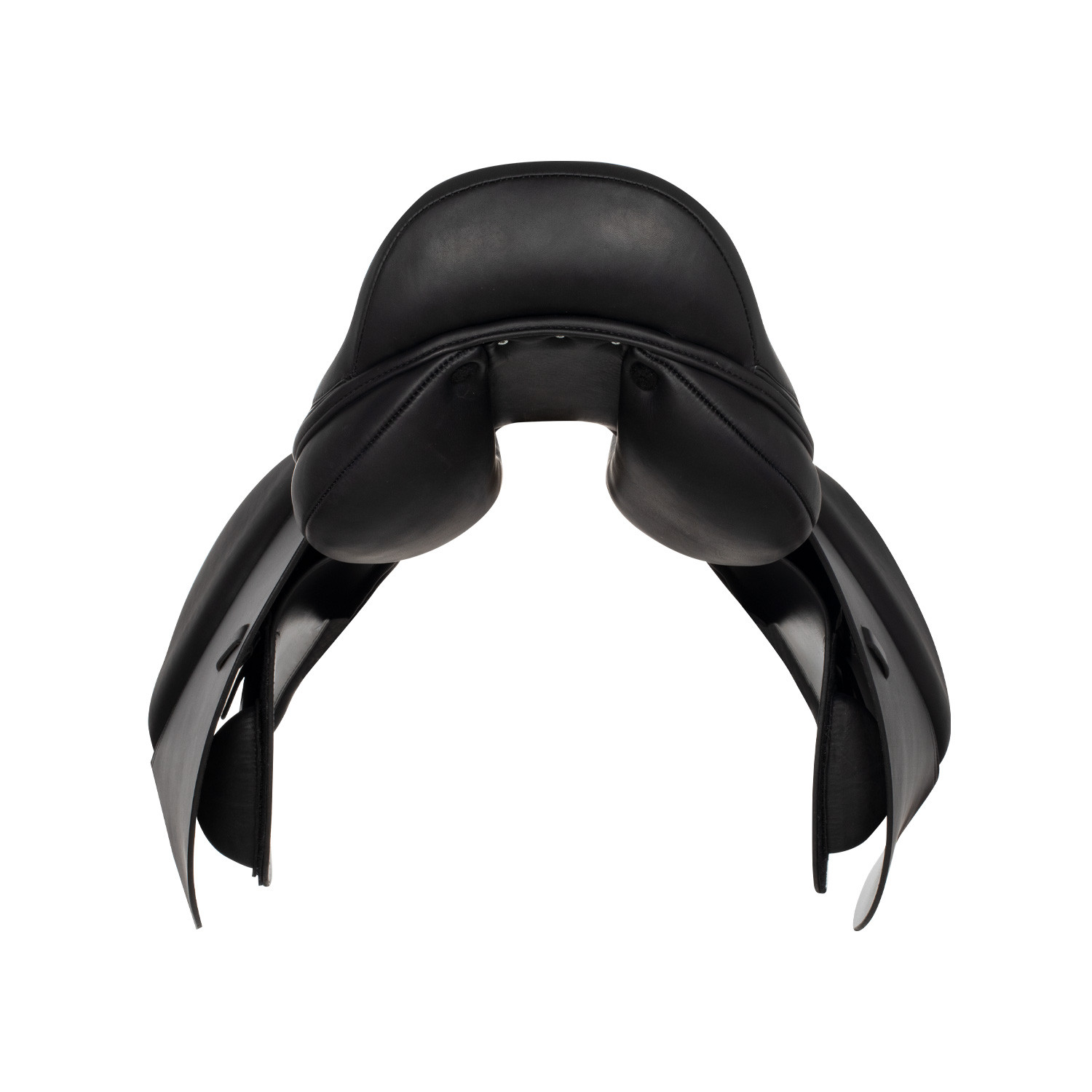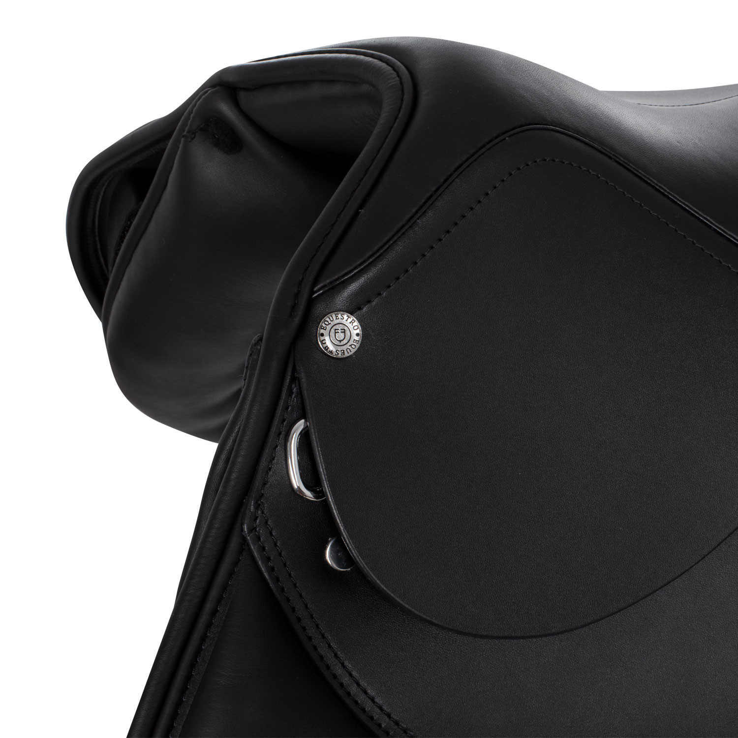 Vysoce kvalitní materiály umožňují maximální výkon a zároveň zaručují koni plnou volnost pohybu a pohodlí.Ergonomické a středně hluboké posedlí je mimořádně pohodlné, kolenní opěrky navrženy tak, aby umožňovaly podporu na rovině i ve skoku.