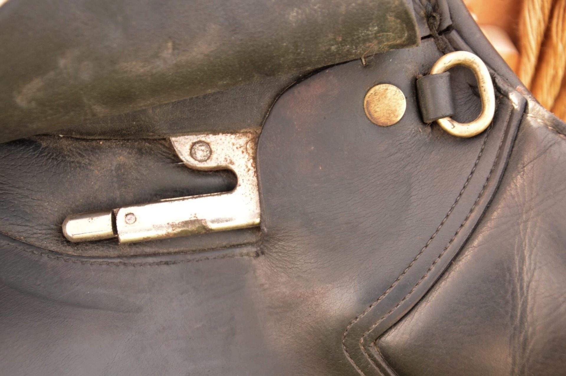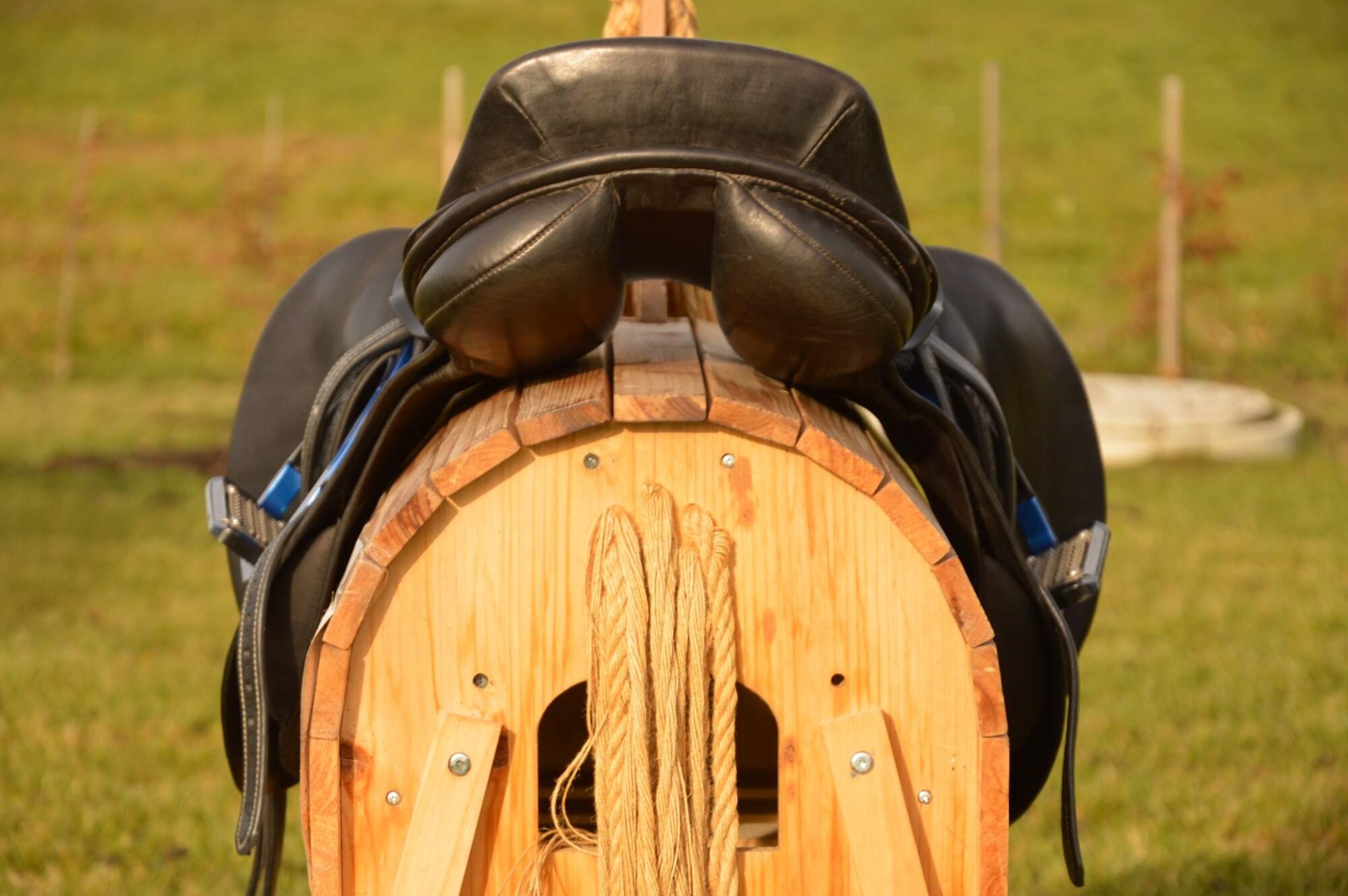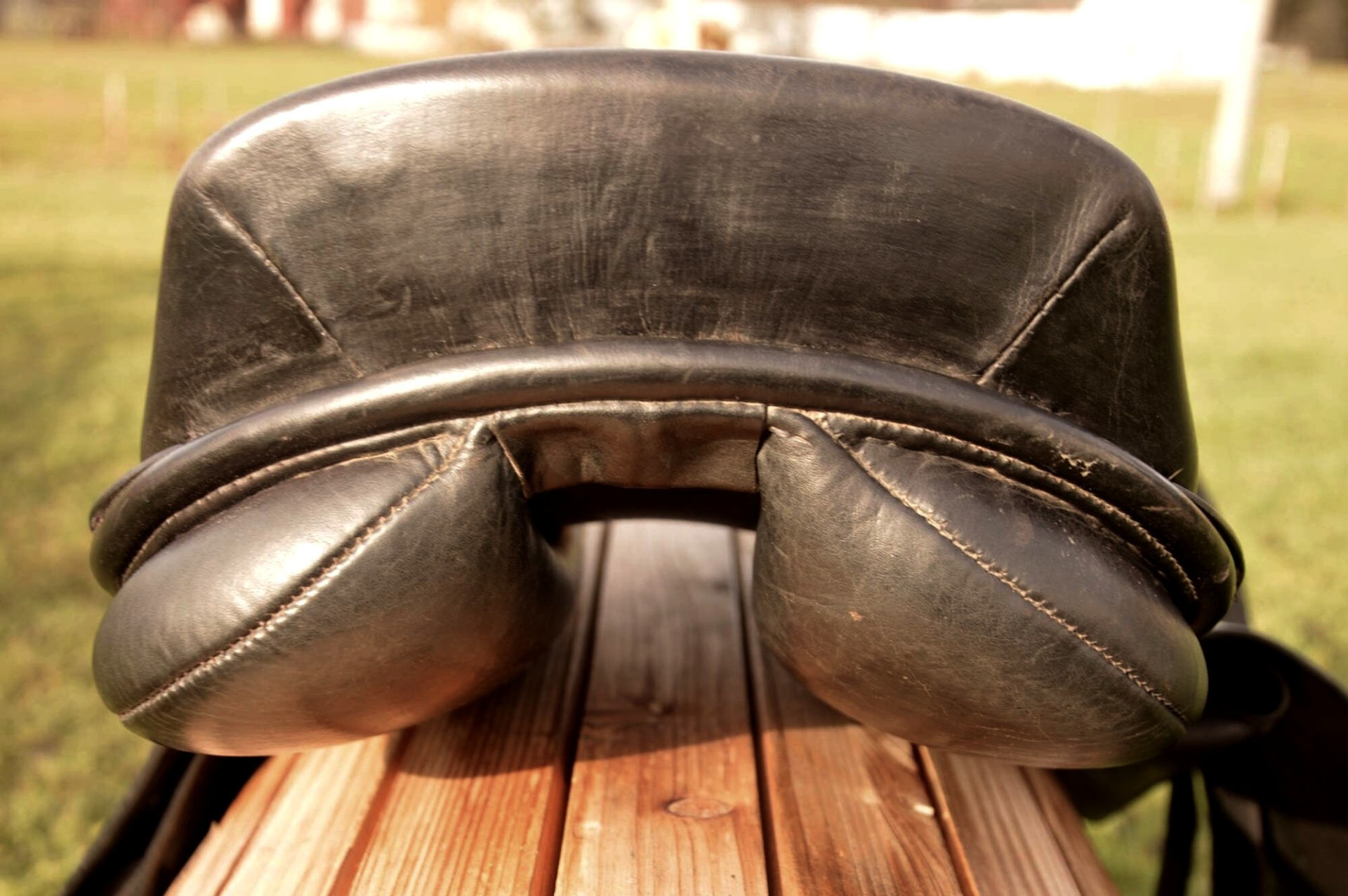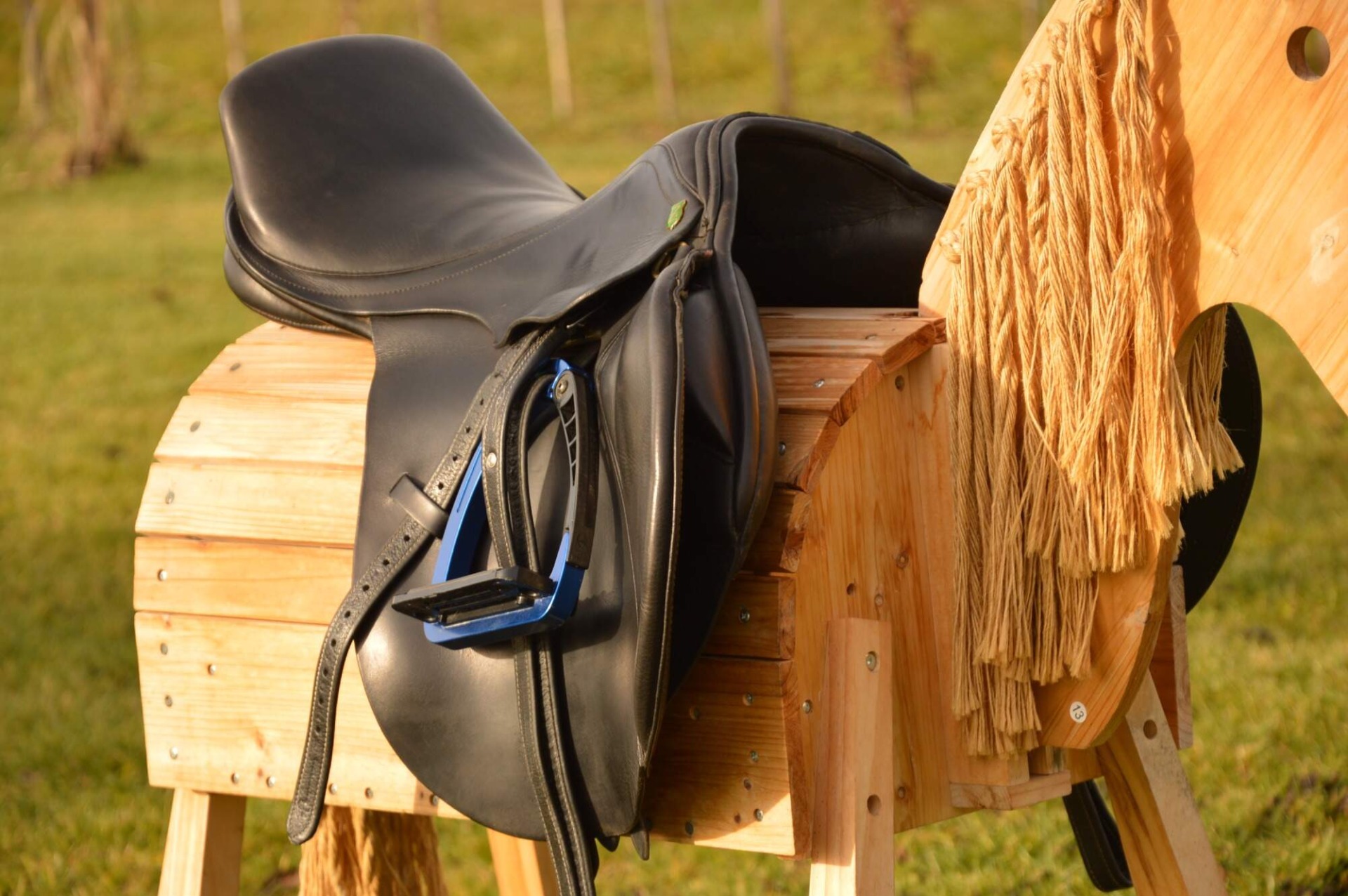 Skokově univerzální sedlo Greenfield Saddlery - Massimo. Posedlí 17,5", komora 4 (18 cm), ideální na hodně kulaté koně. Kožené kvalitní sedlo má střední kolenní opěrky, hlubší posedlí, je velmi měkké a pohodlné. Vlněné polštáře, dobře tlumí nárazy. Vhodné na vyjížďky, jízdárenskou práci i skoky. Sedlo je ve velmi dobrém stavu, plně funkční.