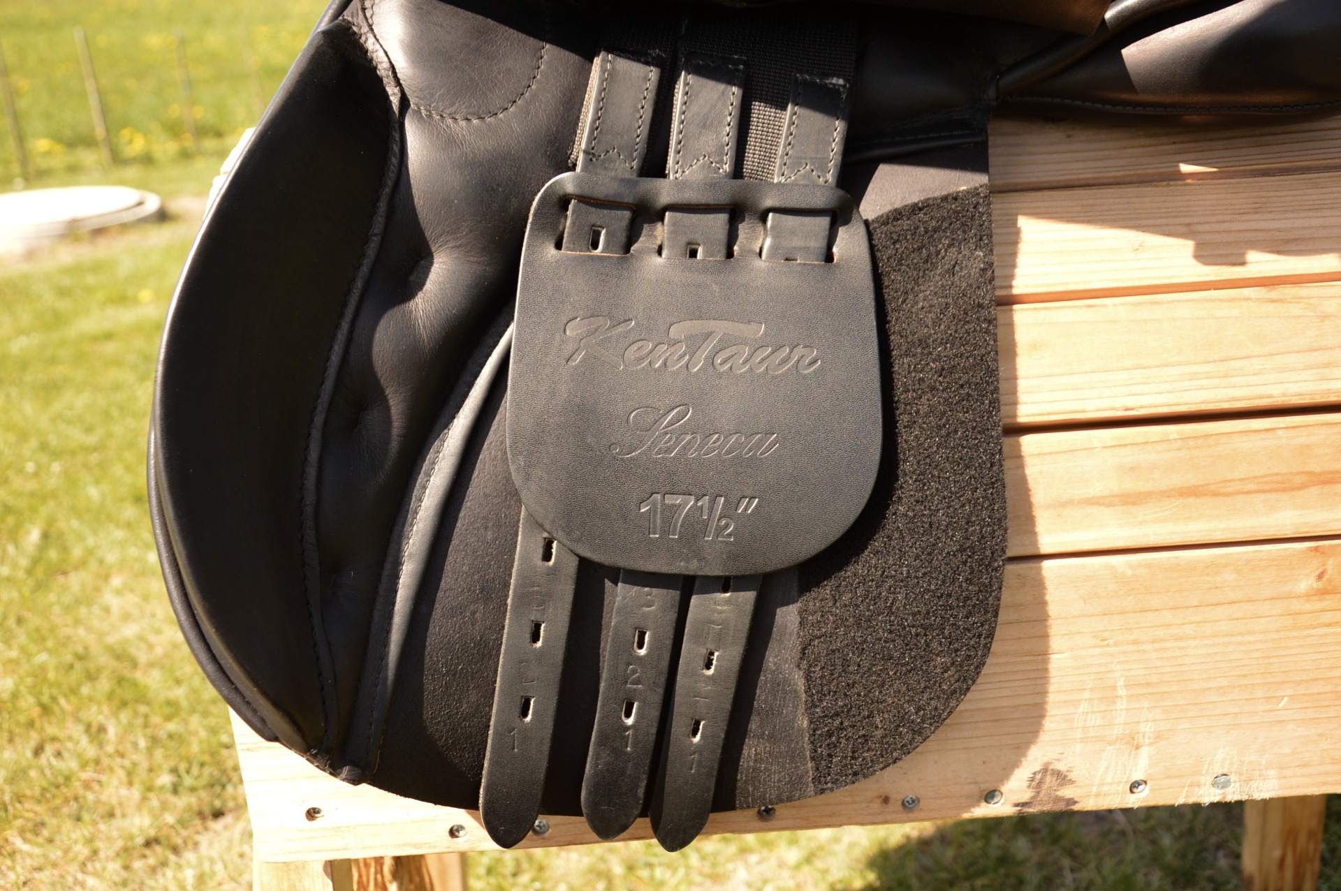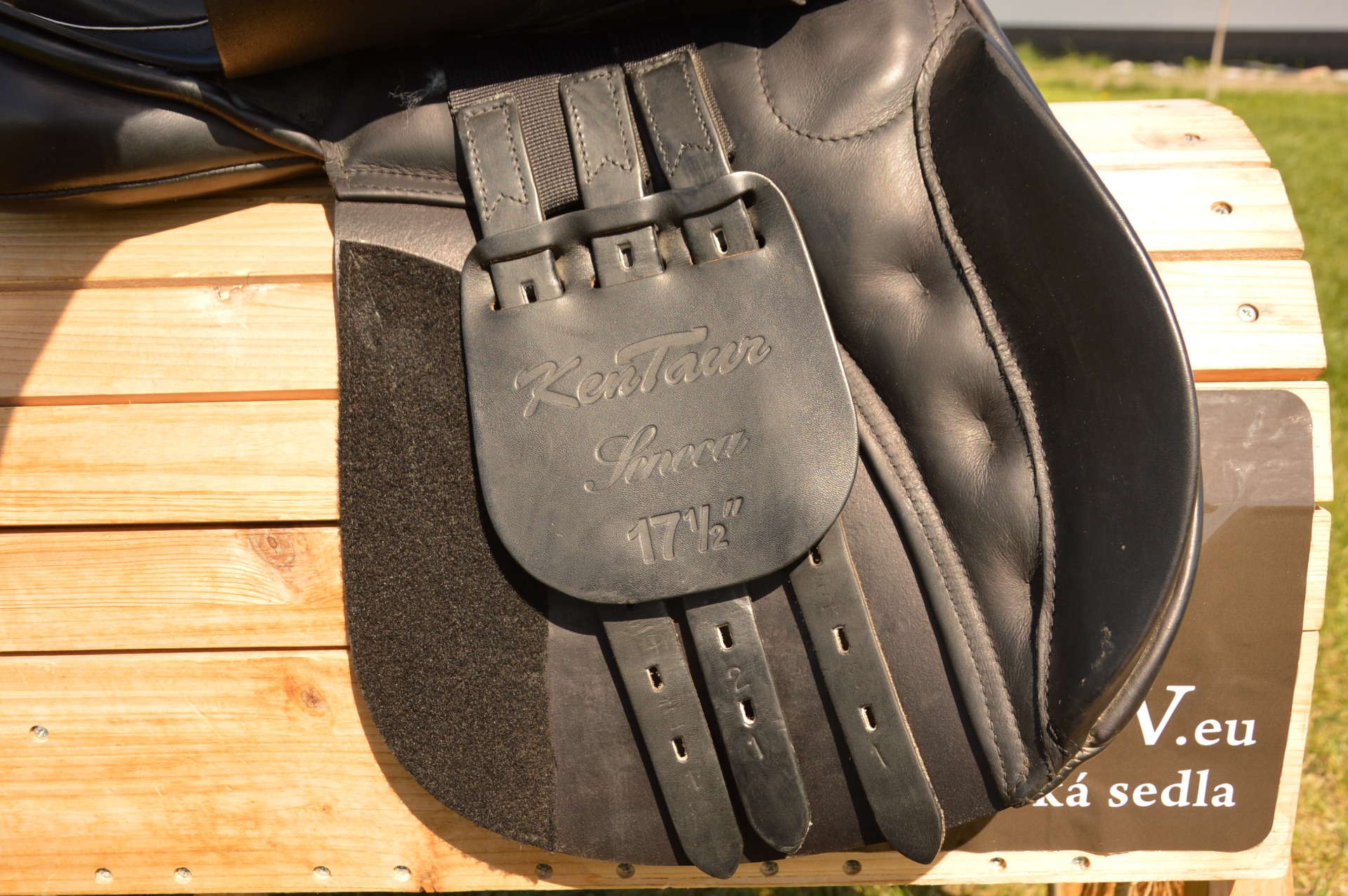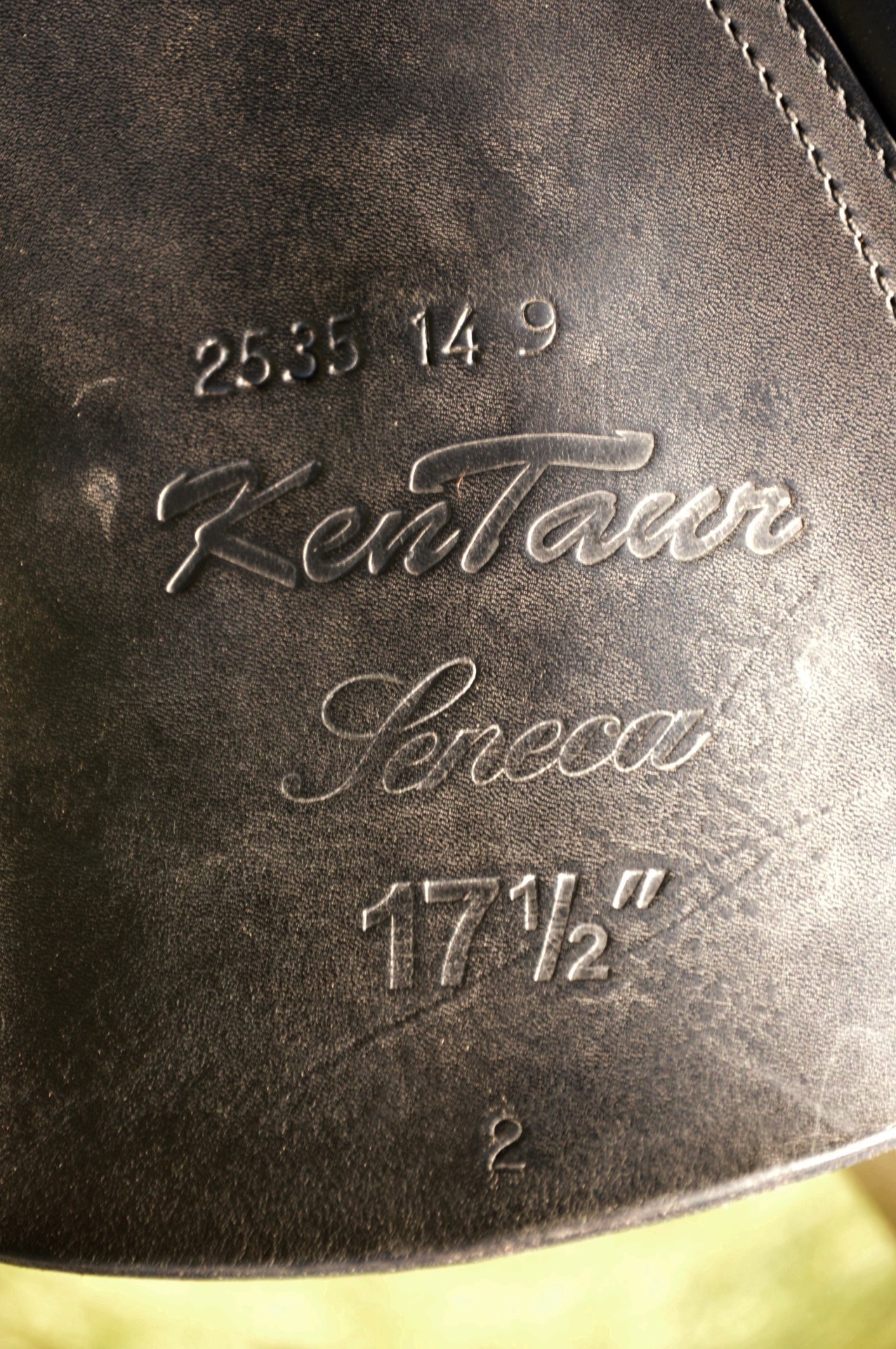 Oblíbené anglické sedlo KenTaur Seneca s bílou paspulkou. Posedlí 17,5" a komora 2-3 (15 cm), otevřená pro kohoutek, polštáře vlněné. Jedná se o univerzální kontaktní sedlo s hlubokým posedlím a vyššími kolenními opěrkami. Hlubší provedení kostry umožňuje dobré vedení sedem při práci s mladými koňmi, výborně podporuje jezdce a drží sed. Sedlo je vhodné na menší skoky i do přírody. Výborný stav, běžné známky použití.