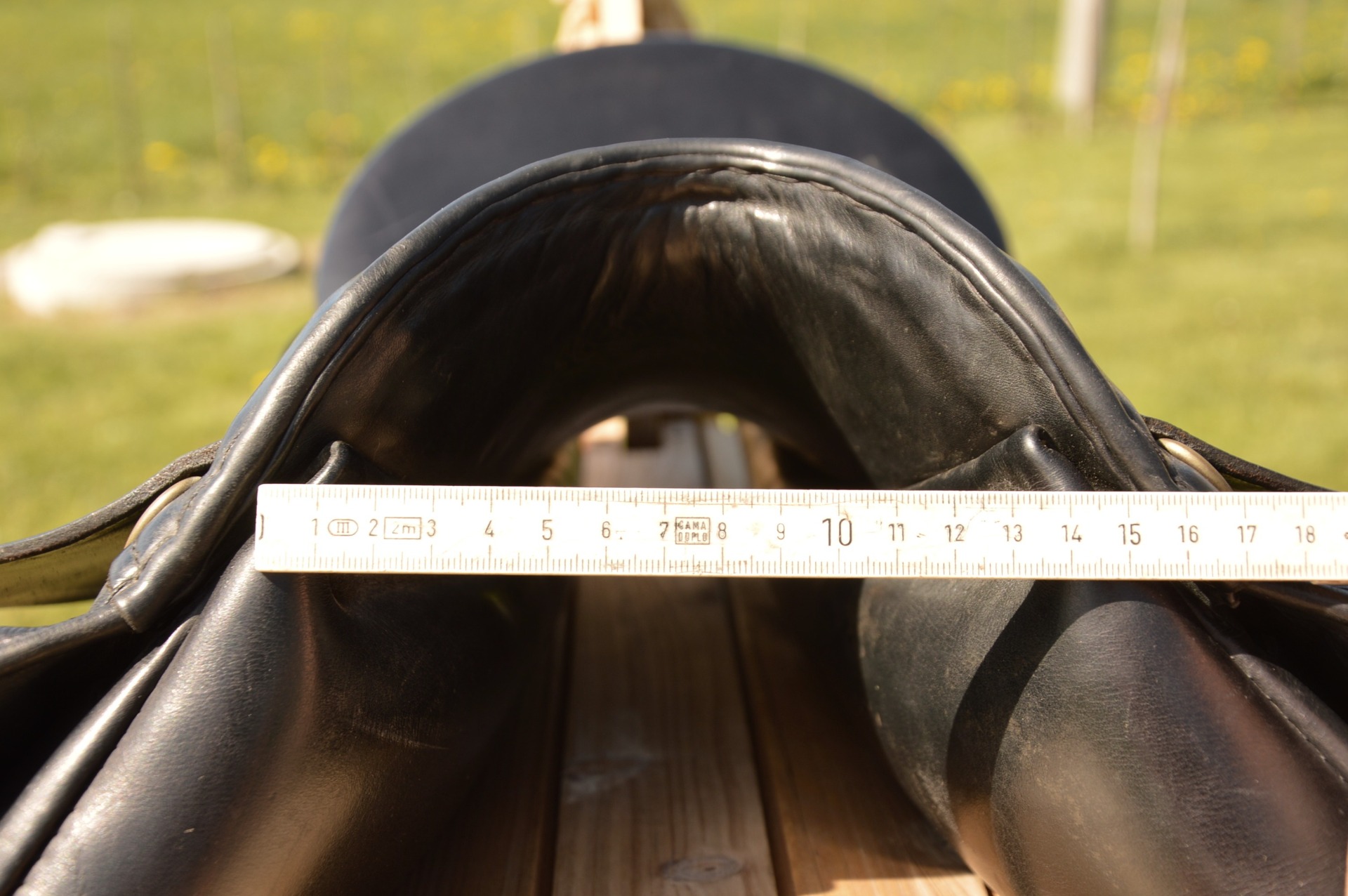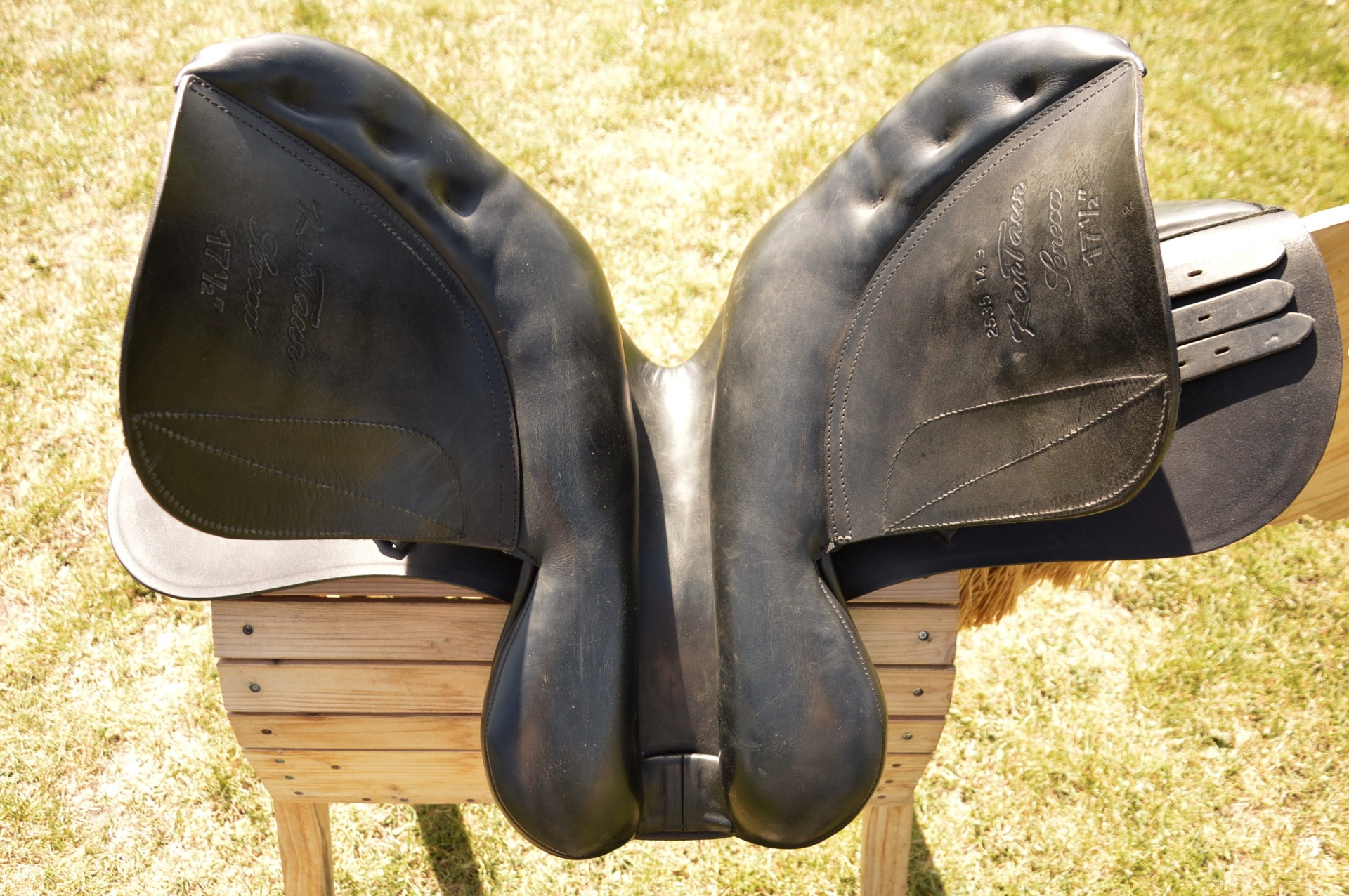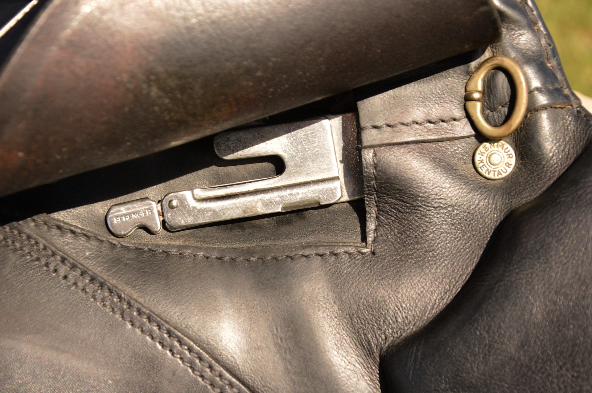 Oblíbené anglické sedlo KenTaur Seneca s bílou paspulkou. Posedlí 17,5" a komora 2-3 (15 cm), otevřená pro kohoutek, polštáře vlněné. Jedná se o univerzální kontaktní sedlo s hlubokým posedlím a vyššími kolenními opěrkami. Hlubší provedení kostry umožňuje dobré vedení sedem při práci s mladými koňmi, výborně podporuje jezdce a drží sed. Sedlo je vhodné na menší skoky i do přírody. Výborný stav, běžné známky použití.